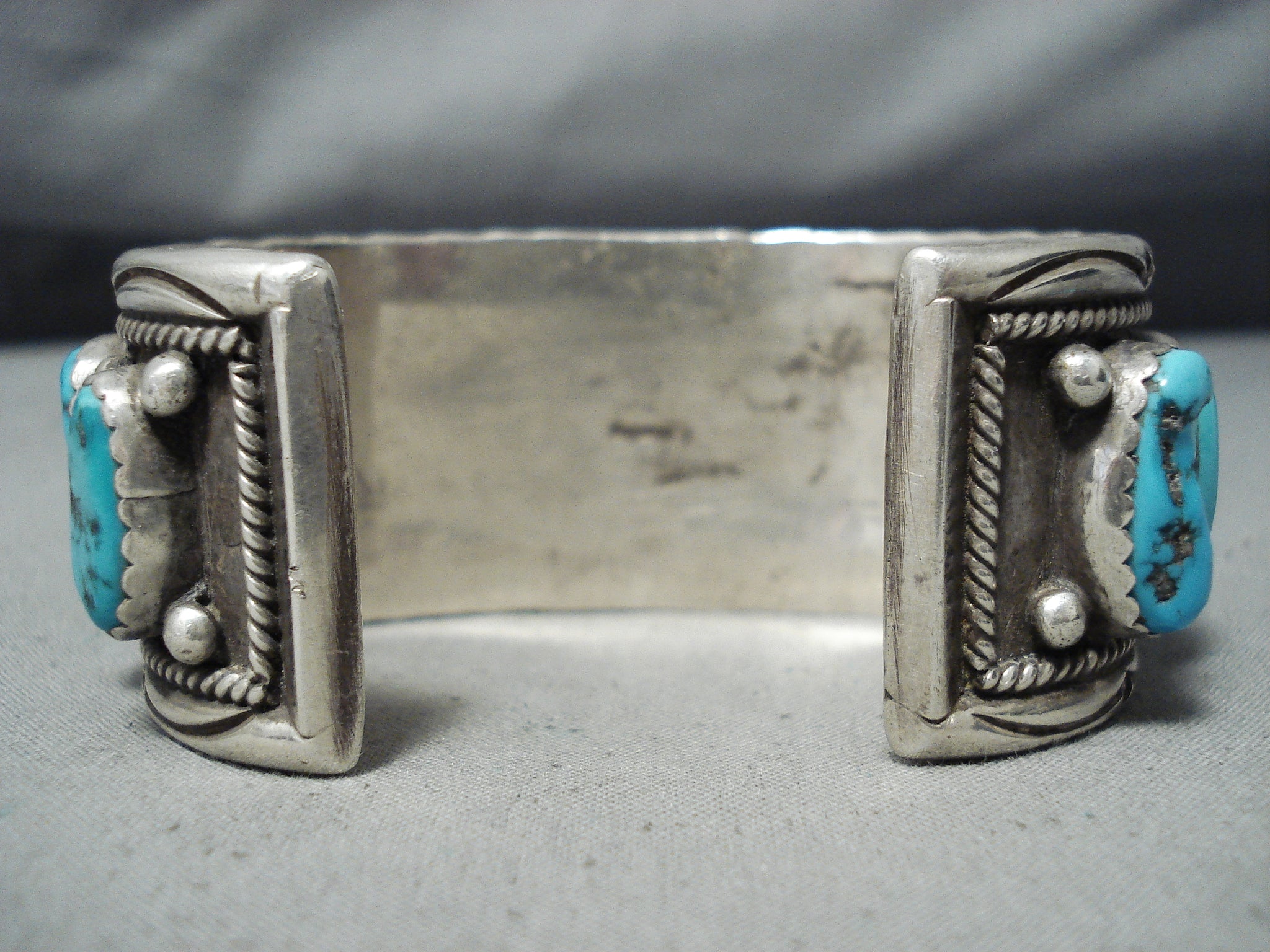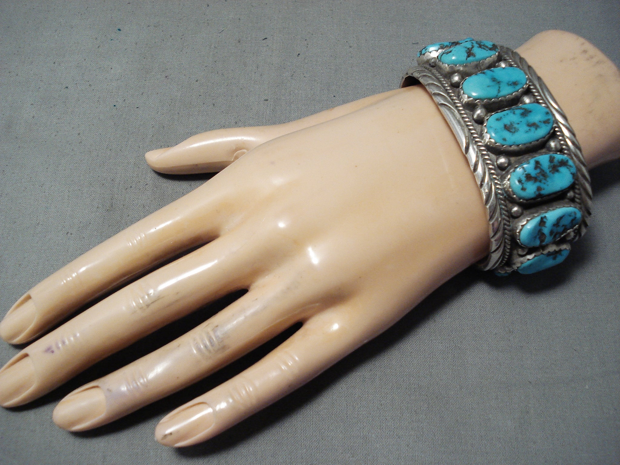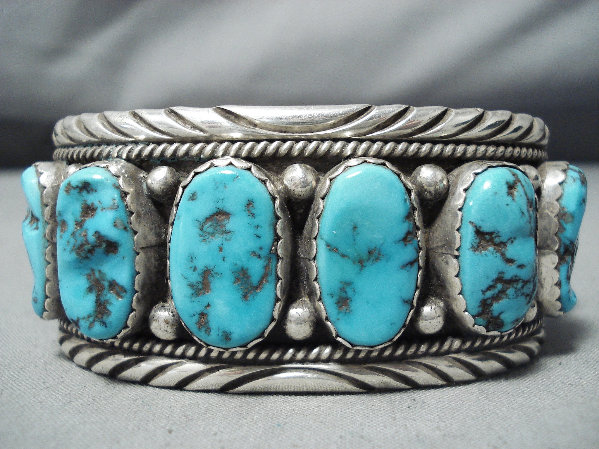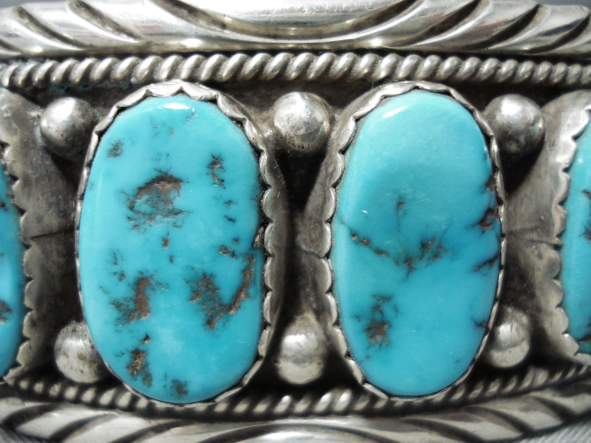 Amazing Vintage Native American Navajo Kingman Turquoise Sterling Silver Bracelet Old