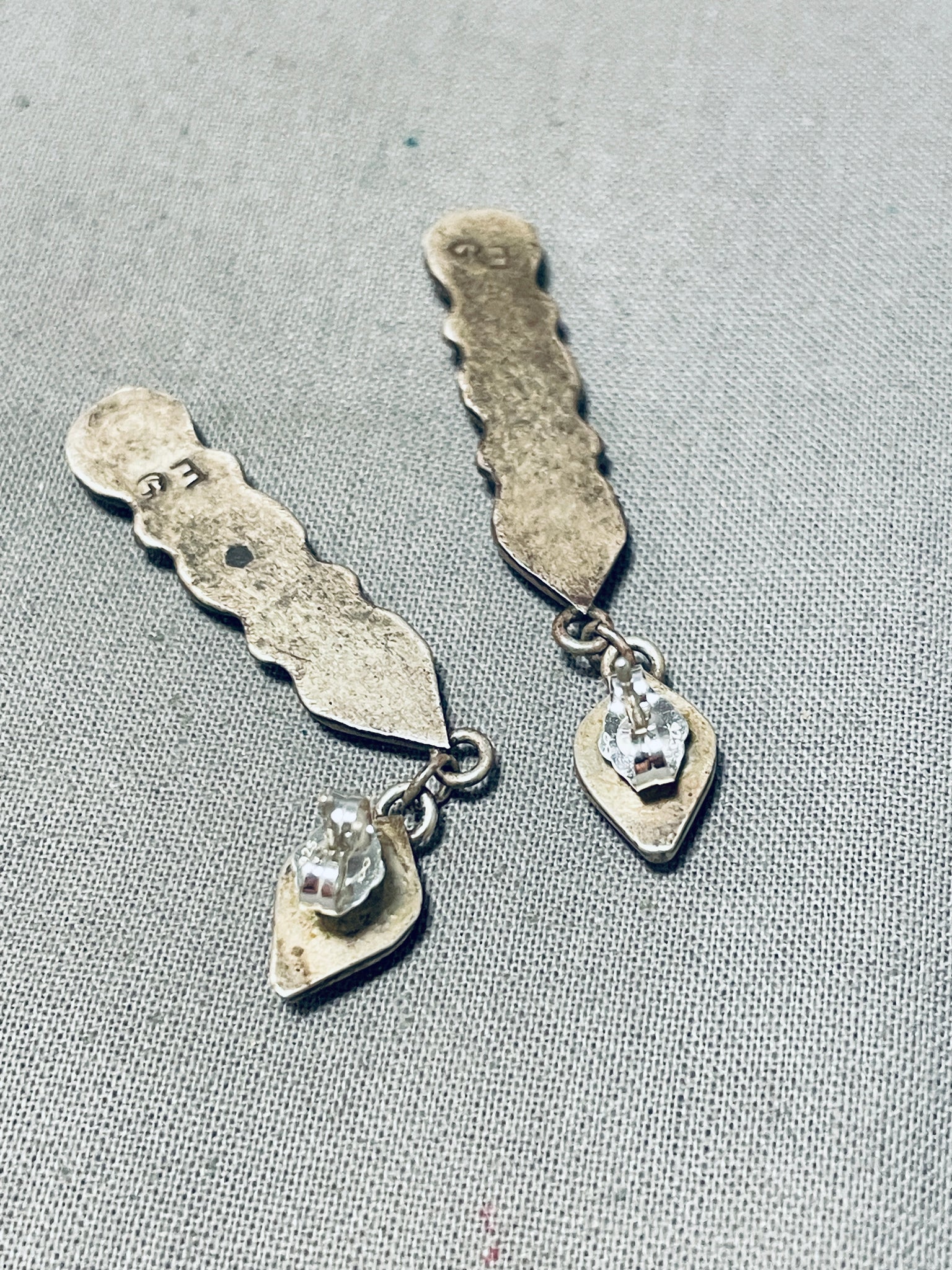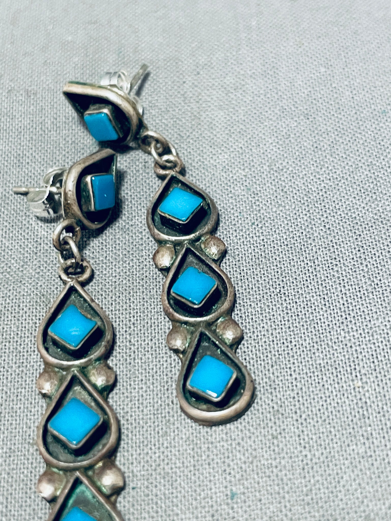 Amazing Vintage Native American Navajo Kingman Turquoise Sterling Silver Signed Earrings