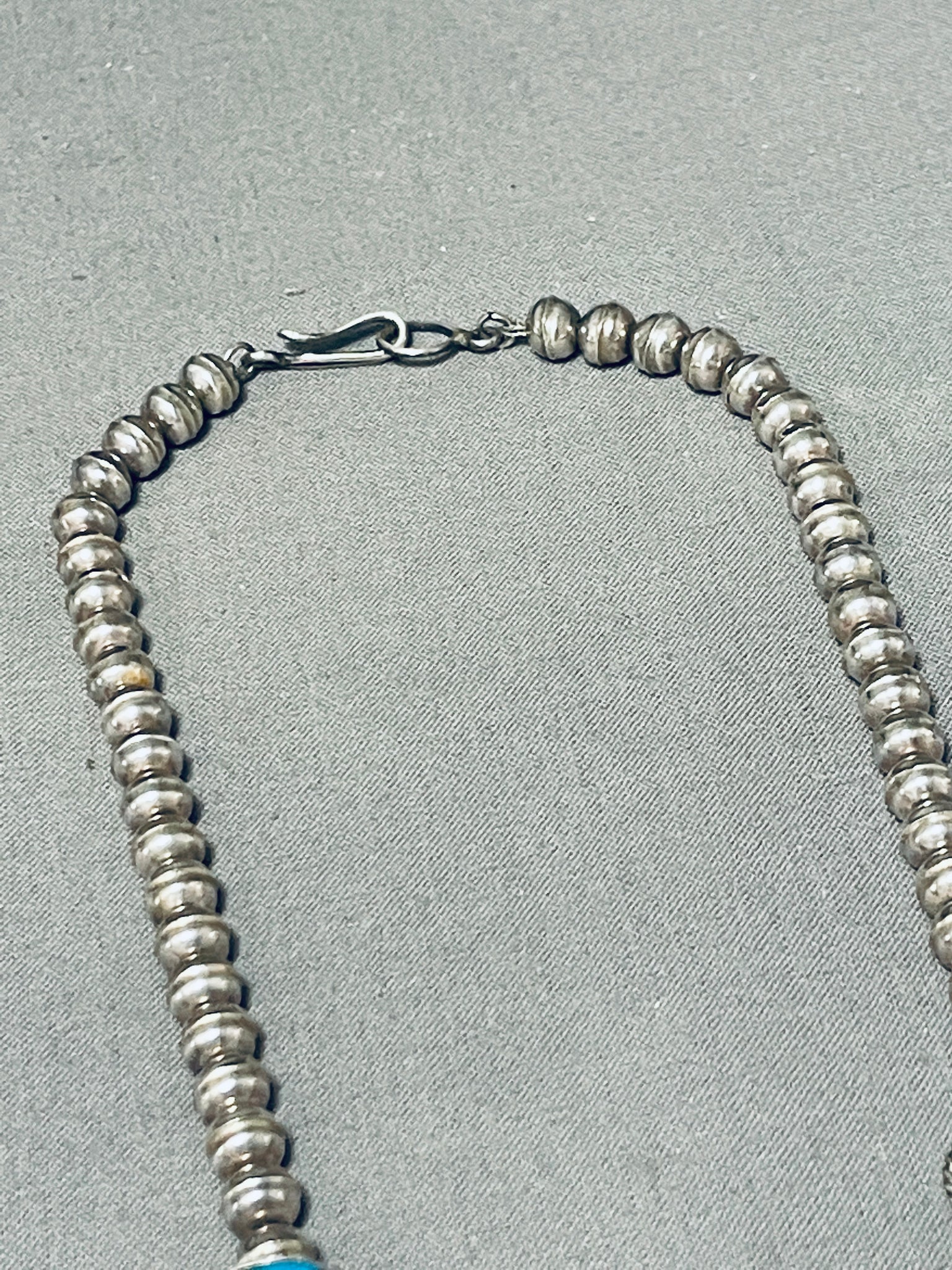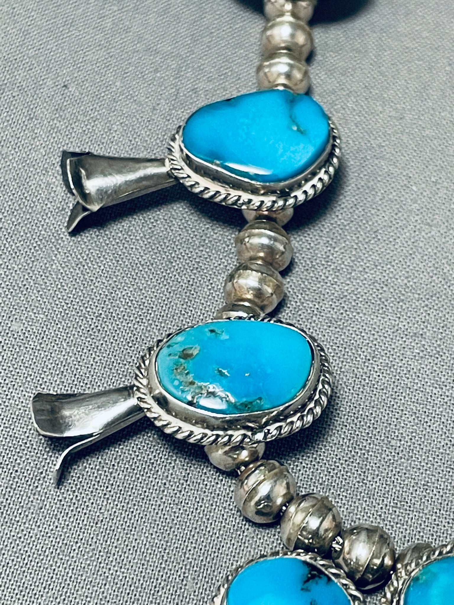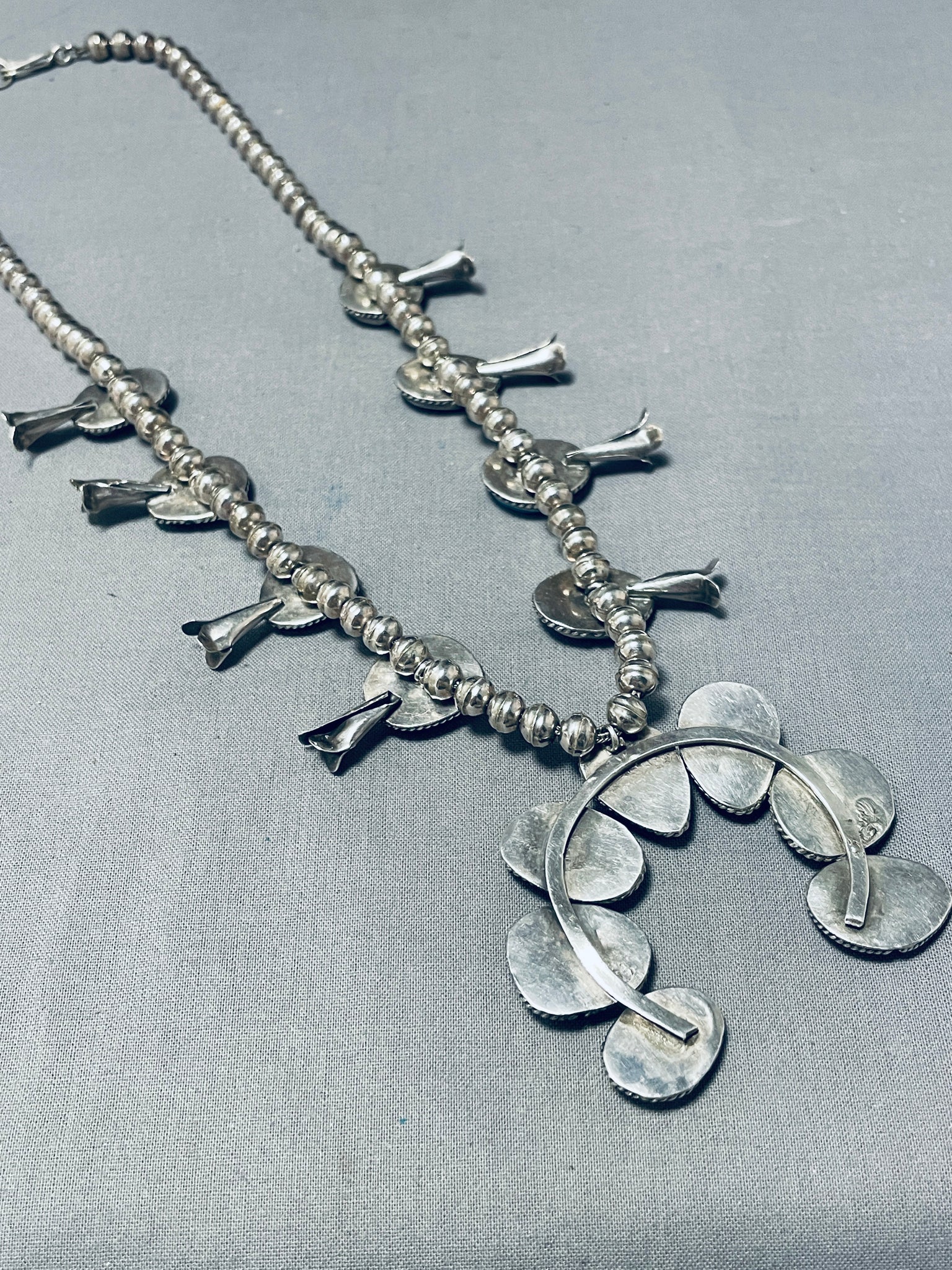 Amazing Vintage Native American Navajo Kingman Turquoise Sterling Silver Squash Blossom Necklace