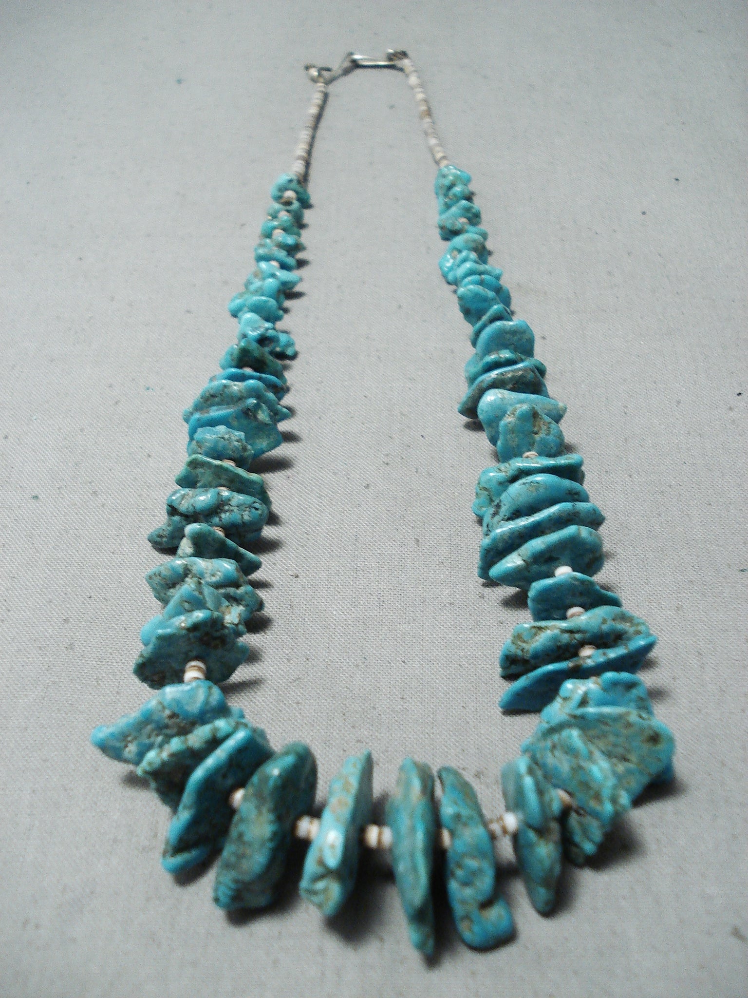 Amazing Vintage Native American Navajo Large Green Turquoise Sterling Silver Necklace