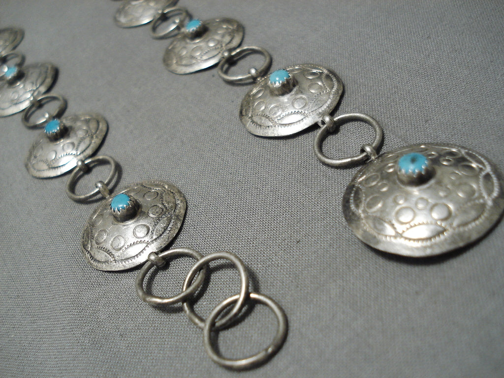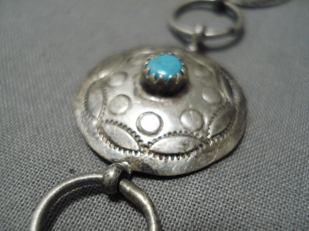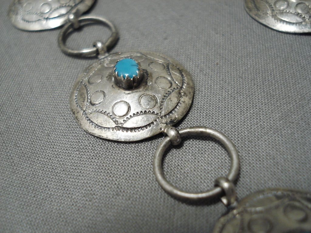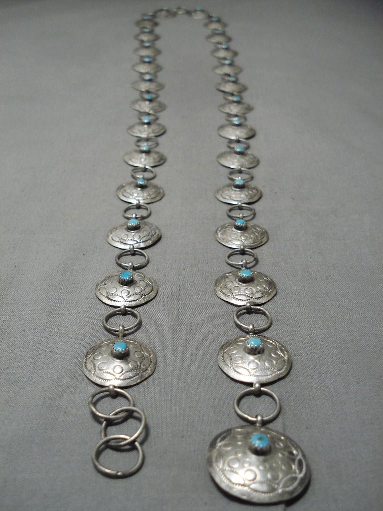 Amazing Vintage Native American Navajo Nel Joe Sterling Silver Turquoise Concho Belt Old