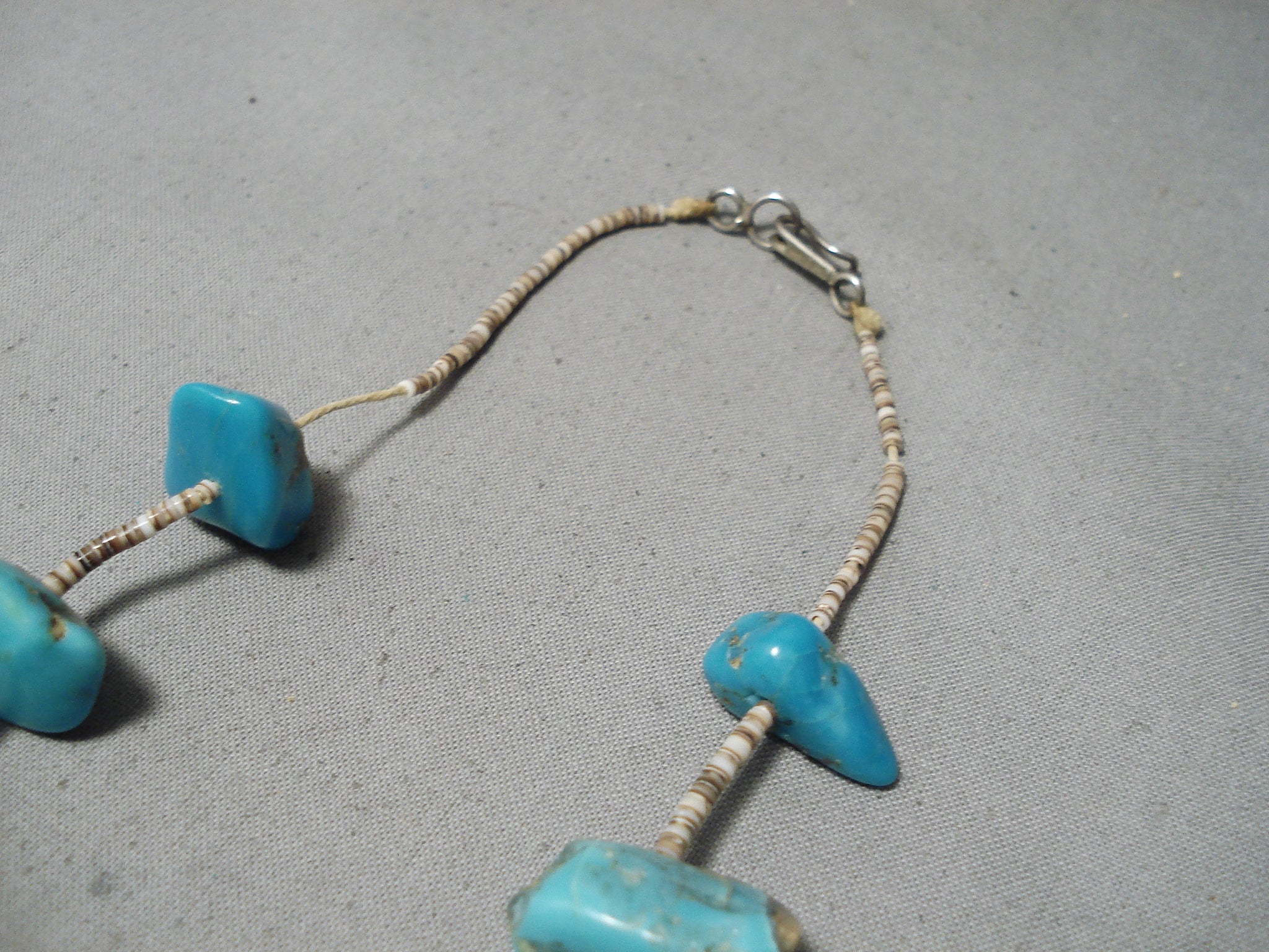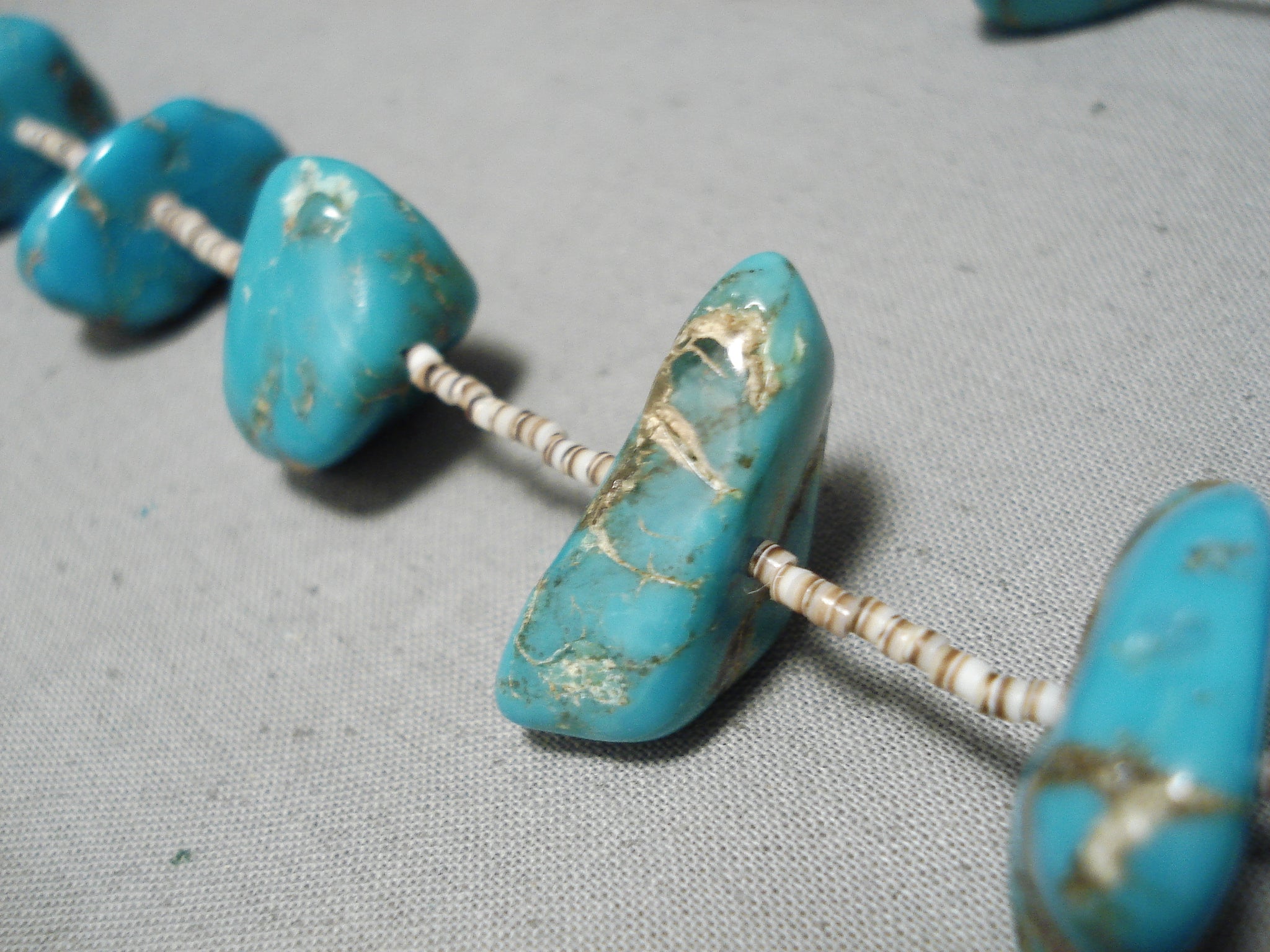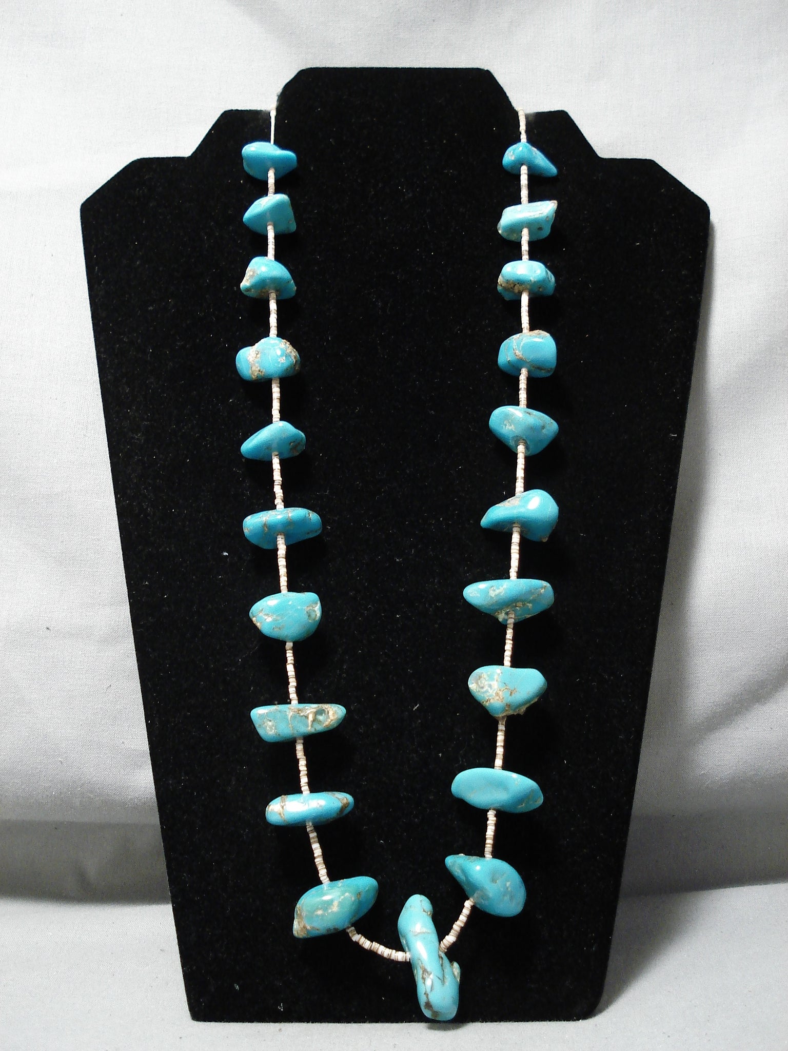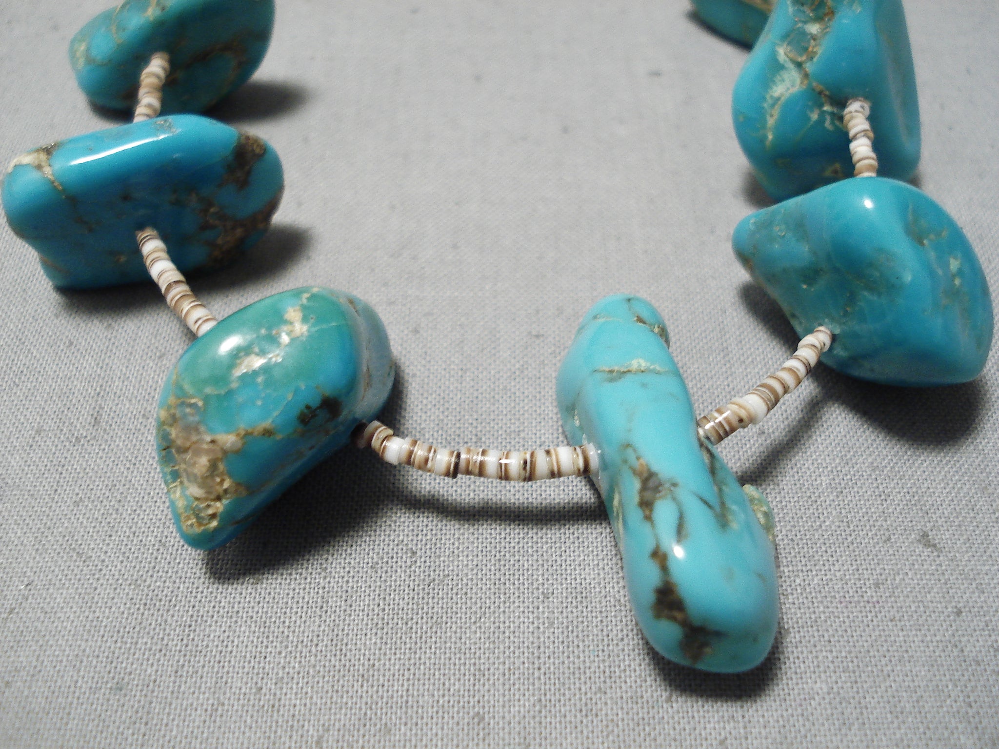 Amazing Vintage Native American Navajo Nugget Turquoise Sterling Silver Necklace Old
