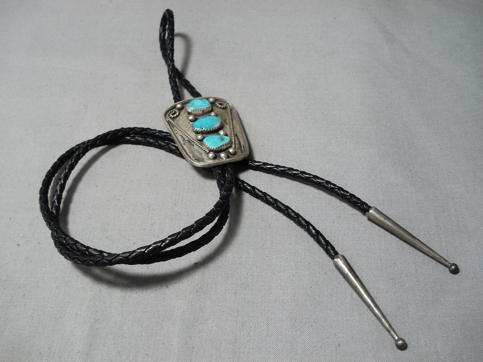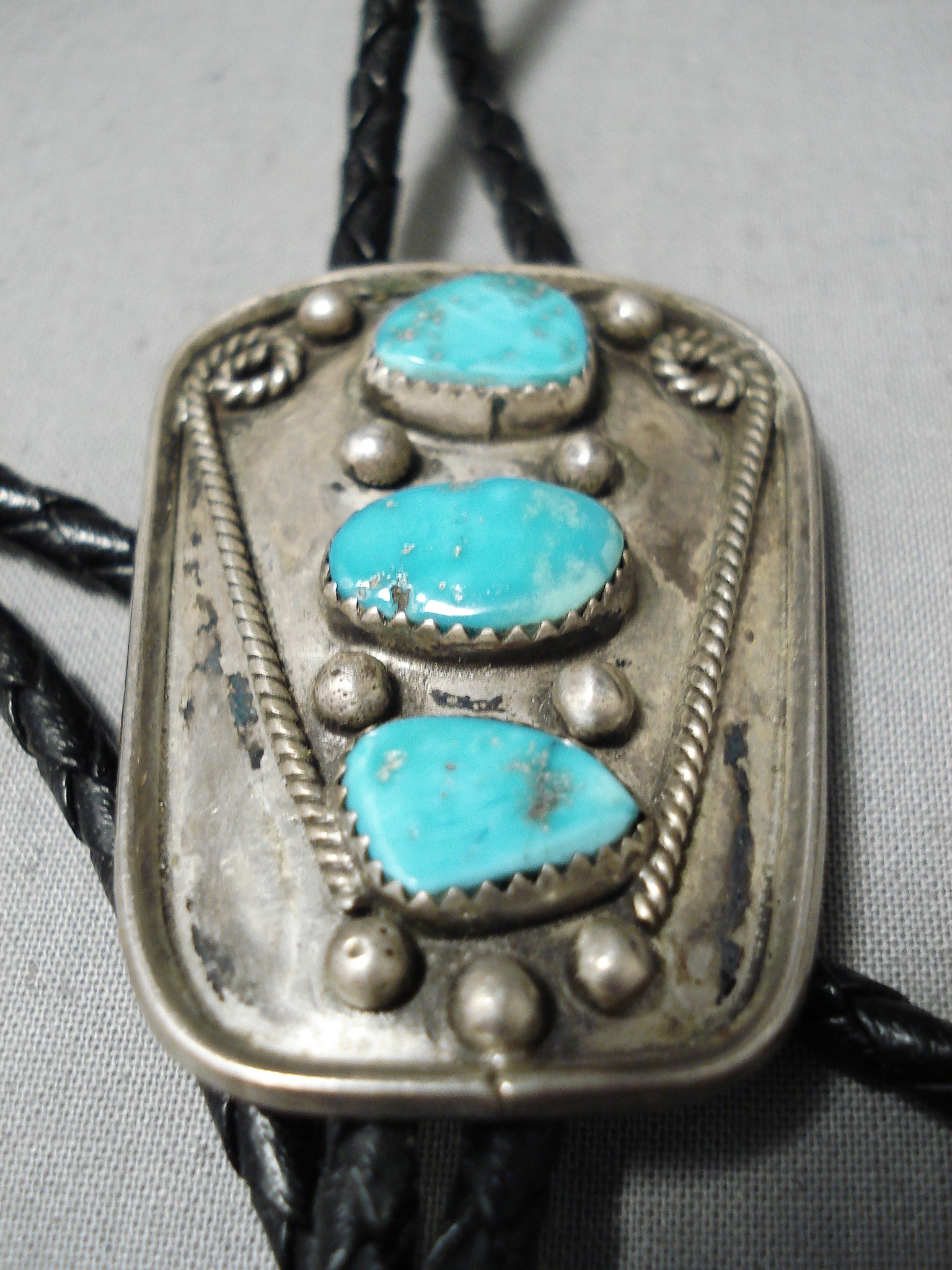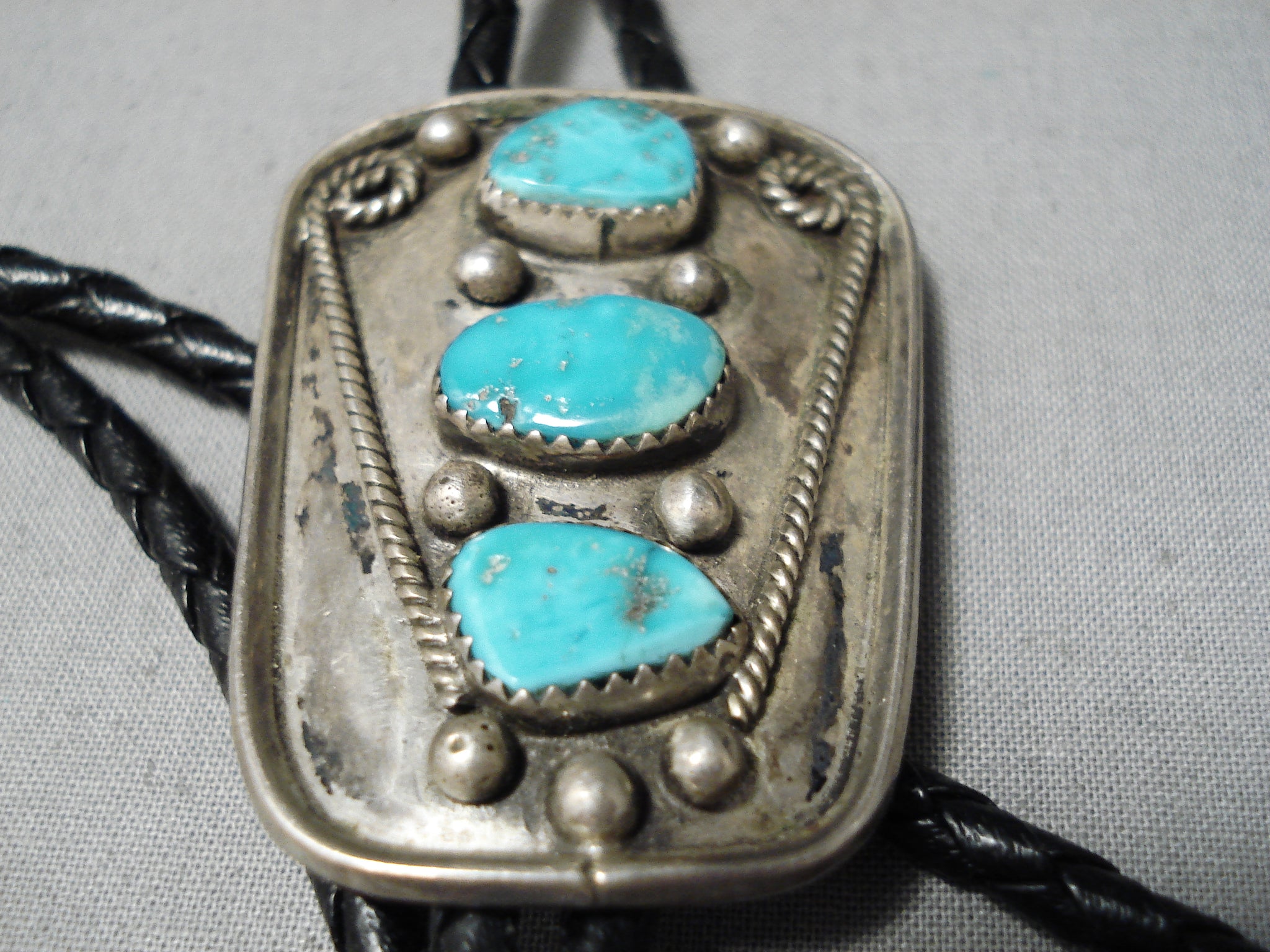 Amazing Vintage Native American Navajo Old Kingman Turquoise Sterling Silver Bolo Old