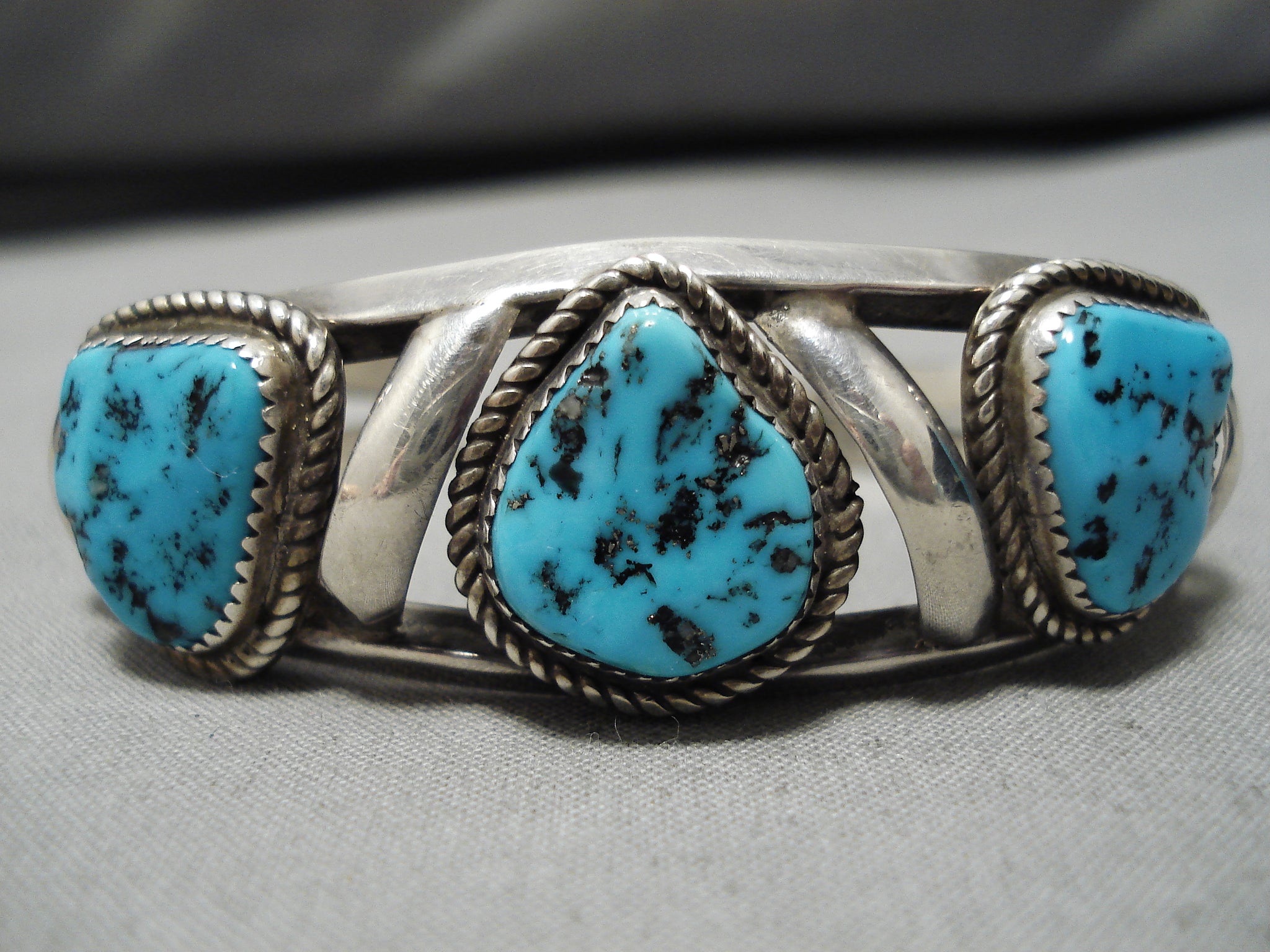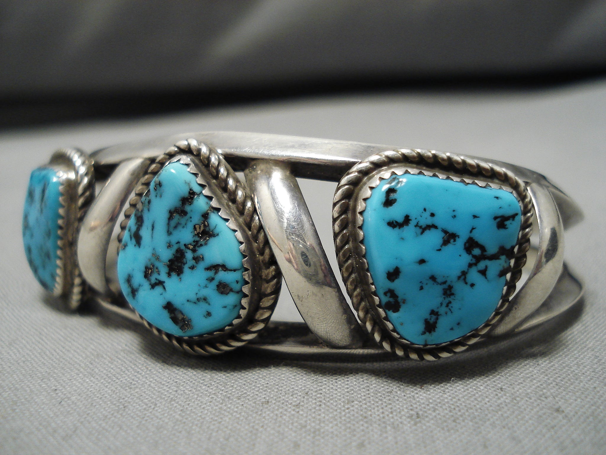 Amazing Vintage Native American Navajo Old Kingman Turquoise Sterling Silver Bracelet