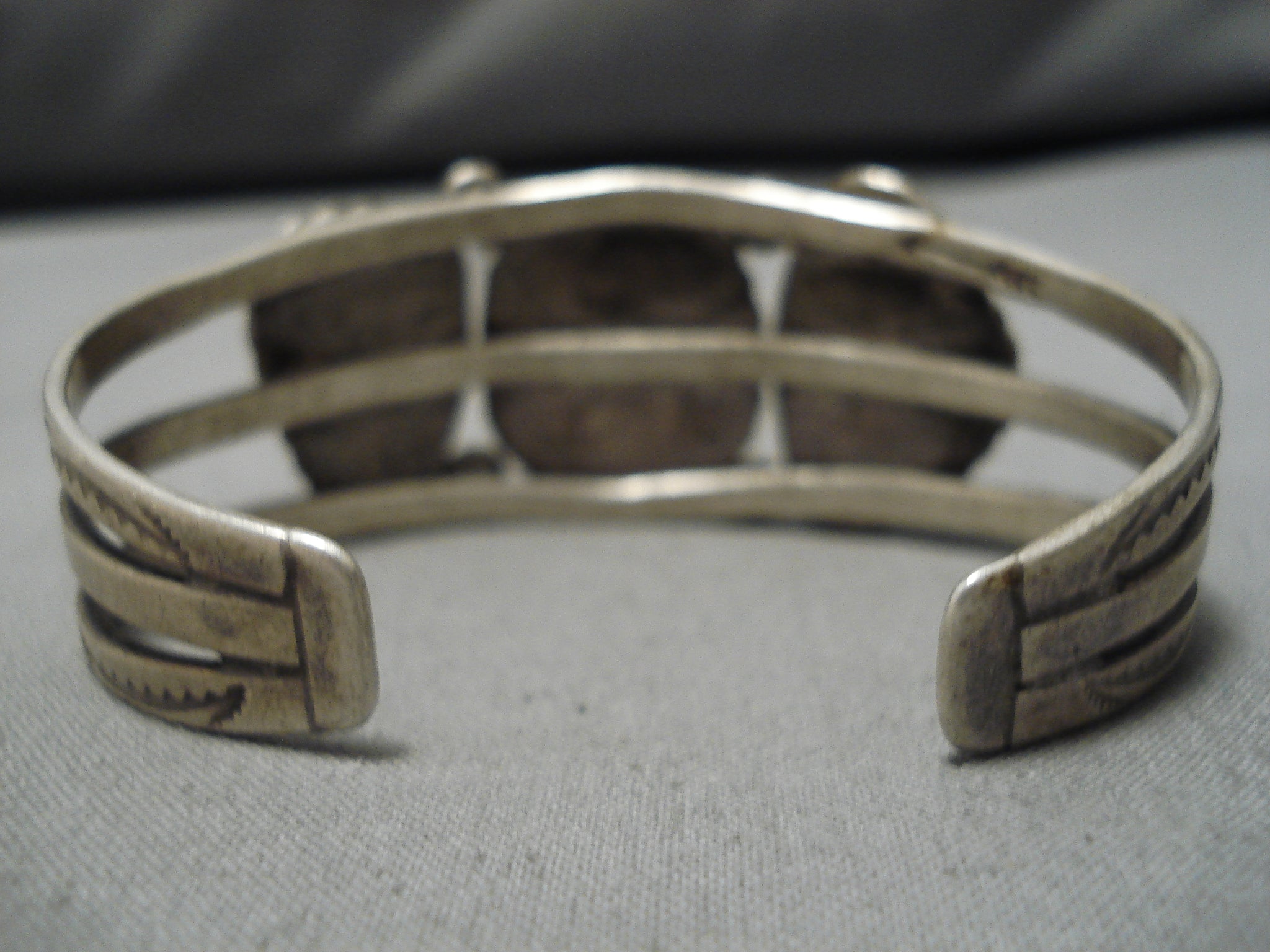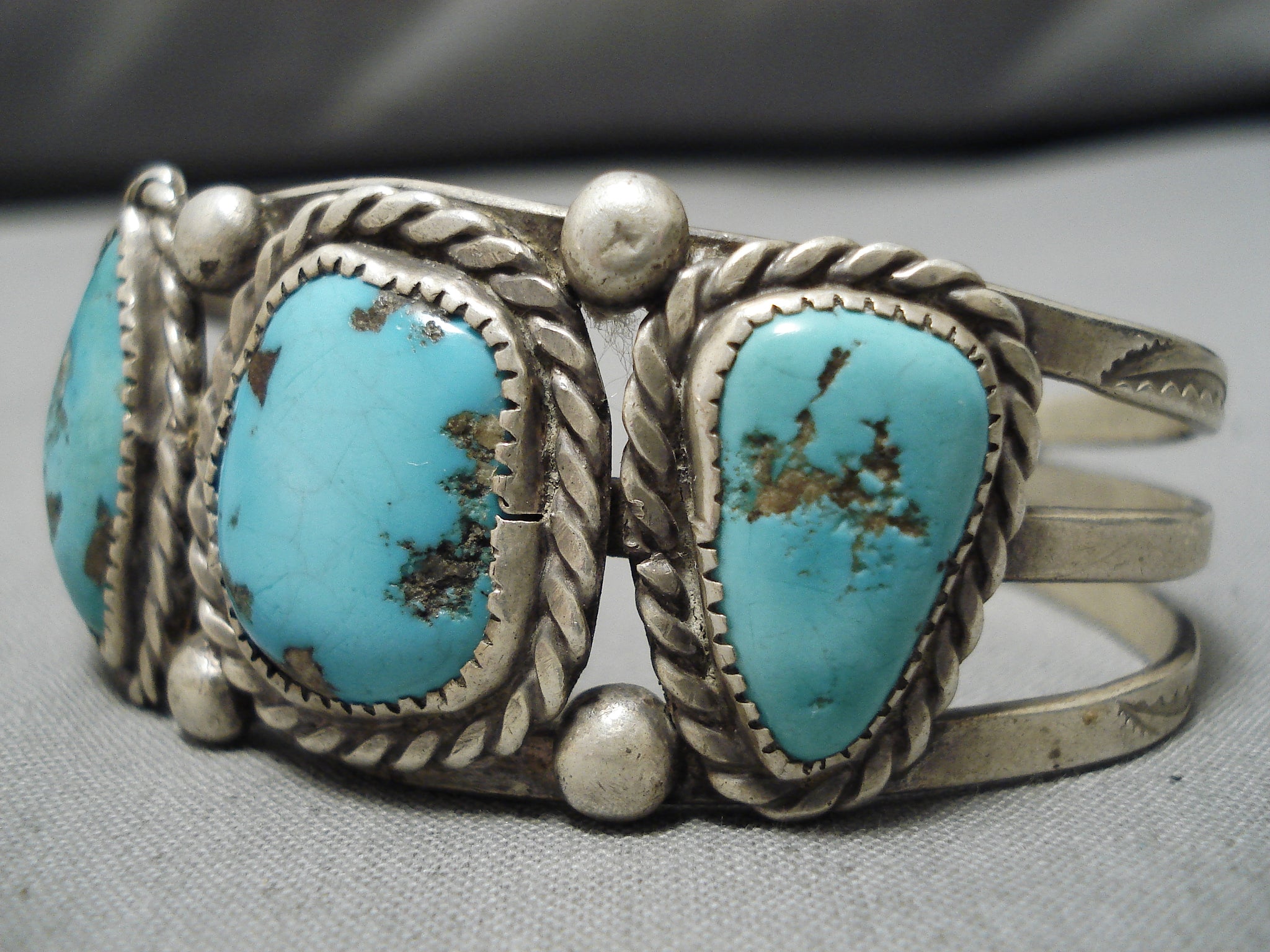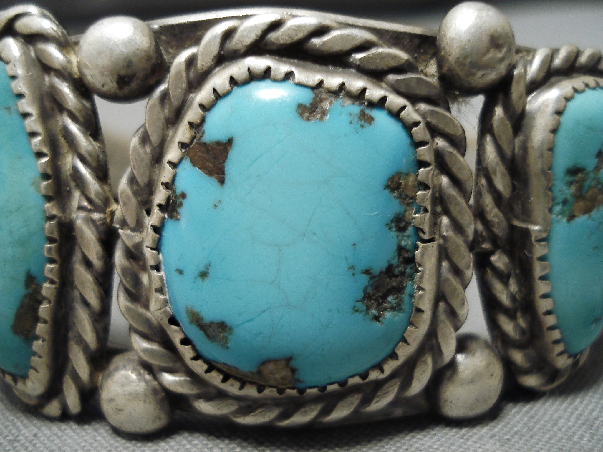 Amazing Vintage Native American Navajo Old Turquoise Sterling Silver Bracelet Cuff Old