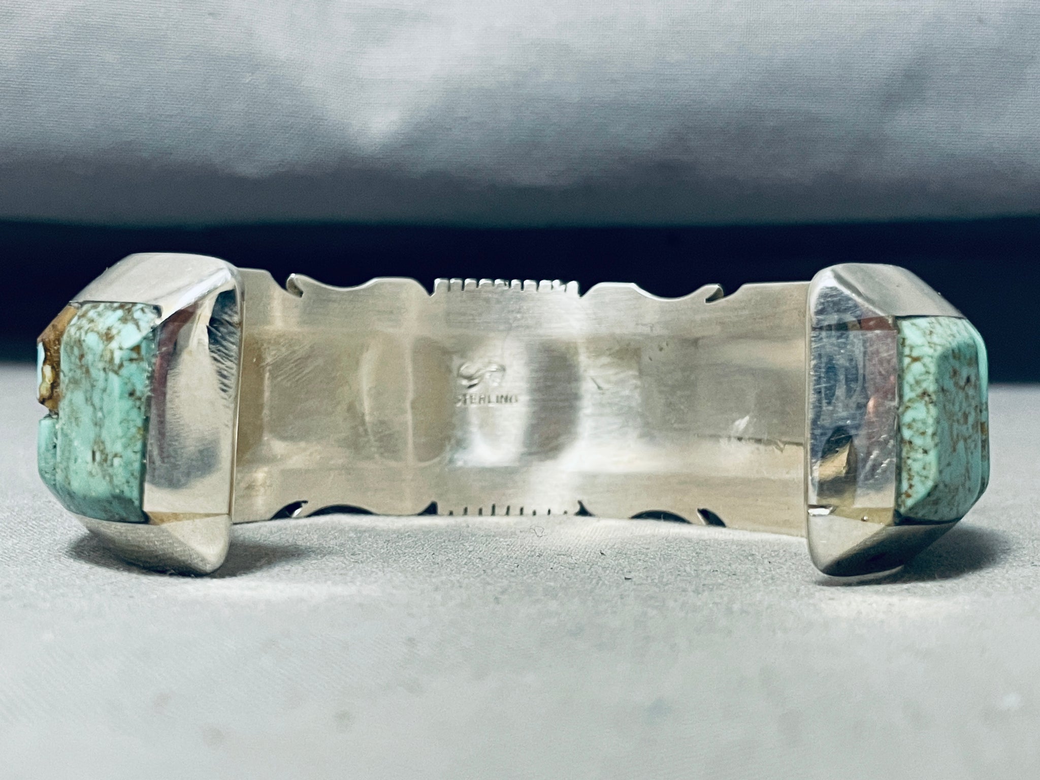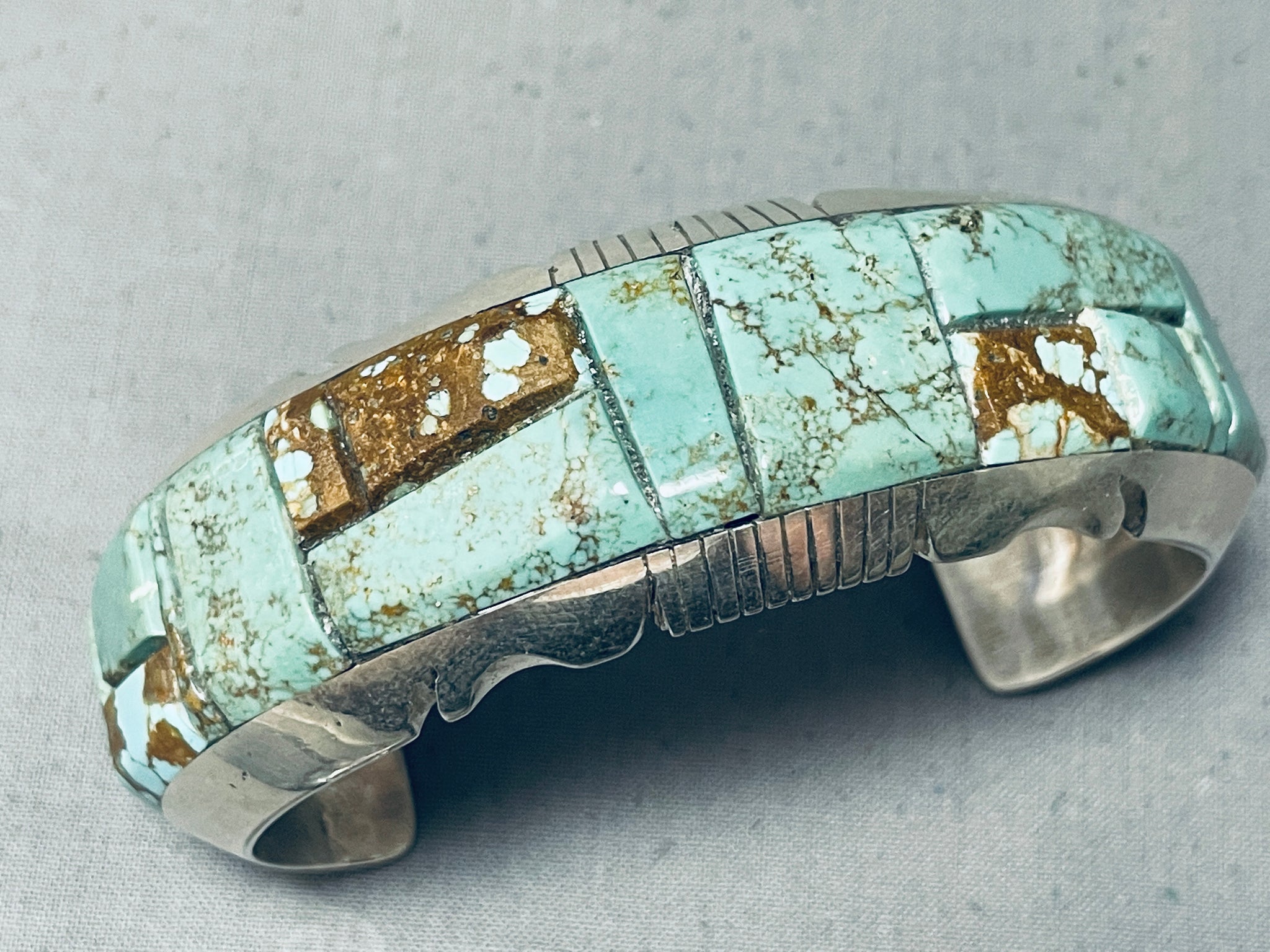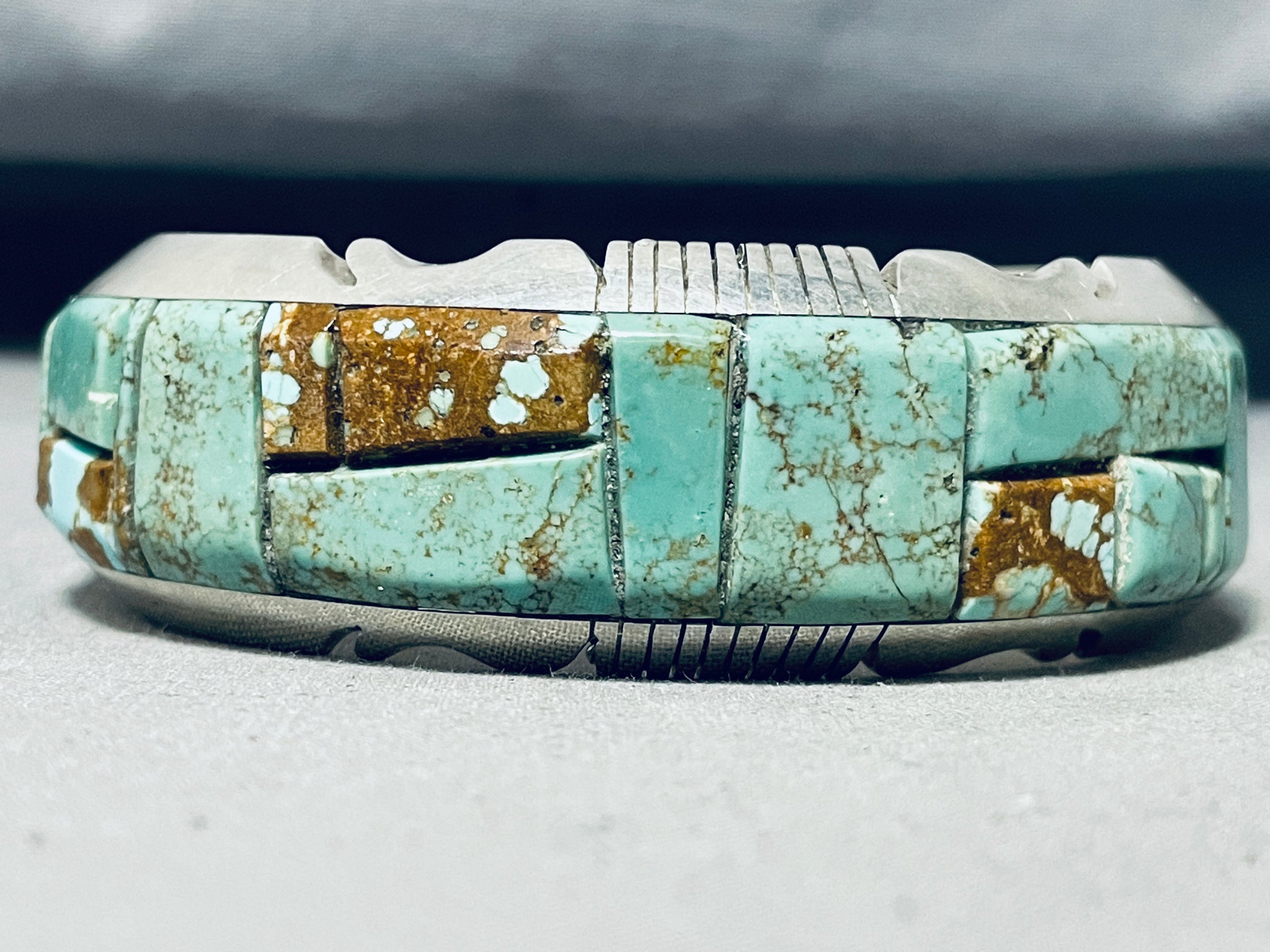 Amazing Vintage Native American Navajo Royston Turquoise Cobble Inlay Sterling Silver Bracelet