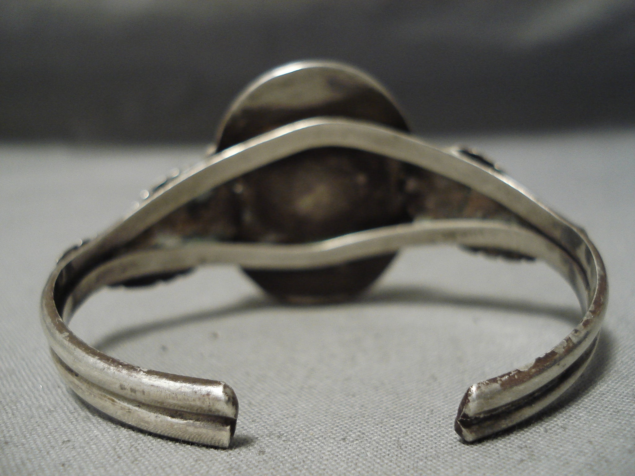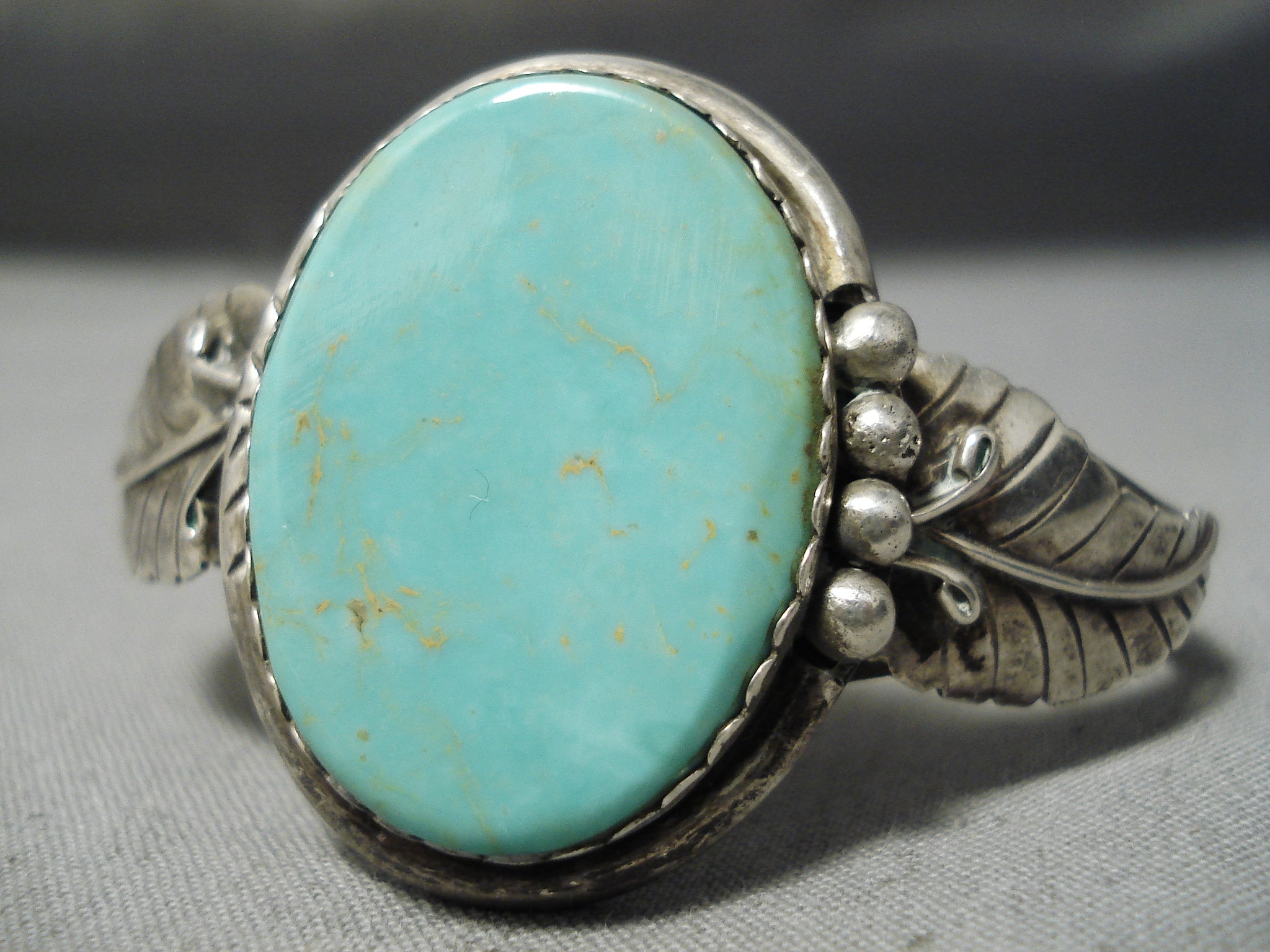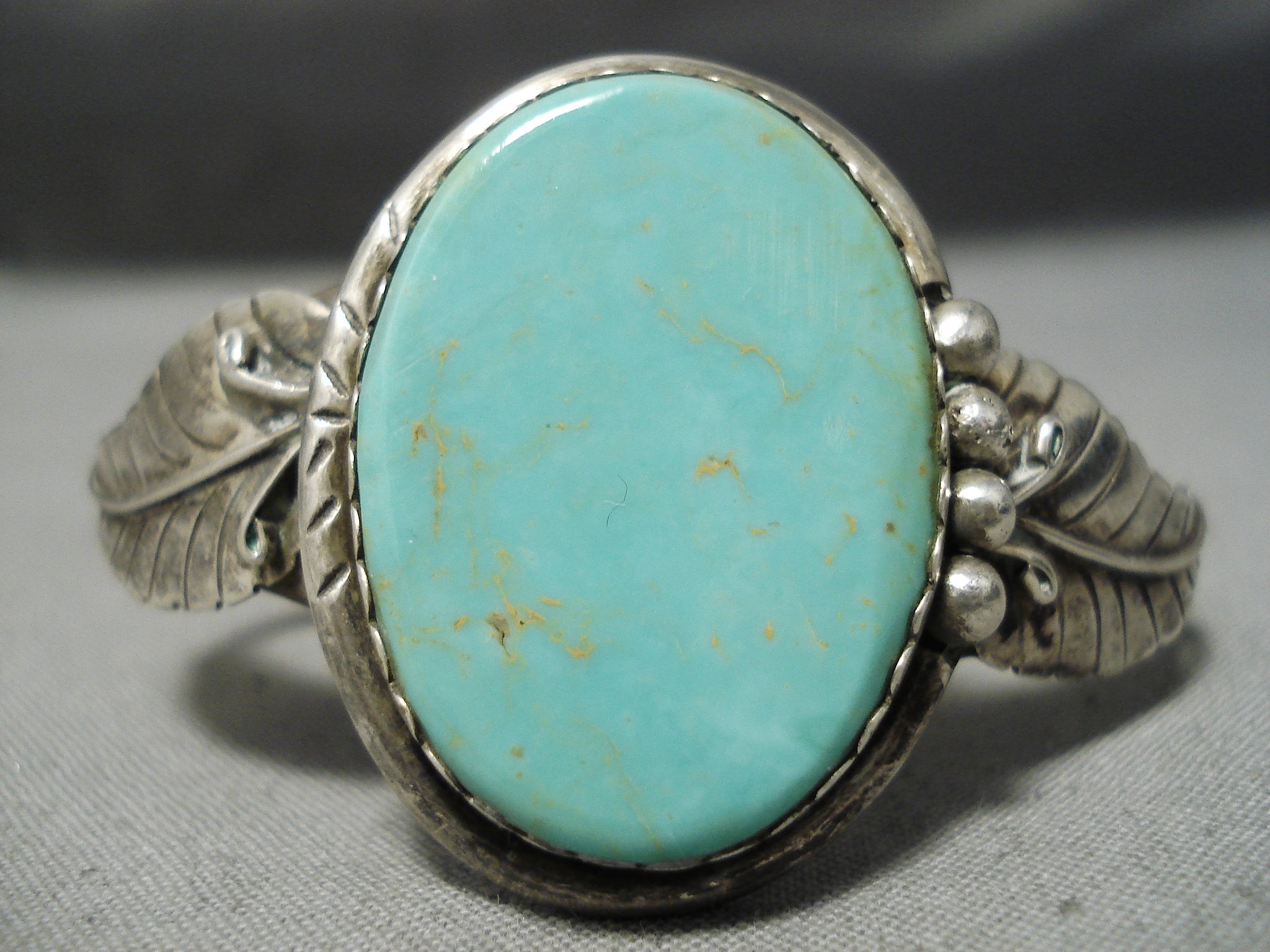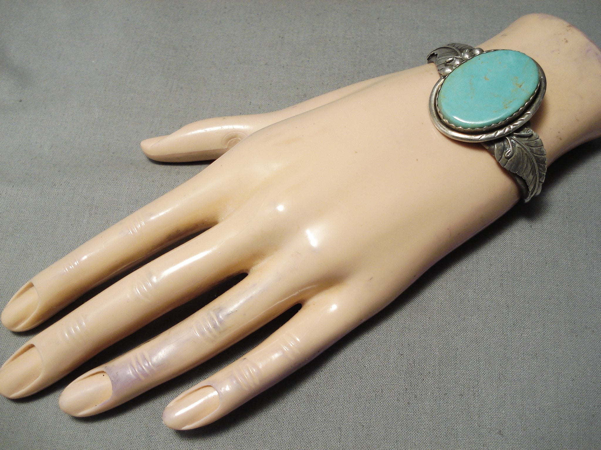 Amazing Vintage Native American Navajo Royston Turquoise Sterling Silver Leaf Bracelet Old
