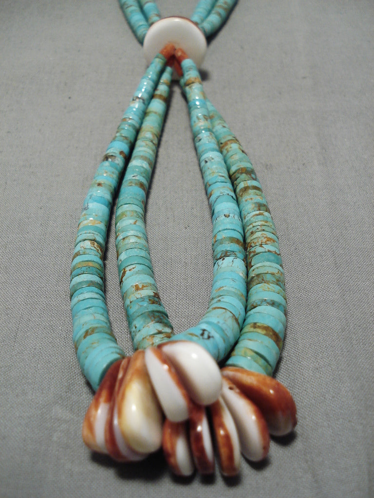 Amazing Vintage Native American Navajo Santo Domingo Heishi Shell #8 Turquoise Necklace