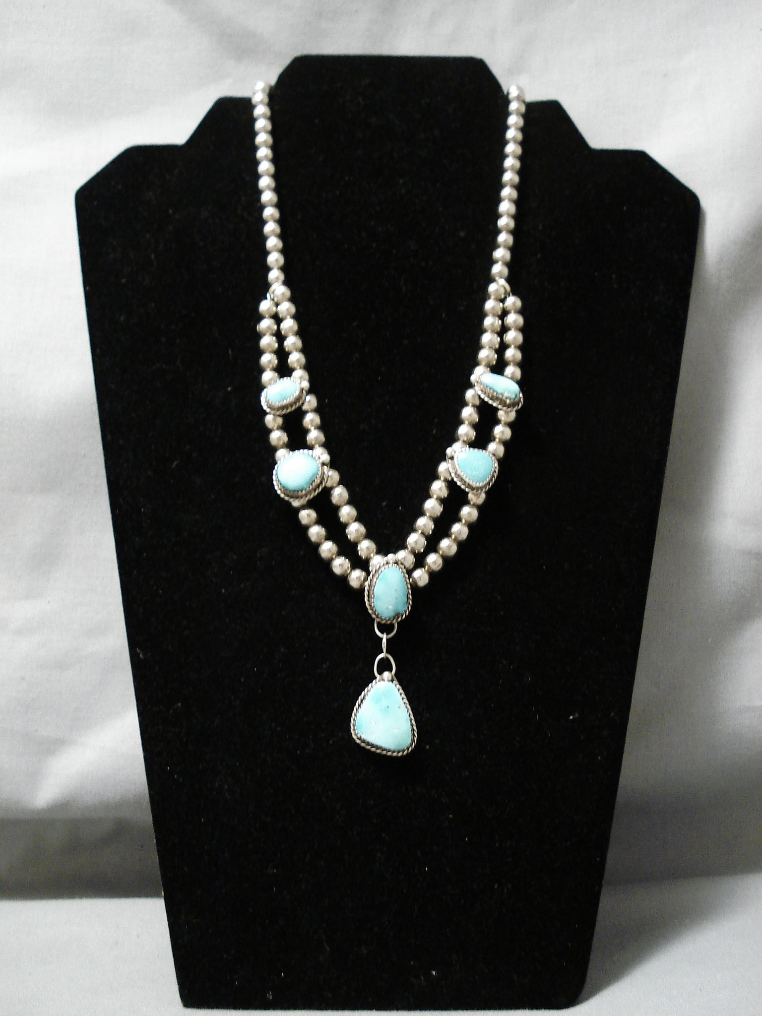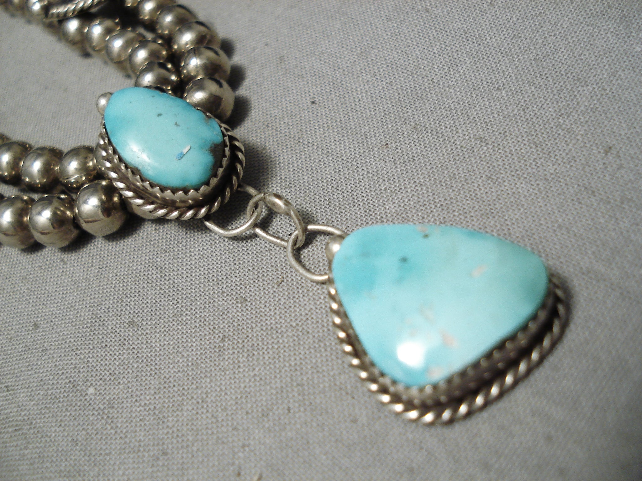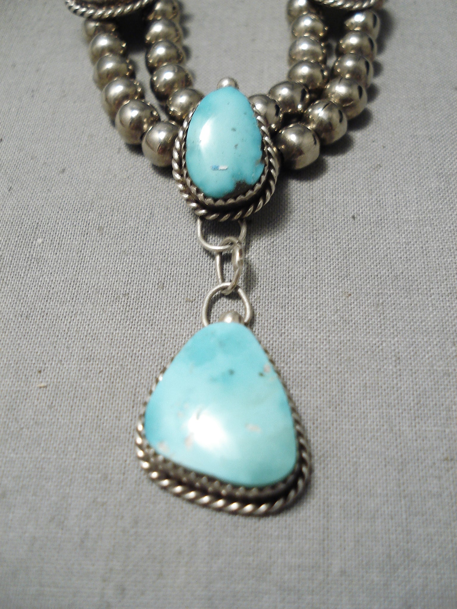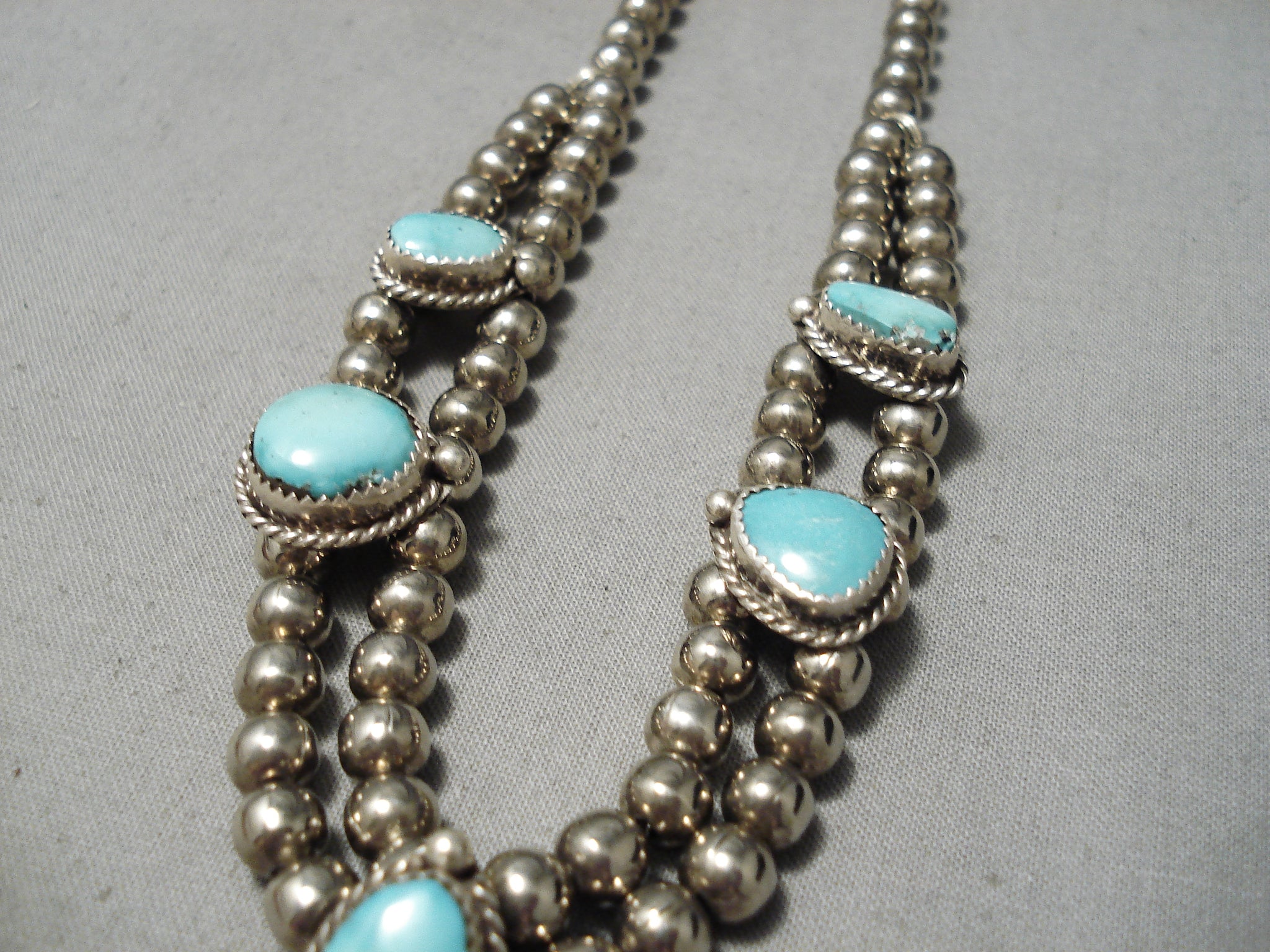Amazing Vintage Native American Navajo Sky Blue Turquoise Sterling Silver Necklace Old