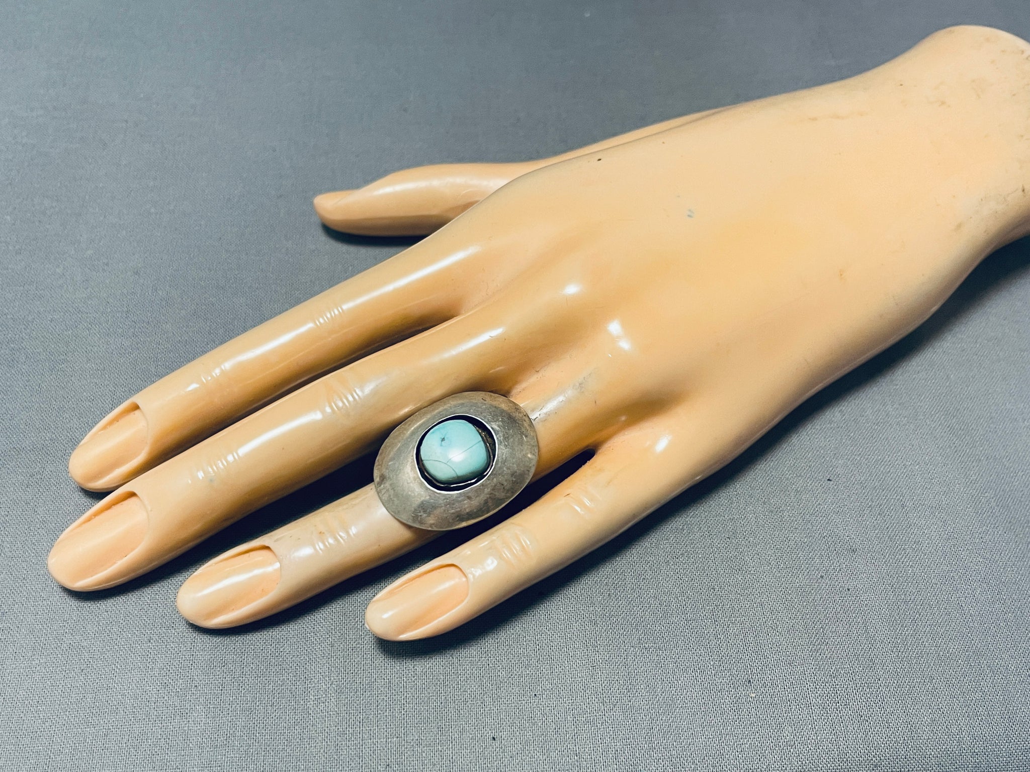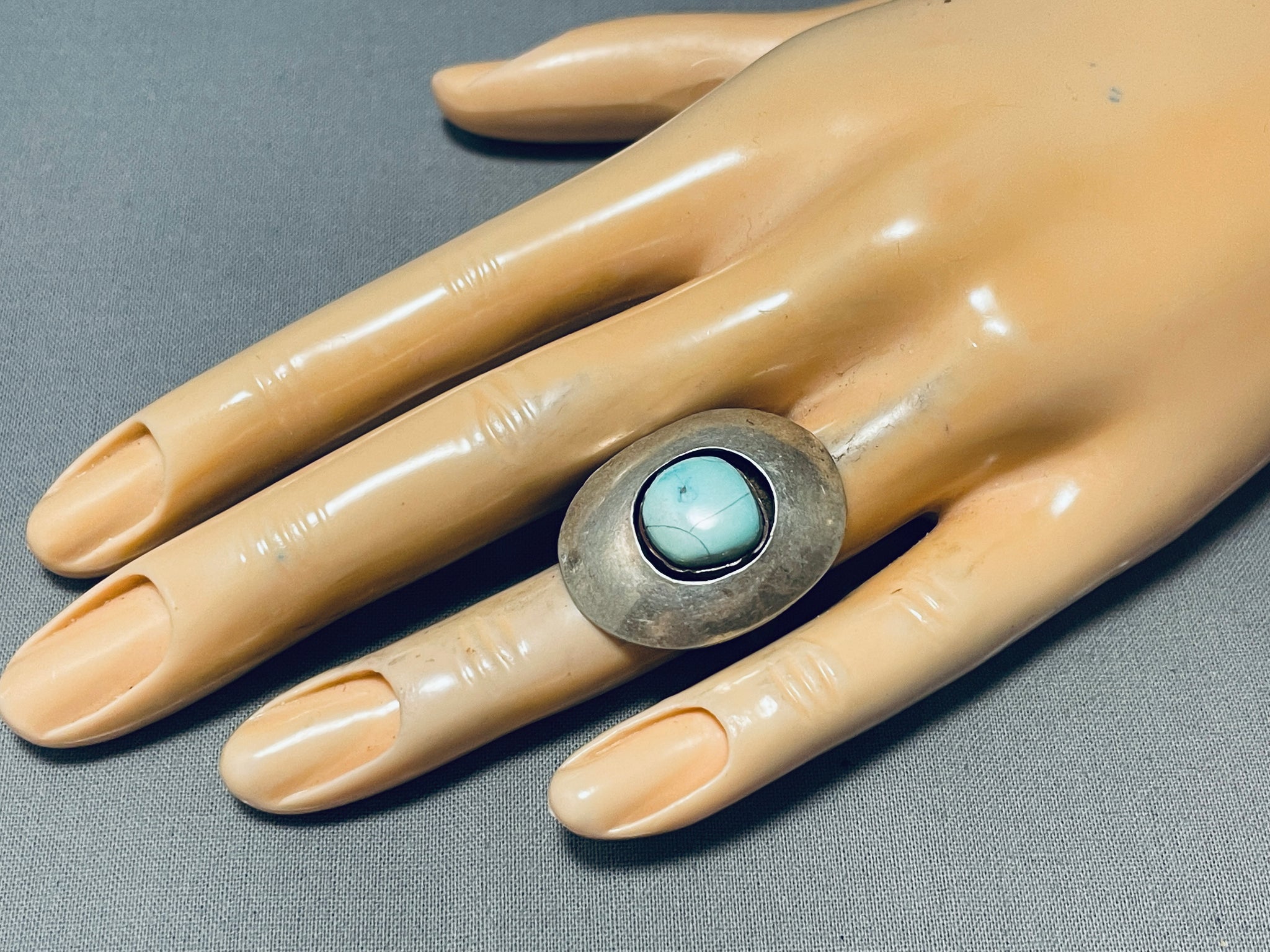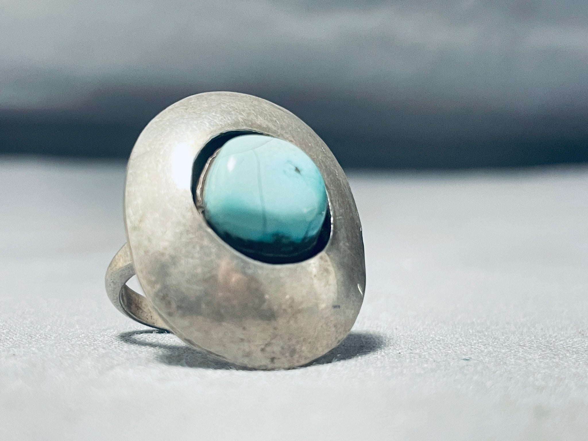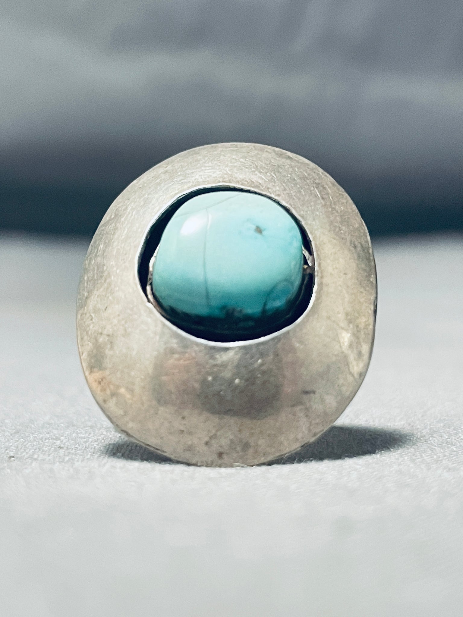 Amazing Vintage Native American Navajo Sky Blue Turquoise Sterling Silver Ring Old