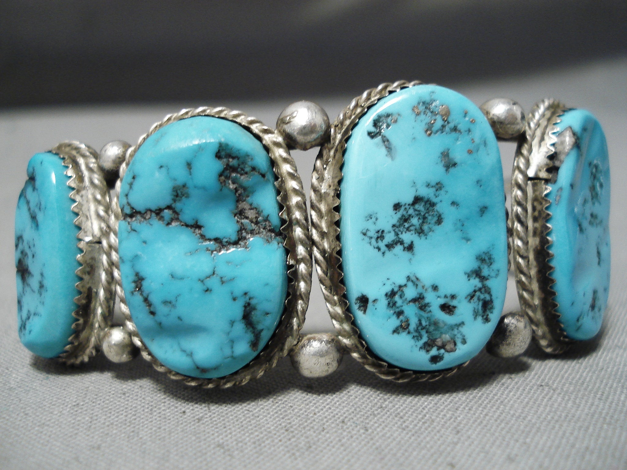 Amazing Vintage Native American Navajo Sleeping Beauty Turquoise Sterling Silver Bracelet