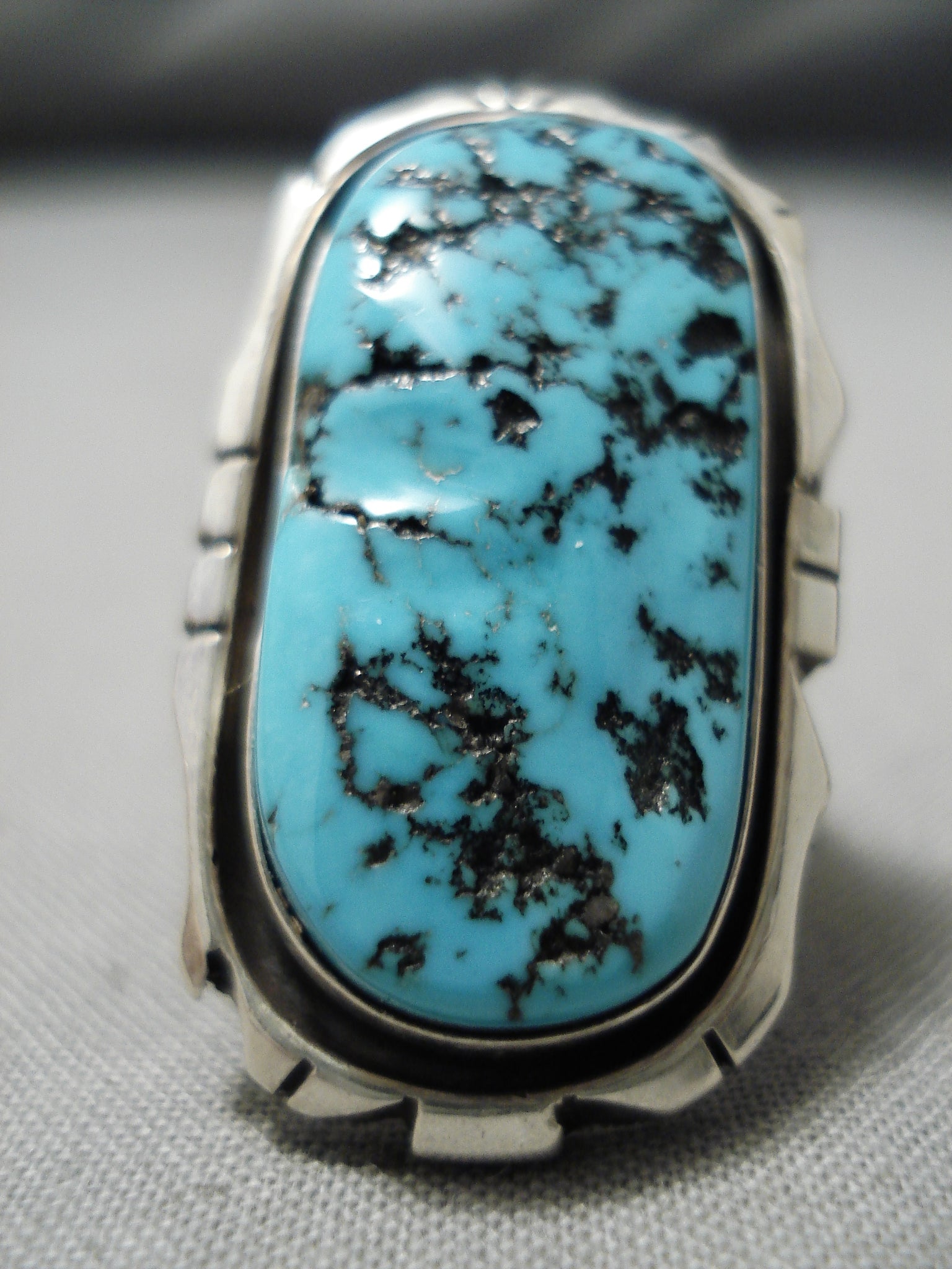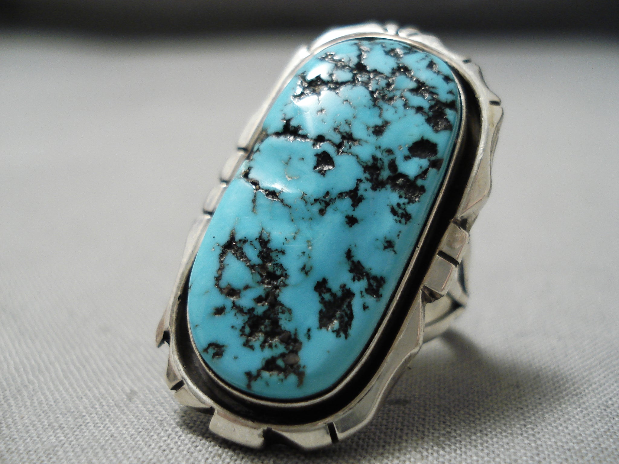 Amazing Vintage Native American Navajo Sleeping Turquoise Sterling Silver Ring Old