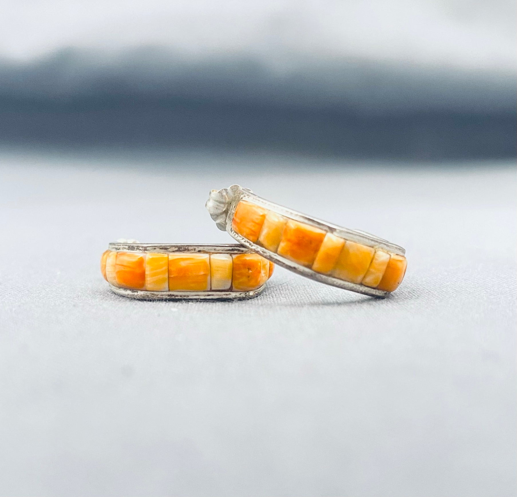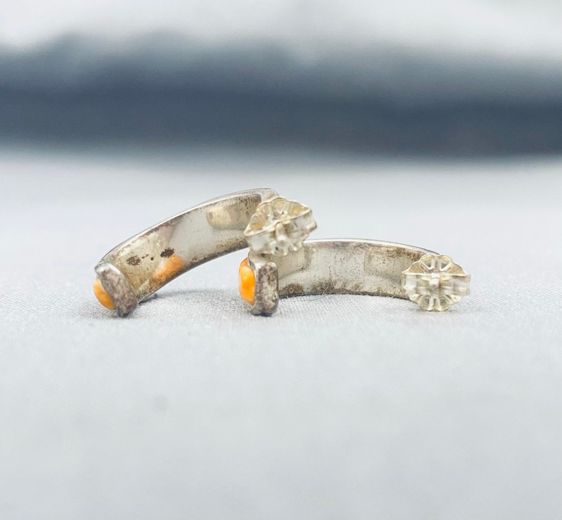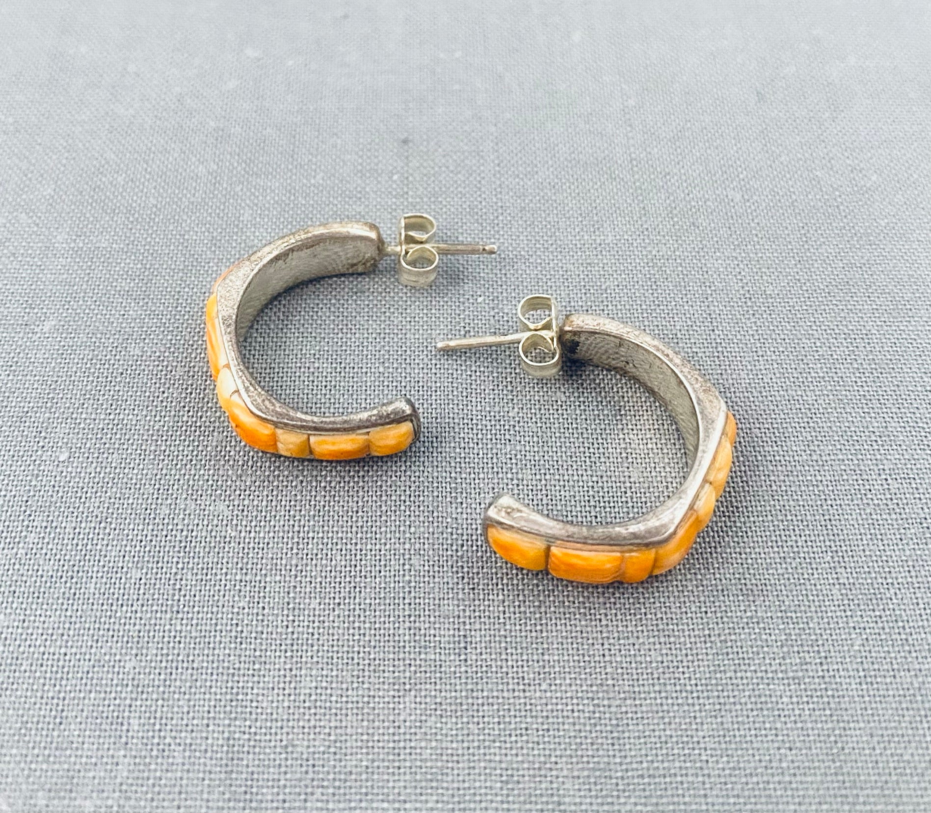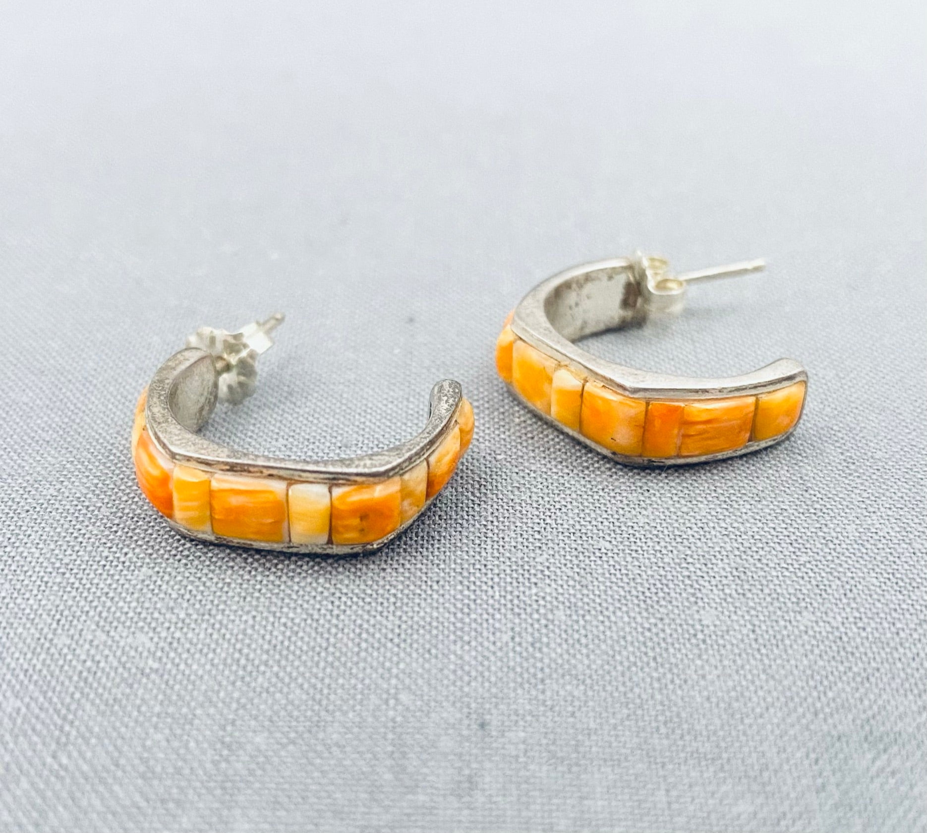 Amazing Vintage Native American Navajo Spiny Oyster Sterling Silver Earrings