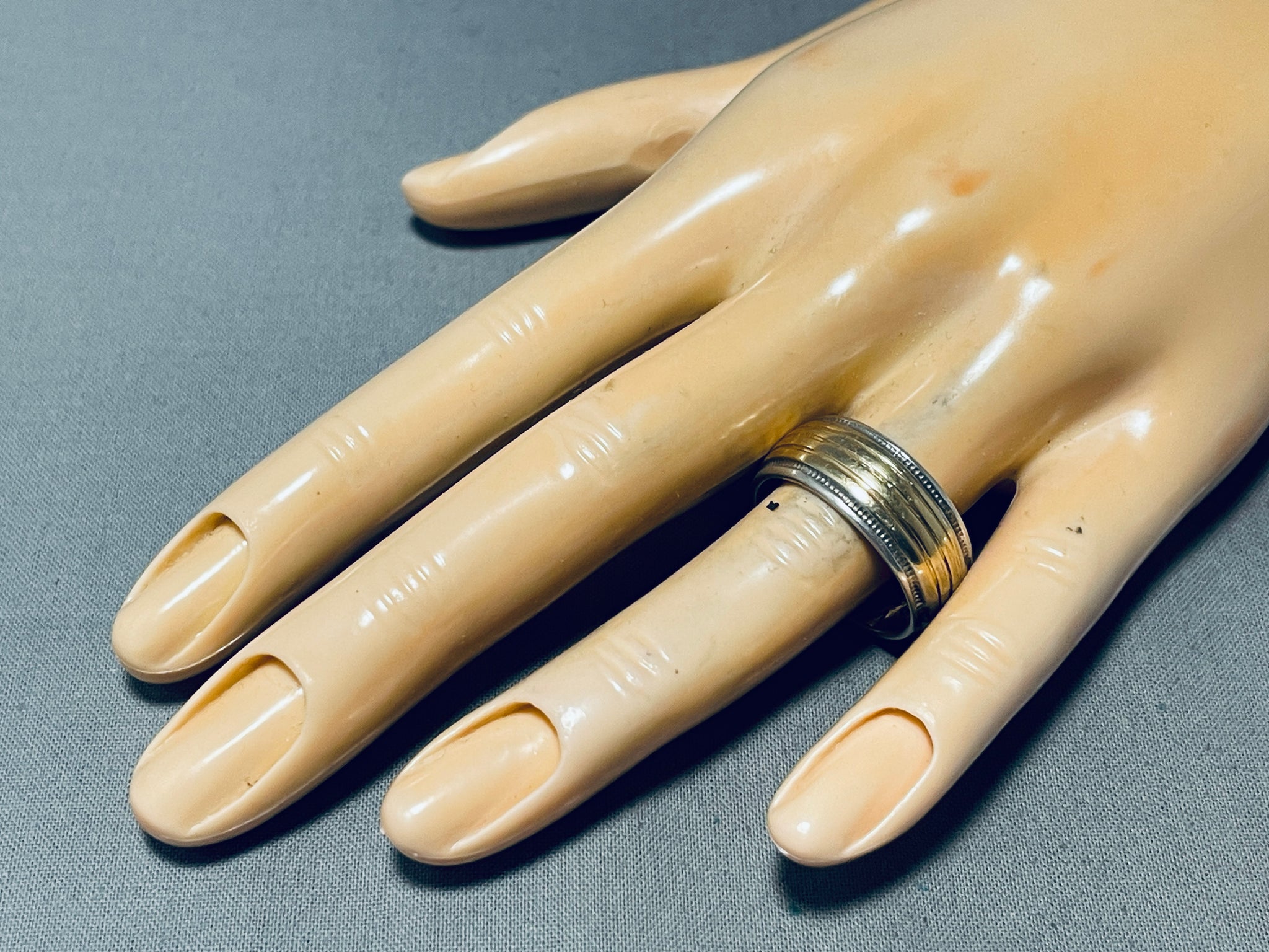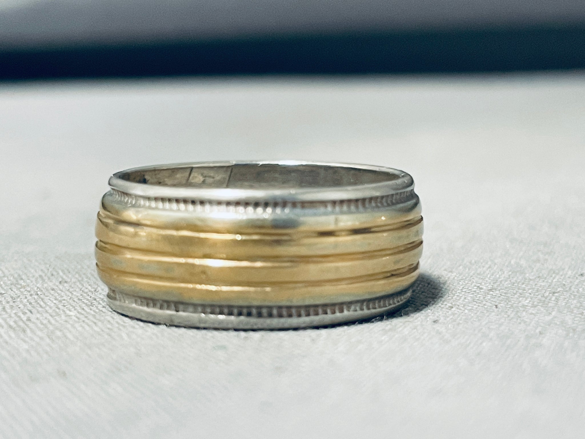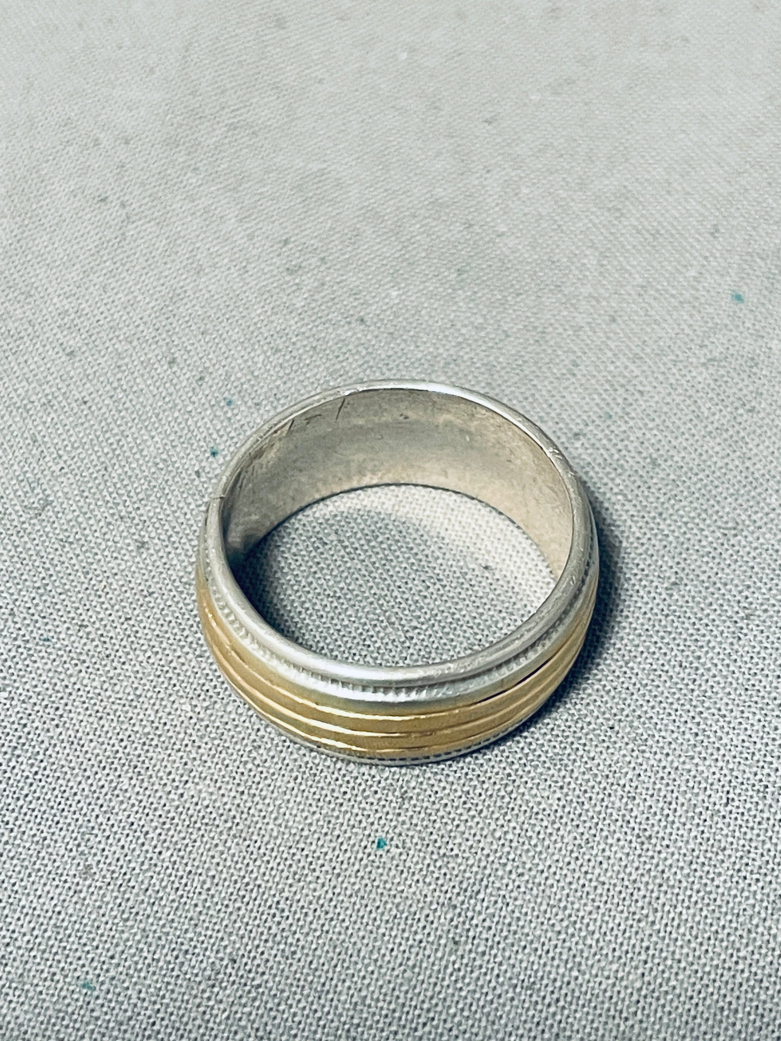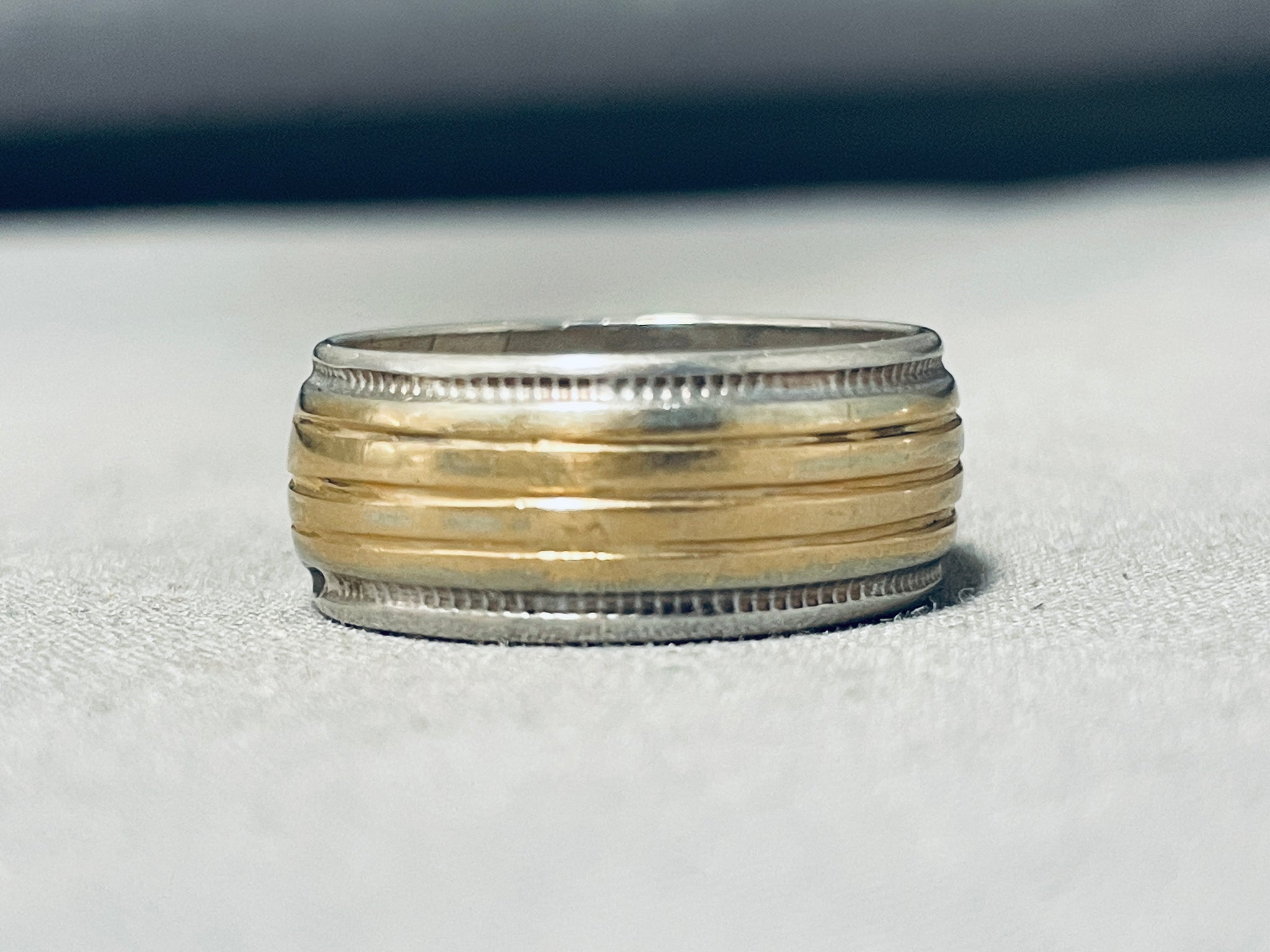 Amazing Vintage Native American Navajo Sterling Silver & 14k Gold Ring Signed V.hicks