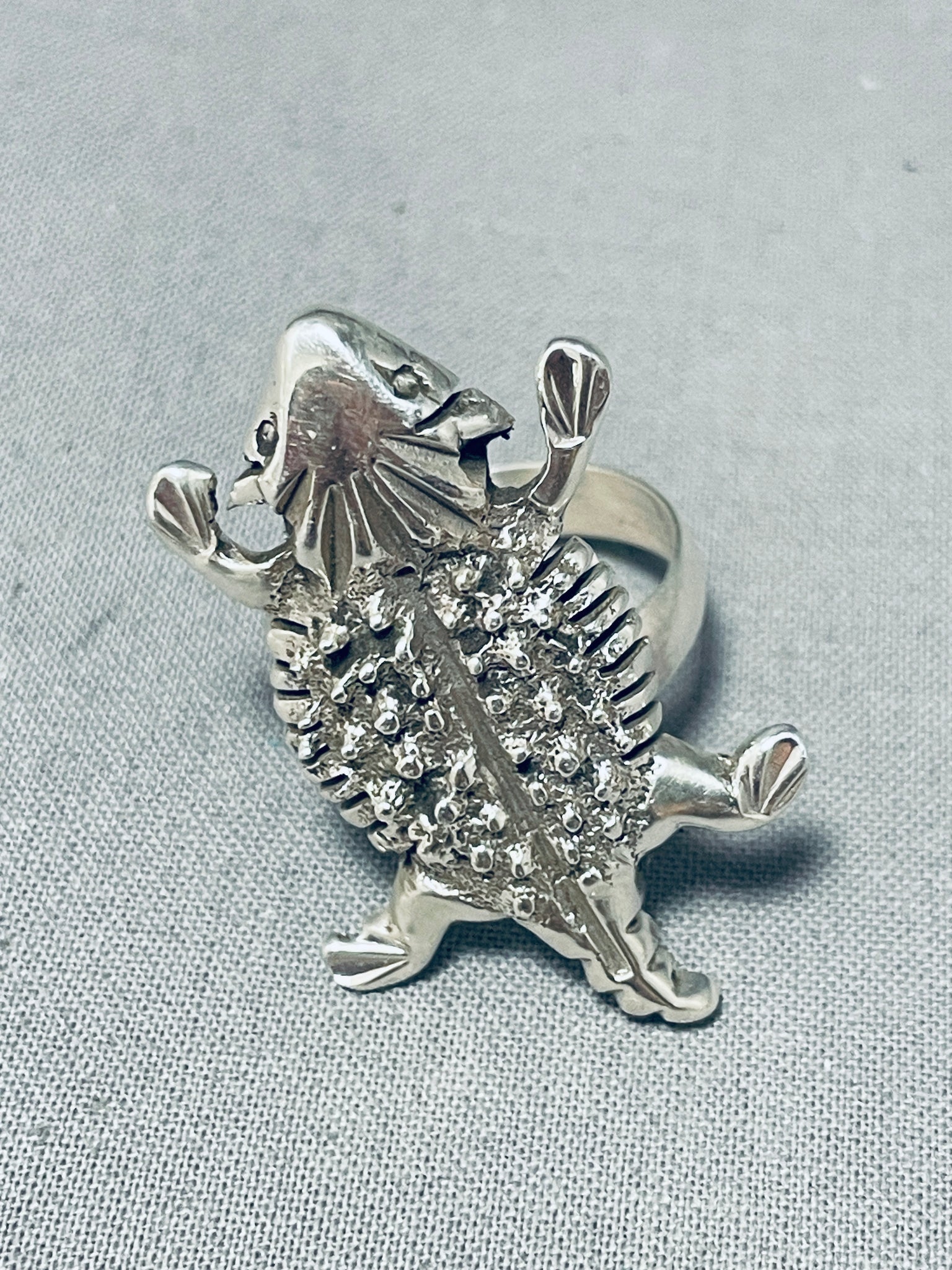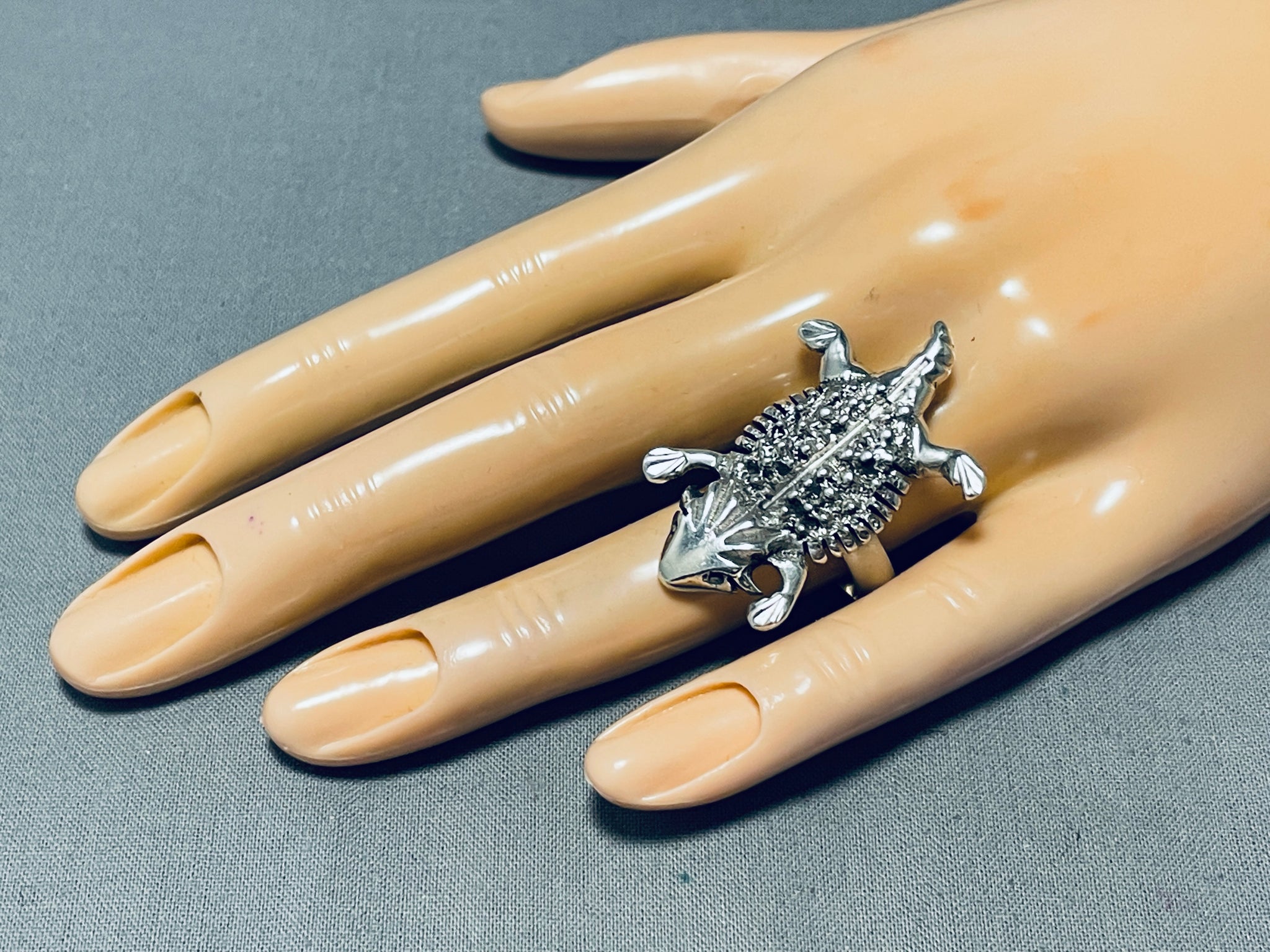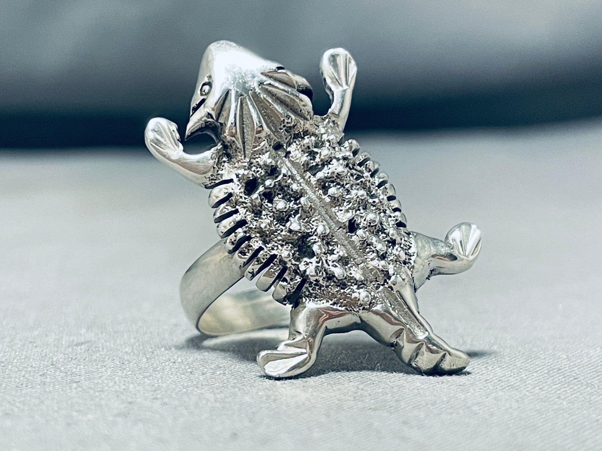 Amazing Vintage Native American Navajo Sterling Silver Southwestern Toad Ring