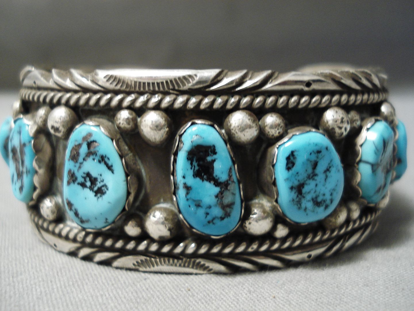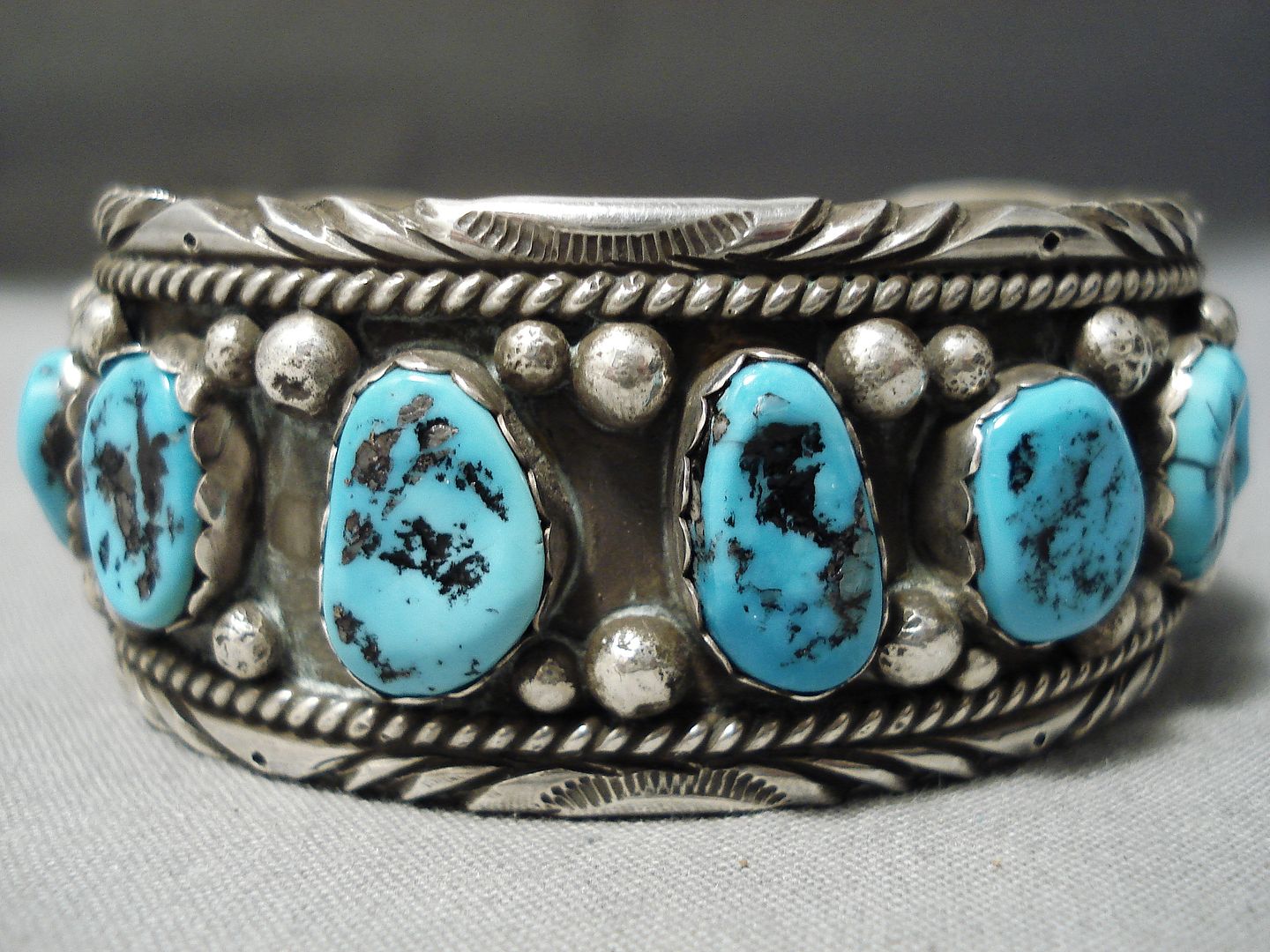 Amazing Vintage Native American Navajo Sterling Silver Turquoise Bracelet Cuff
