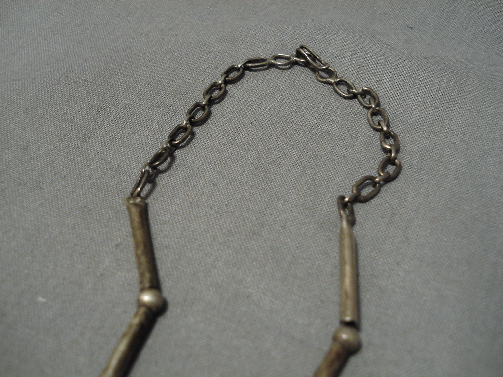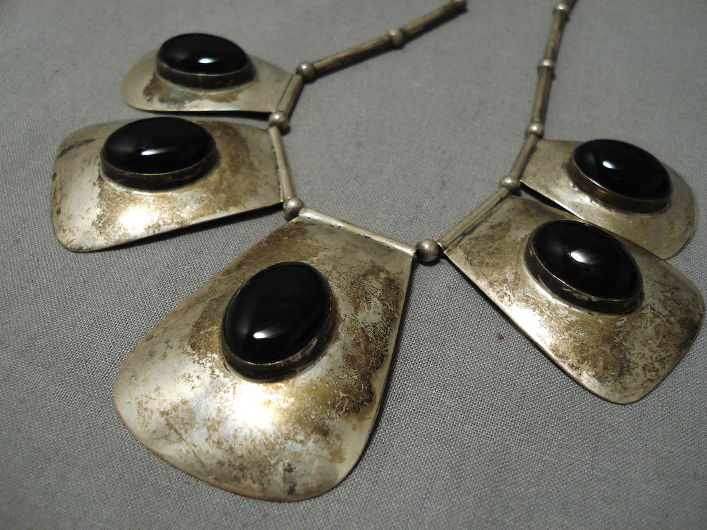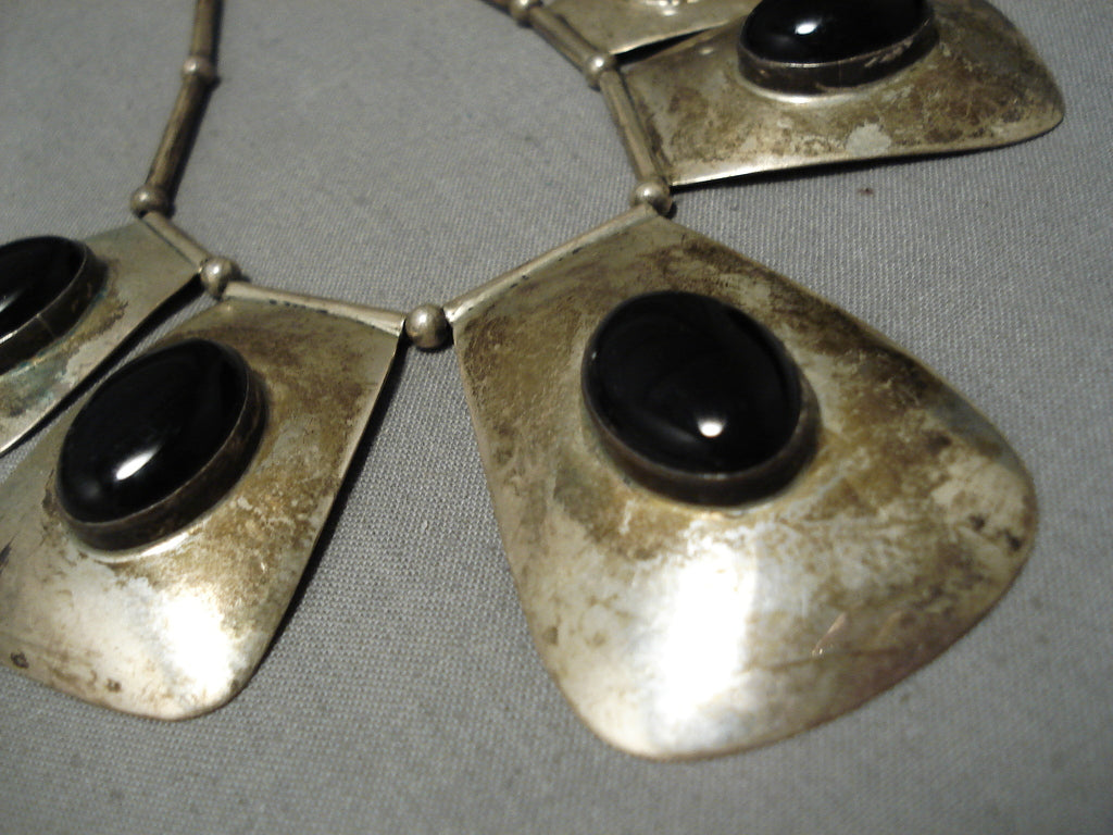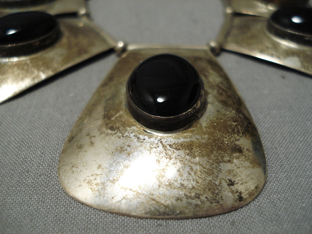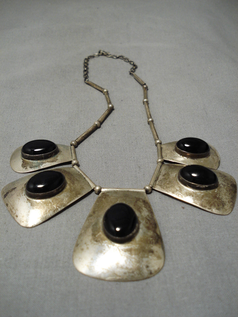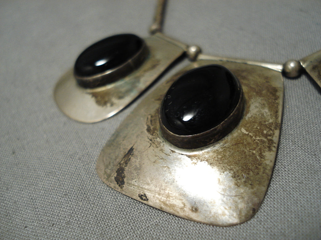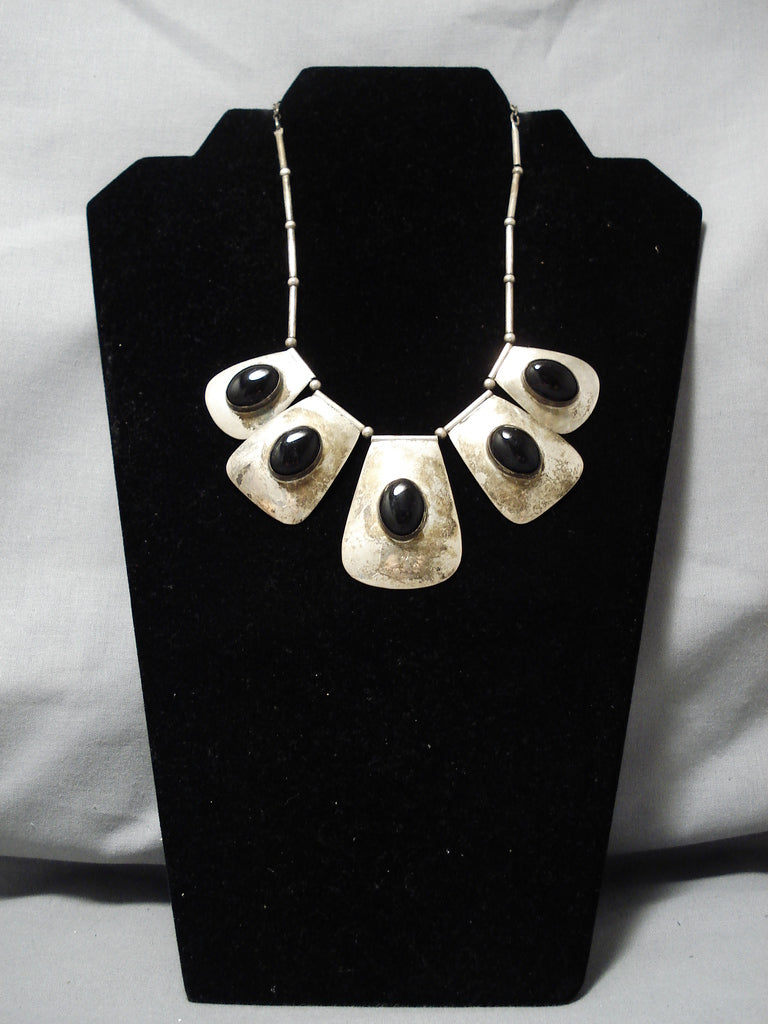 Amazing Vintage Native American Navajo Tubule Bead Sterling Silver Onyx Necklace Old