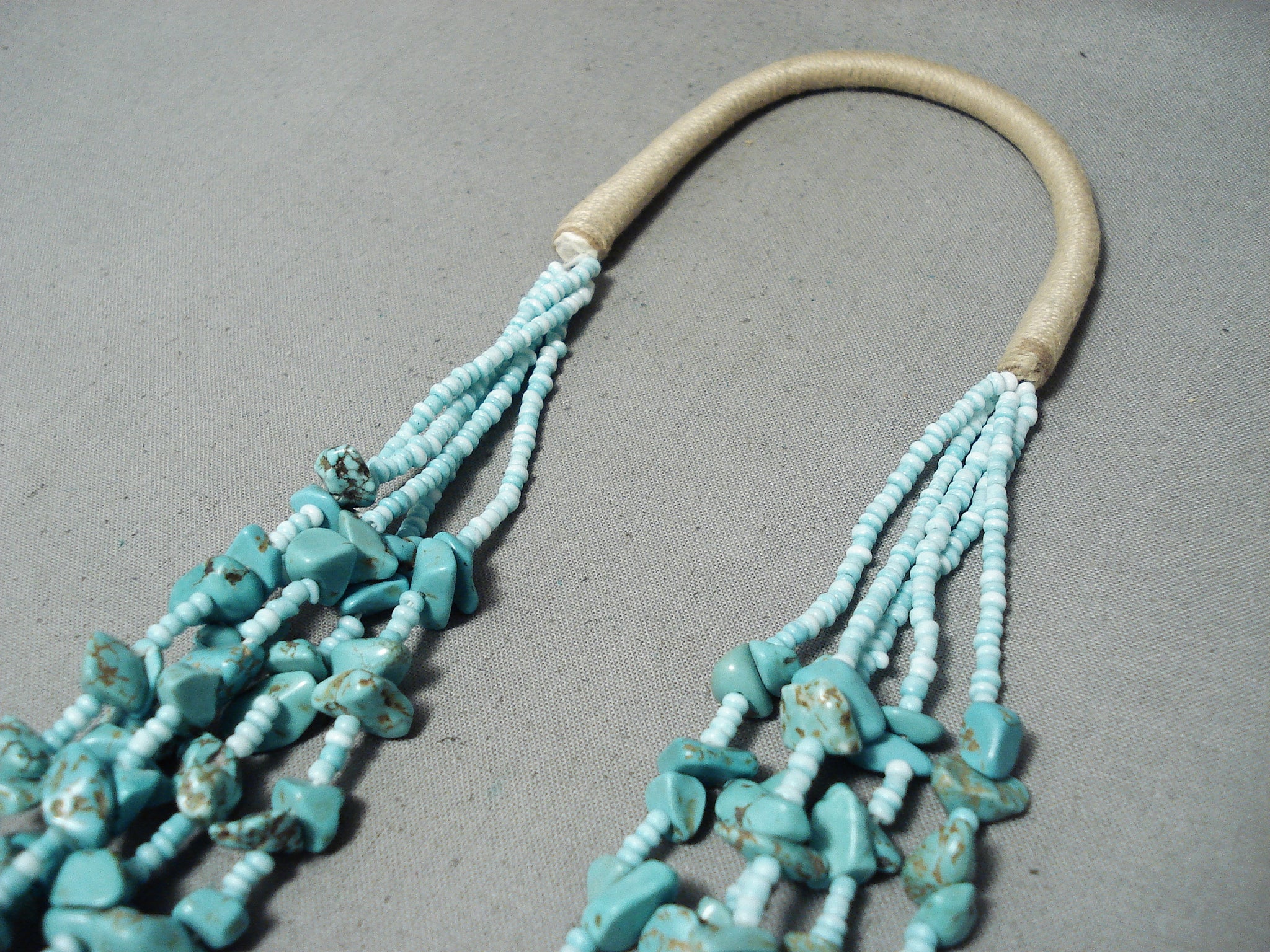 Amazing Vintage Native American Navajo Turquoise Blue Bead Heishi Necklace Old