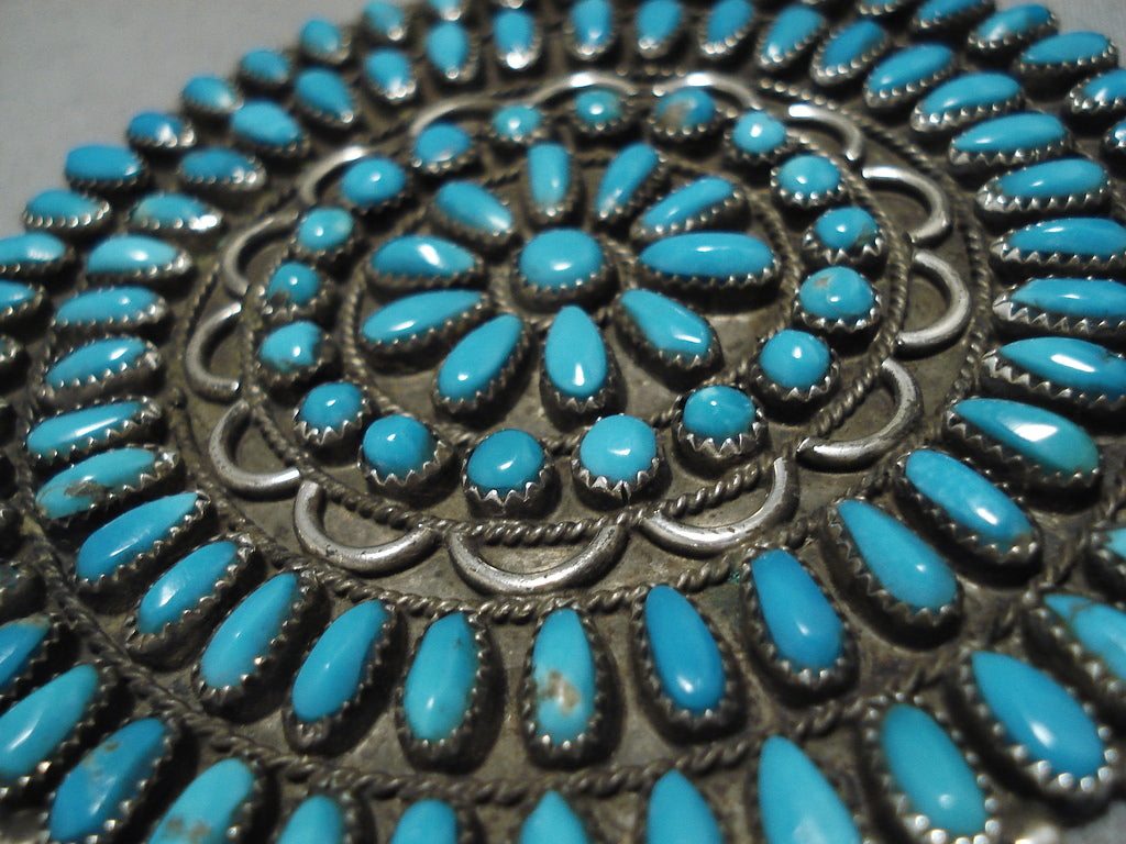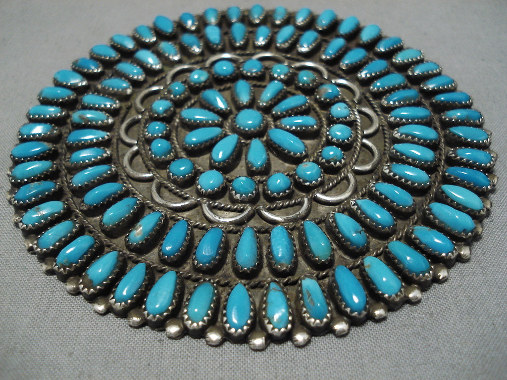 Amazing Vintage Native American Navajo Turquoise Cluster Sterling Silver Pin Pendant