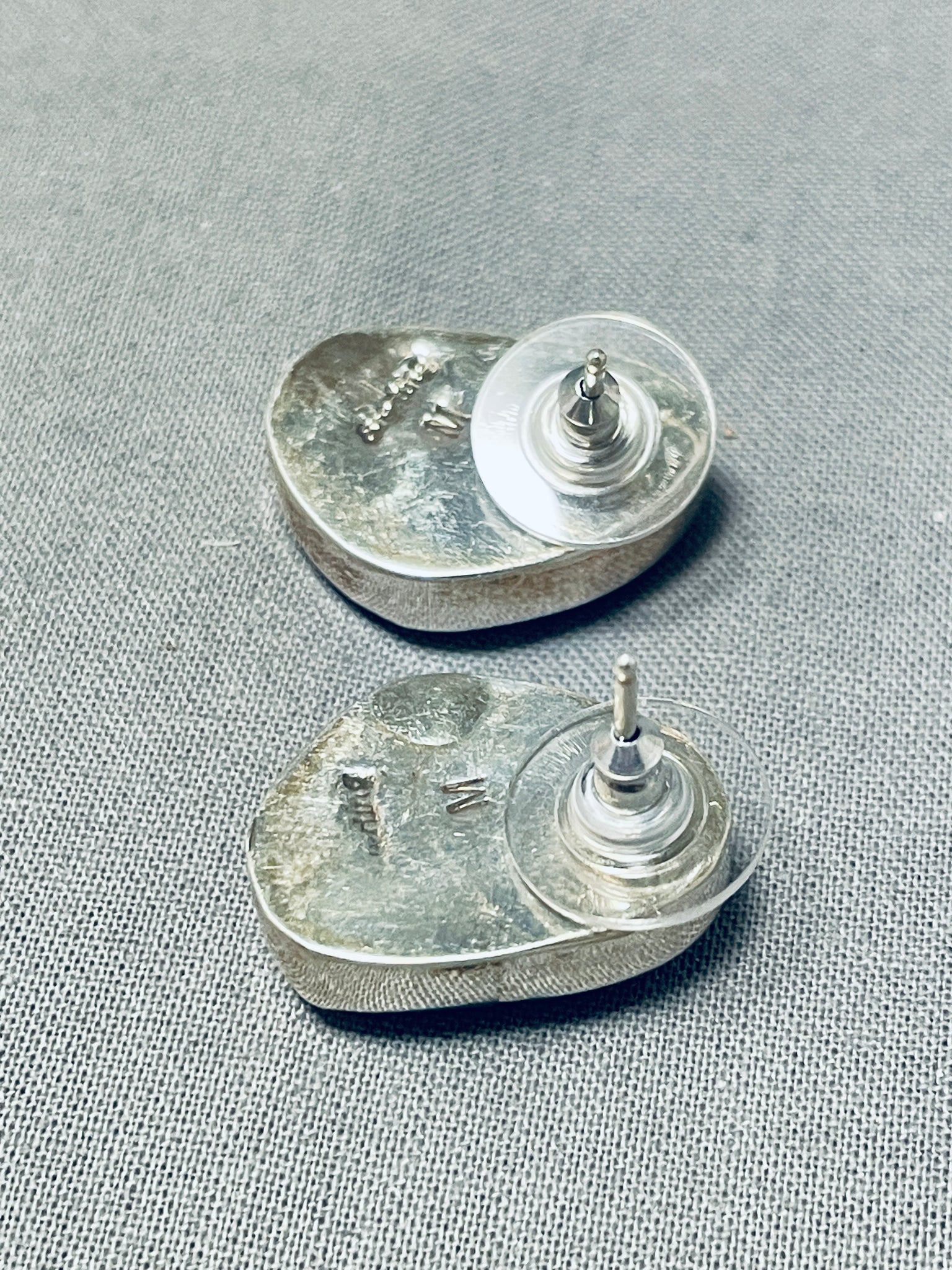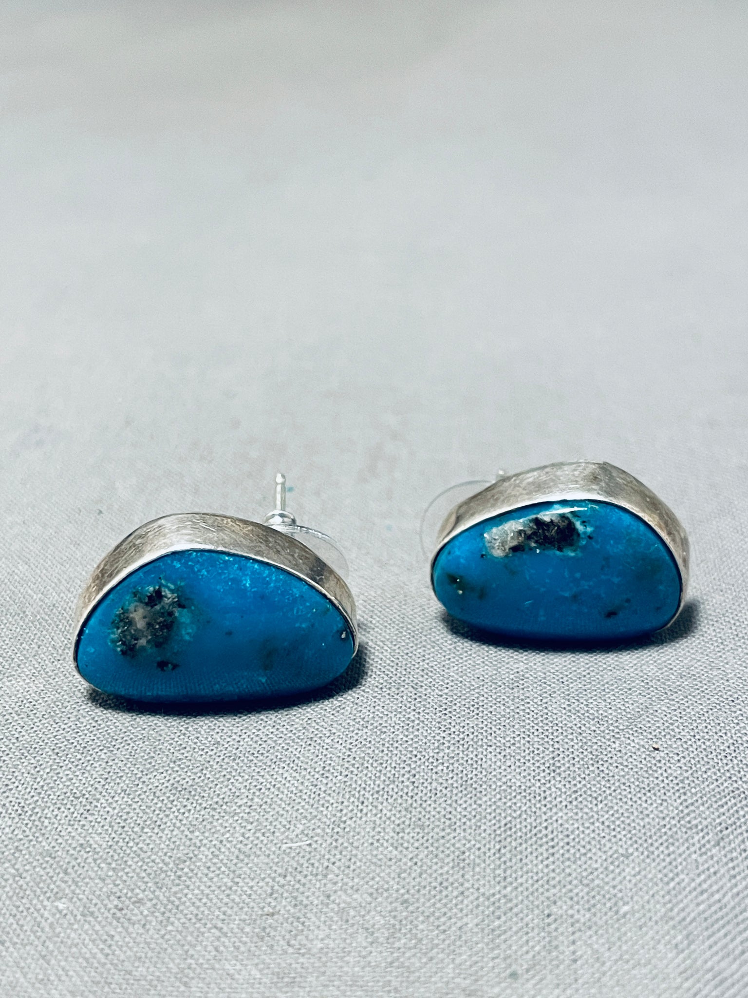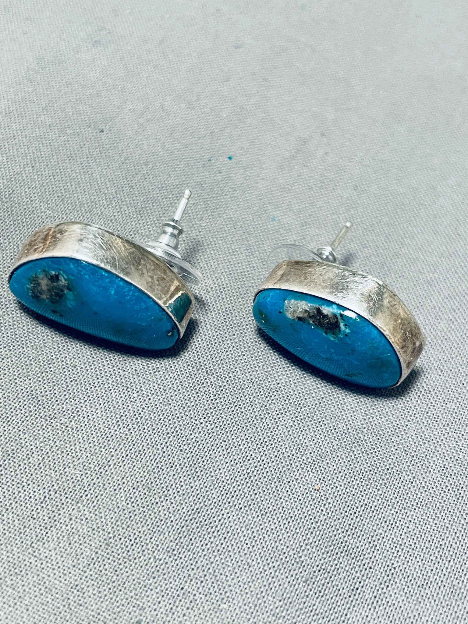 Amazing Vintage Native American Navajo Turquoise Nugget Sterling Silver Earrings
