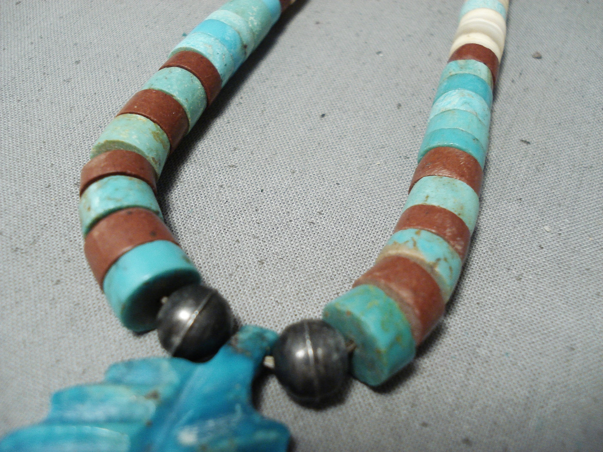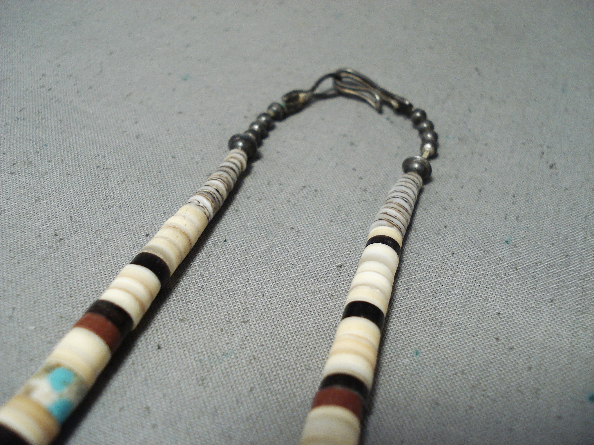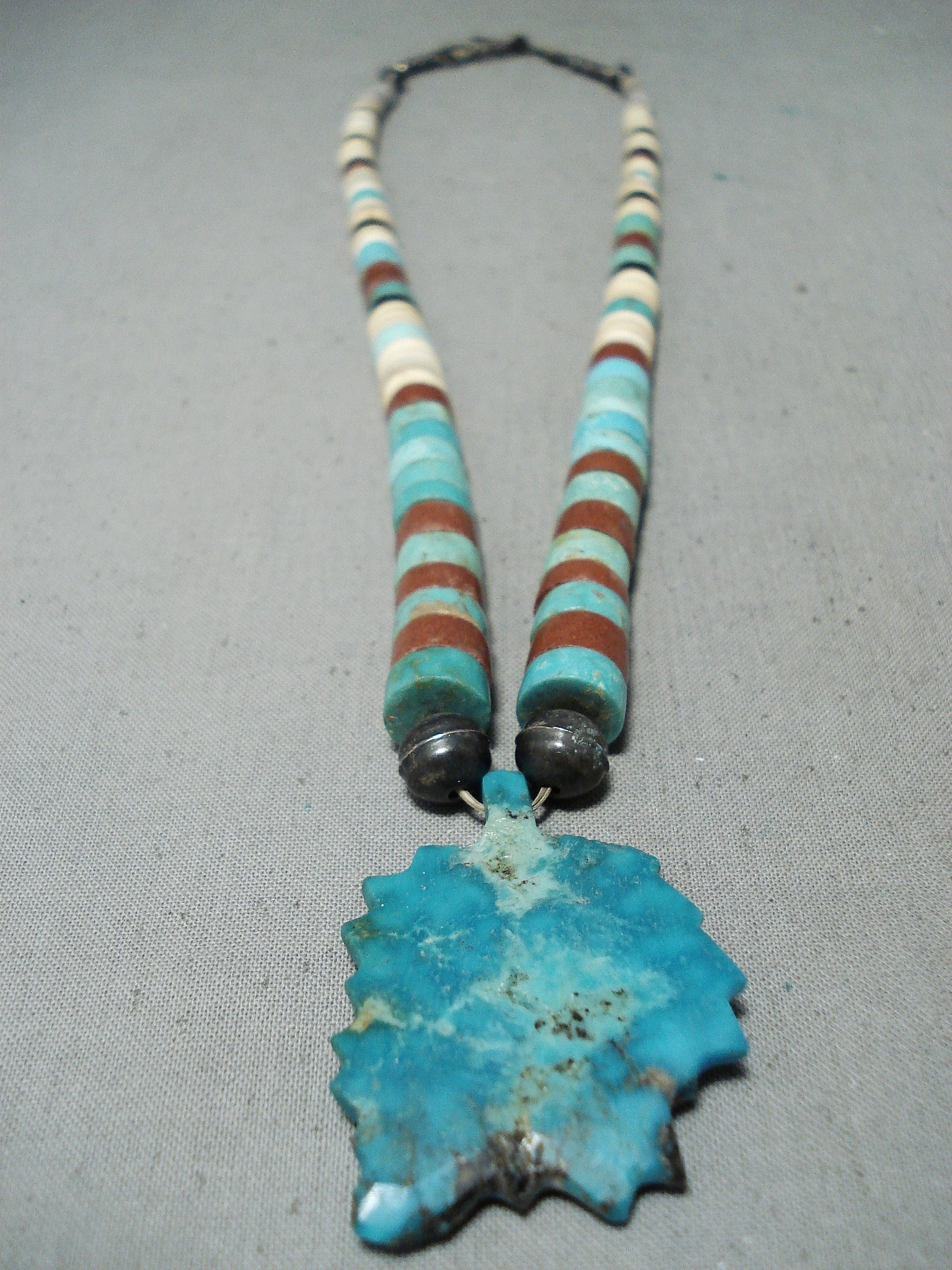 Amazing Vintage Native American Navajo Turquoise Pipestone Sterling Silver Necklace