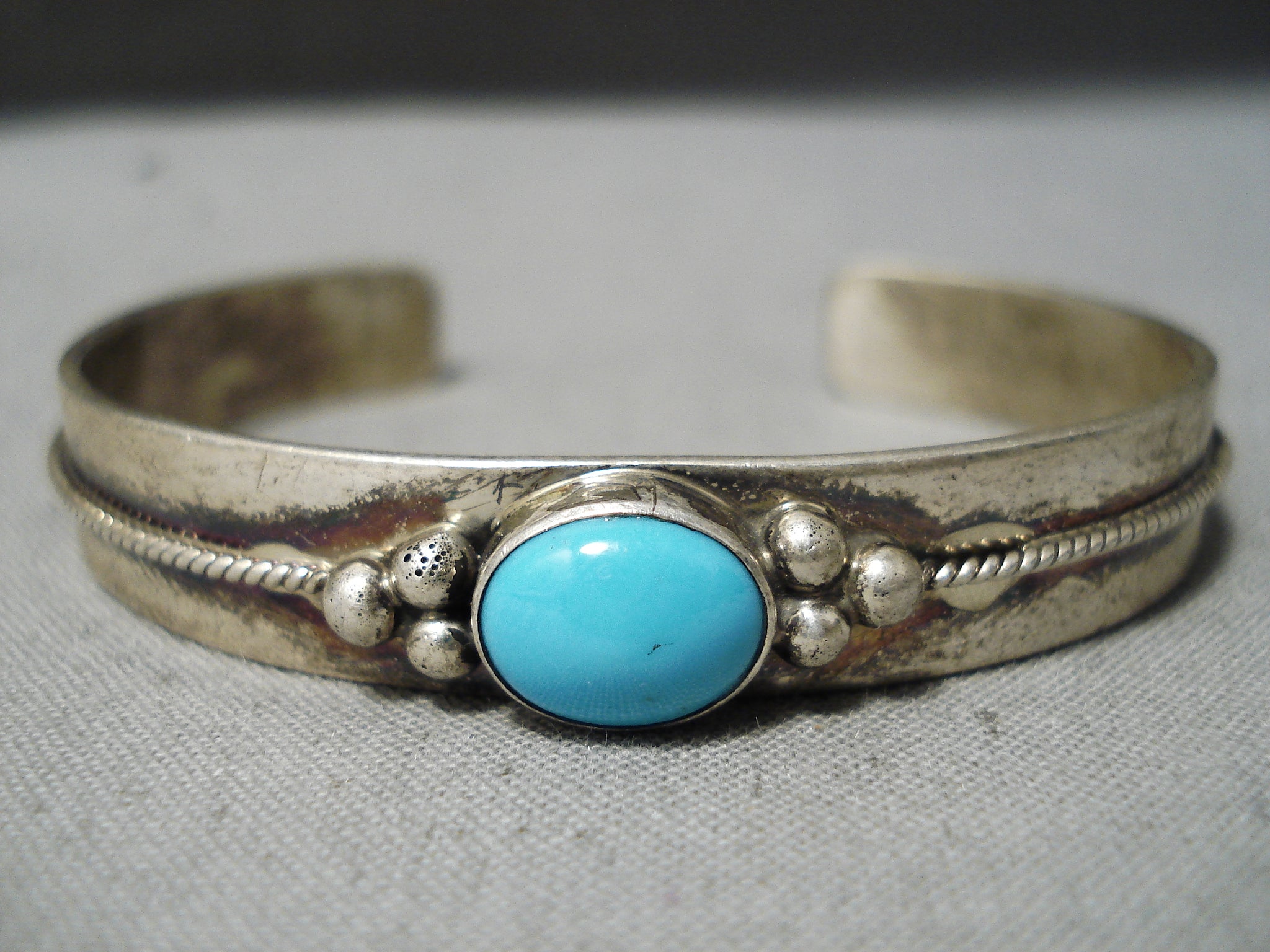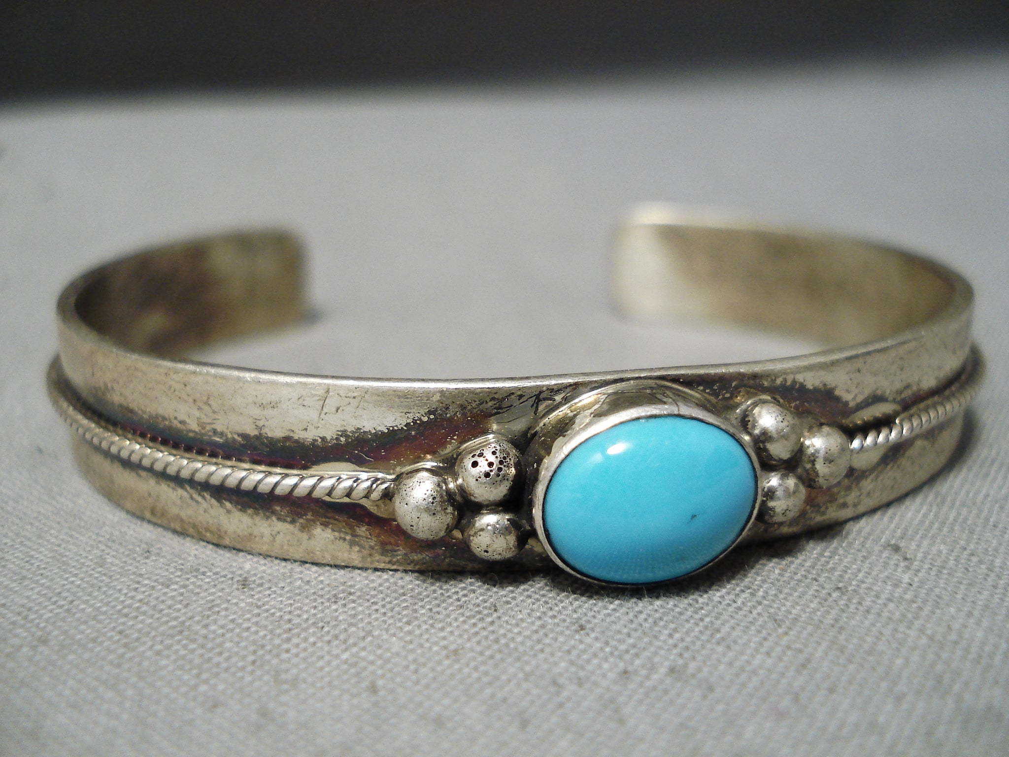 Amazing Vintage Native American Navajo Turquoise Sterling Silver Bracelet Old
