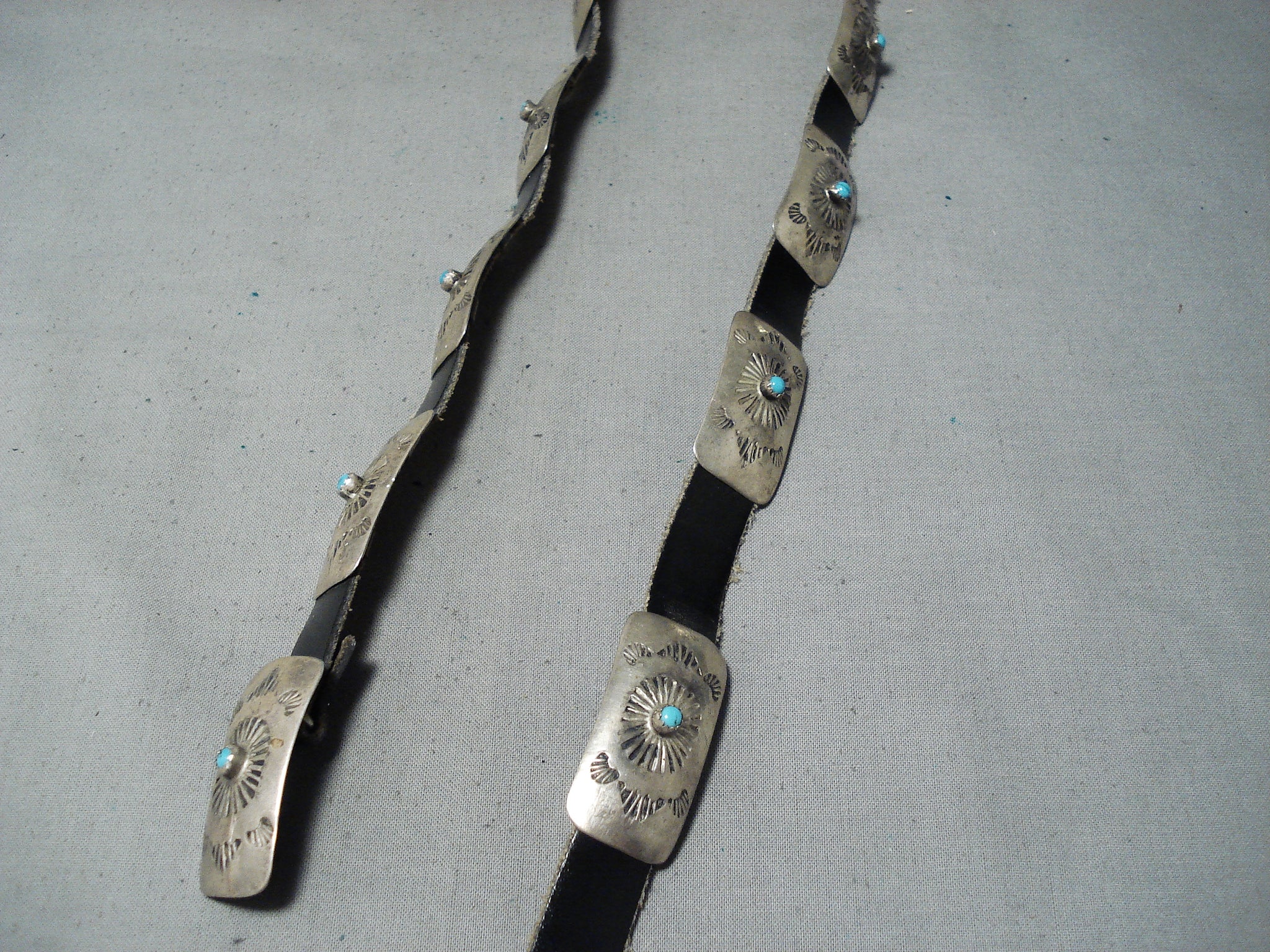 Amazing Vintage Native American Navajo Turquoise Sterling Silver Concho Belt Old