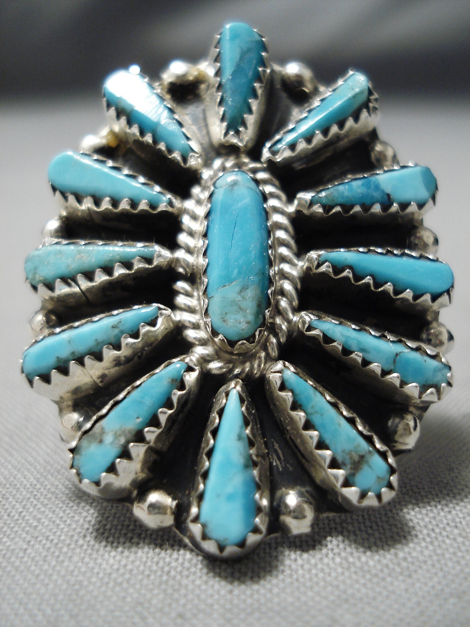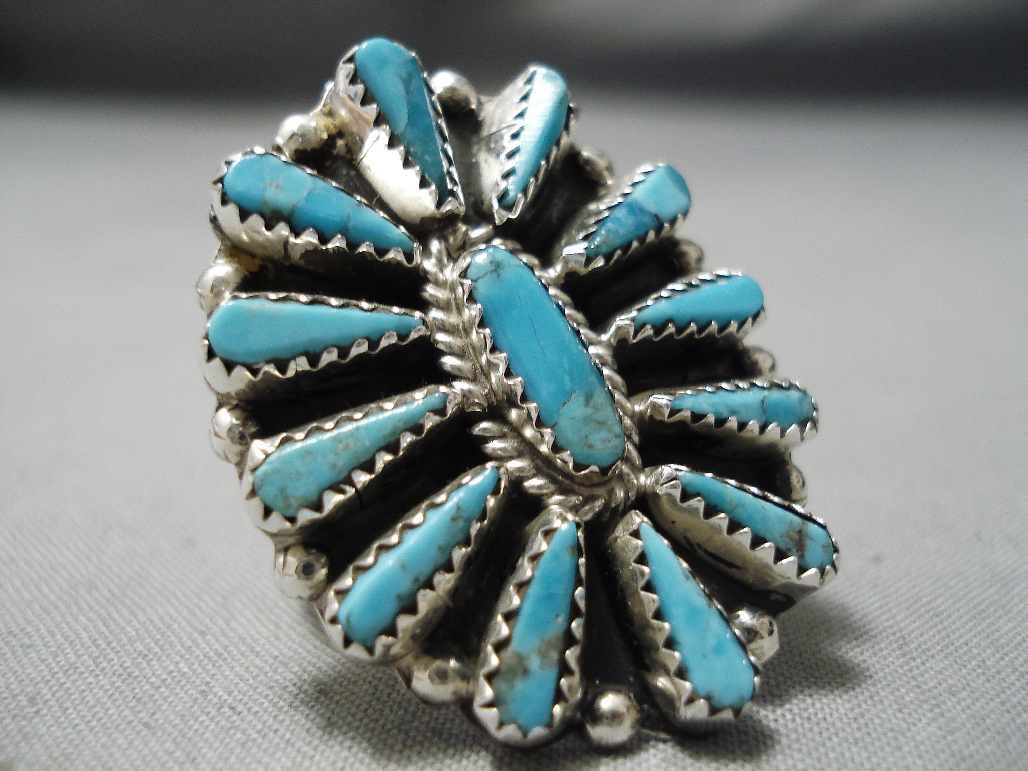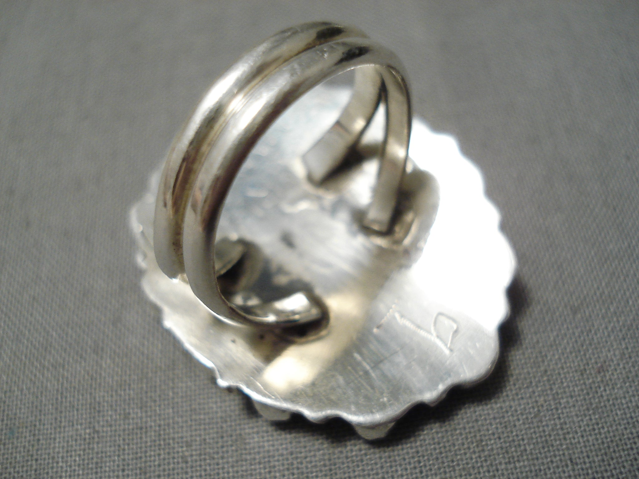 Amazing Vintage Native American Navajo Turquoise Sun Sterling Silver Ring