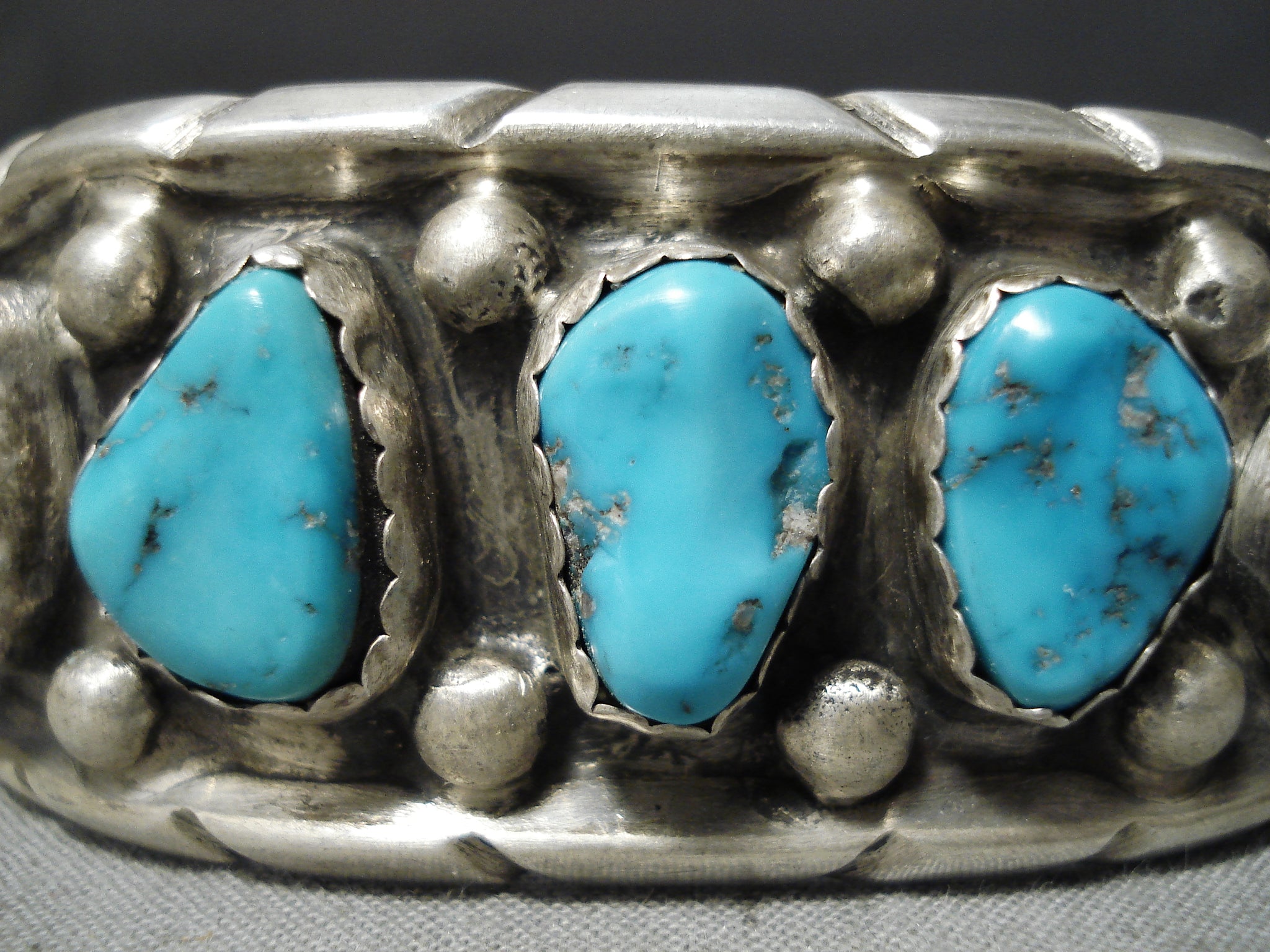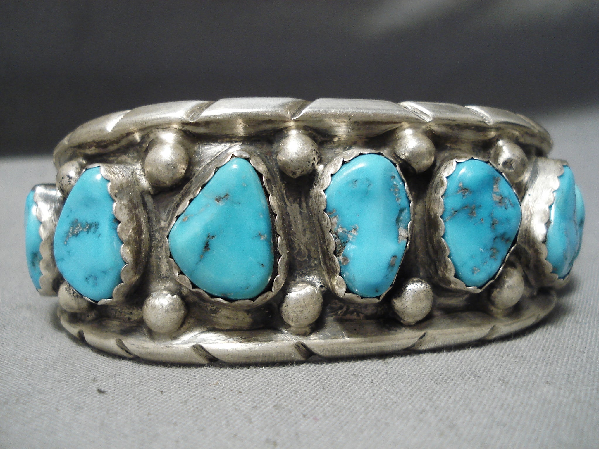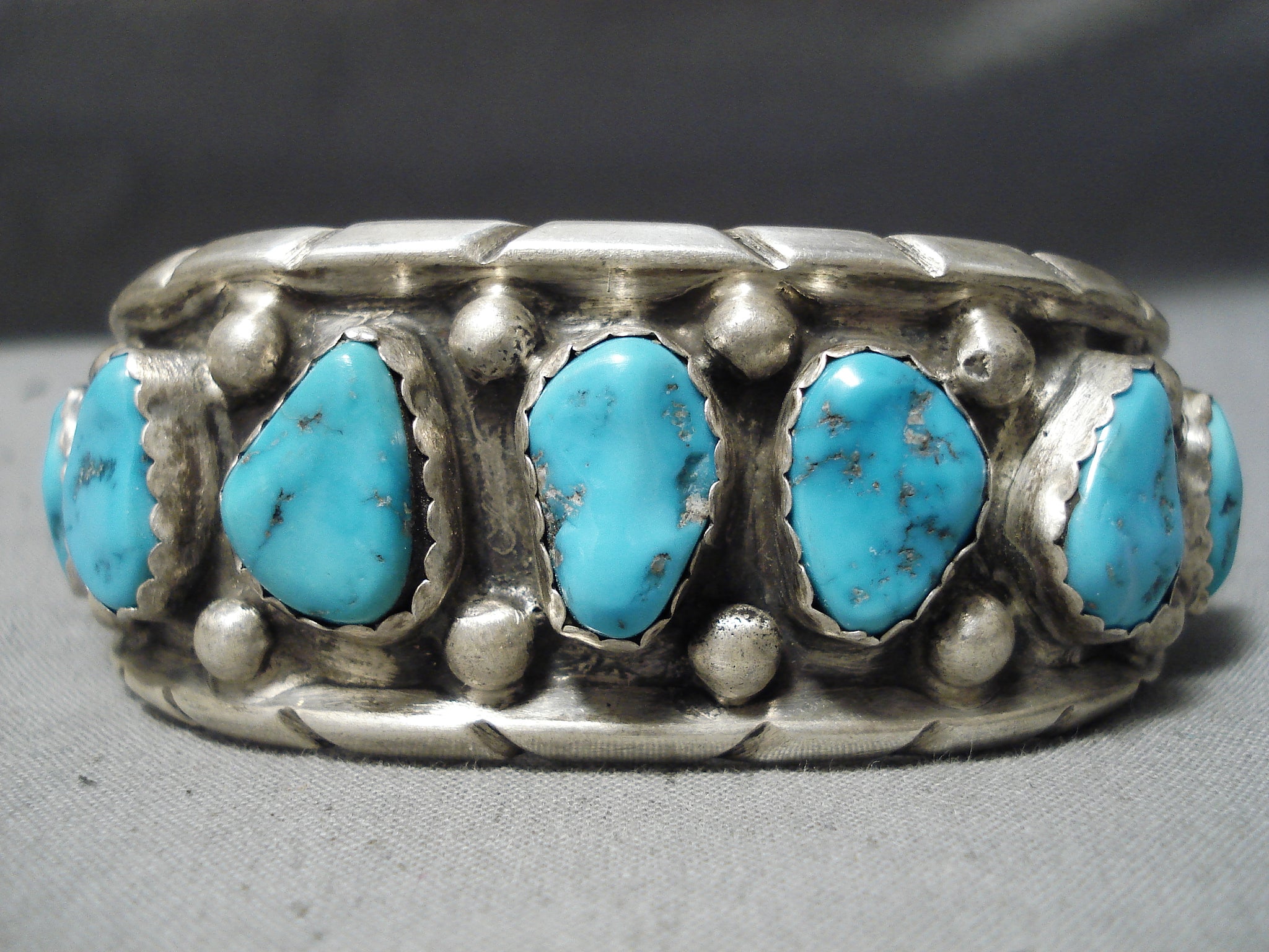 Amazing Vintage Native American Zuni Kingman Turquoise Sterling Silver Bracelet Old