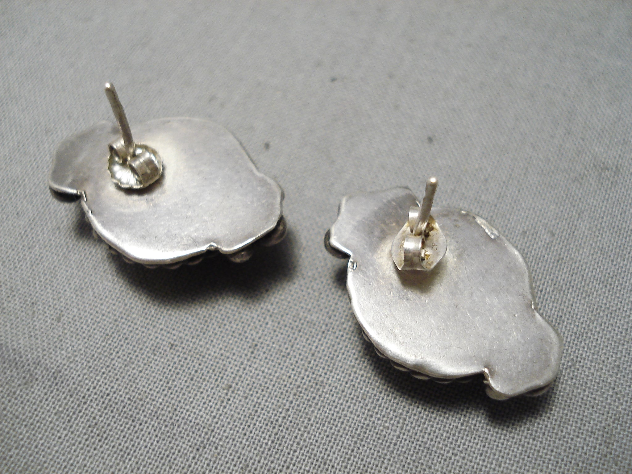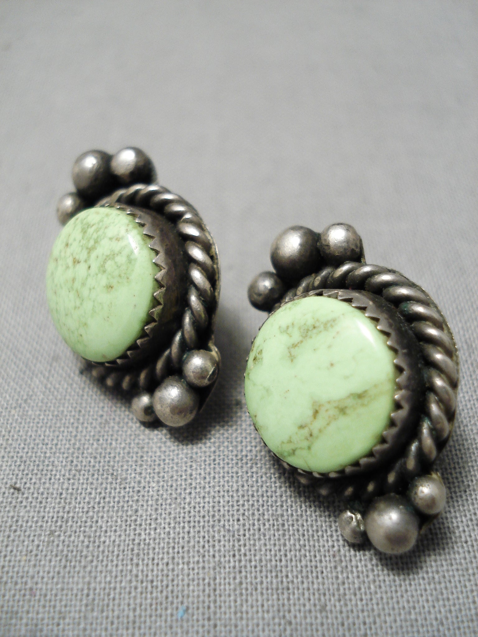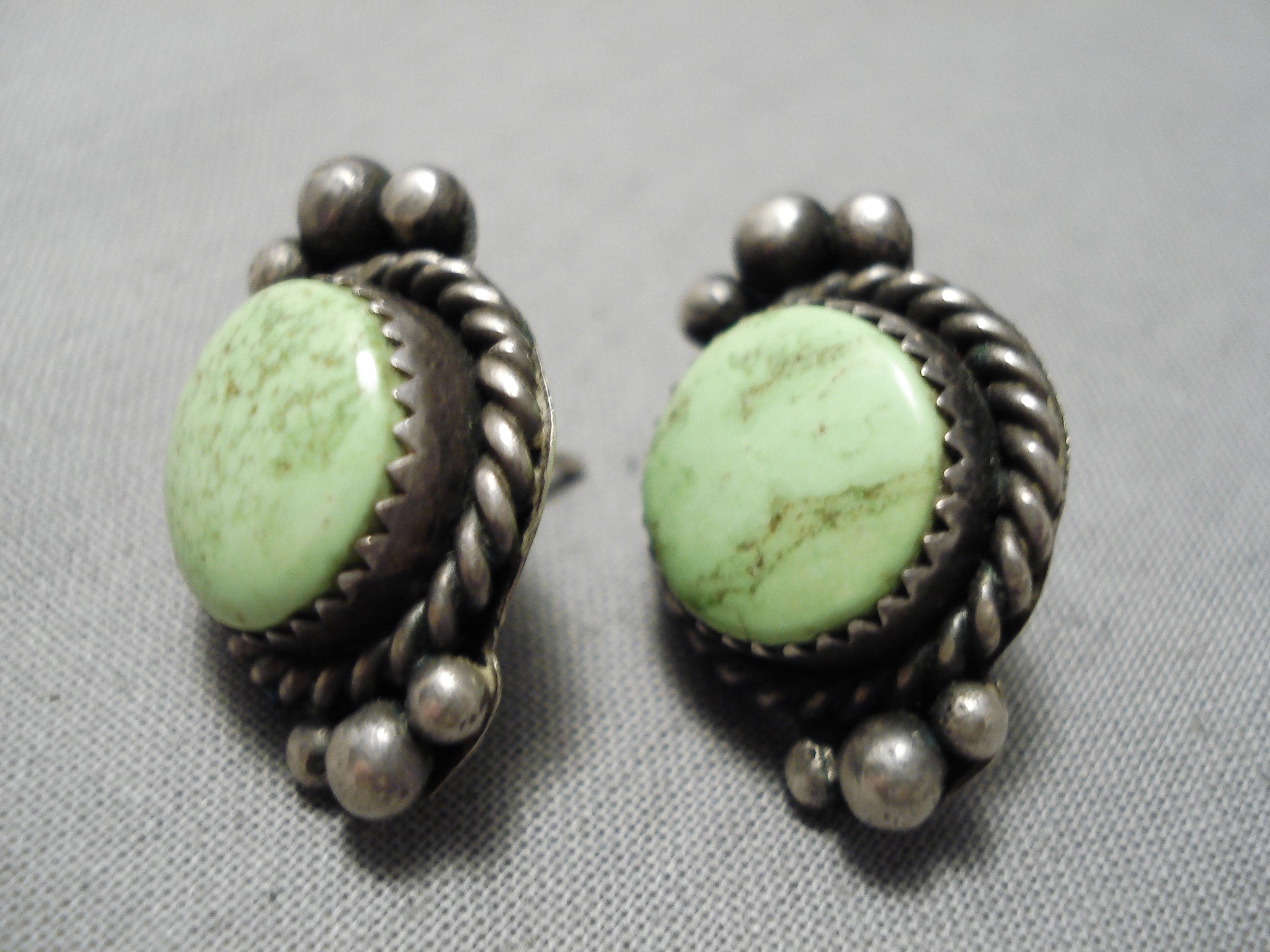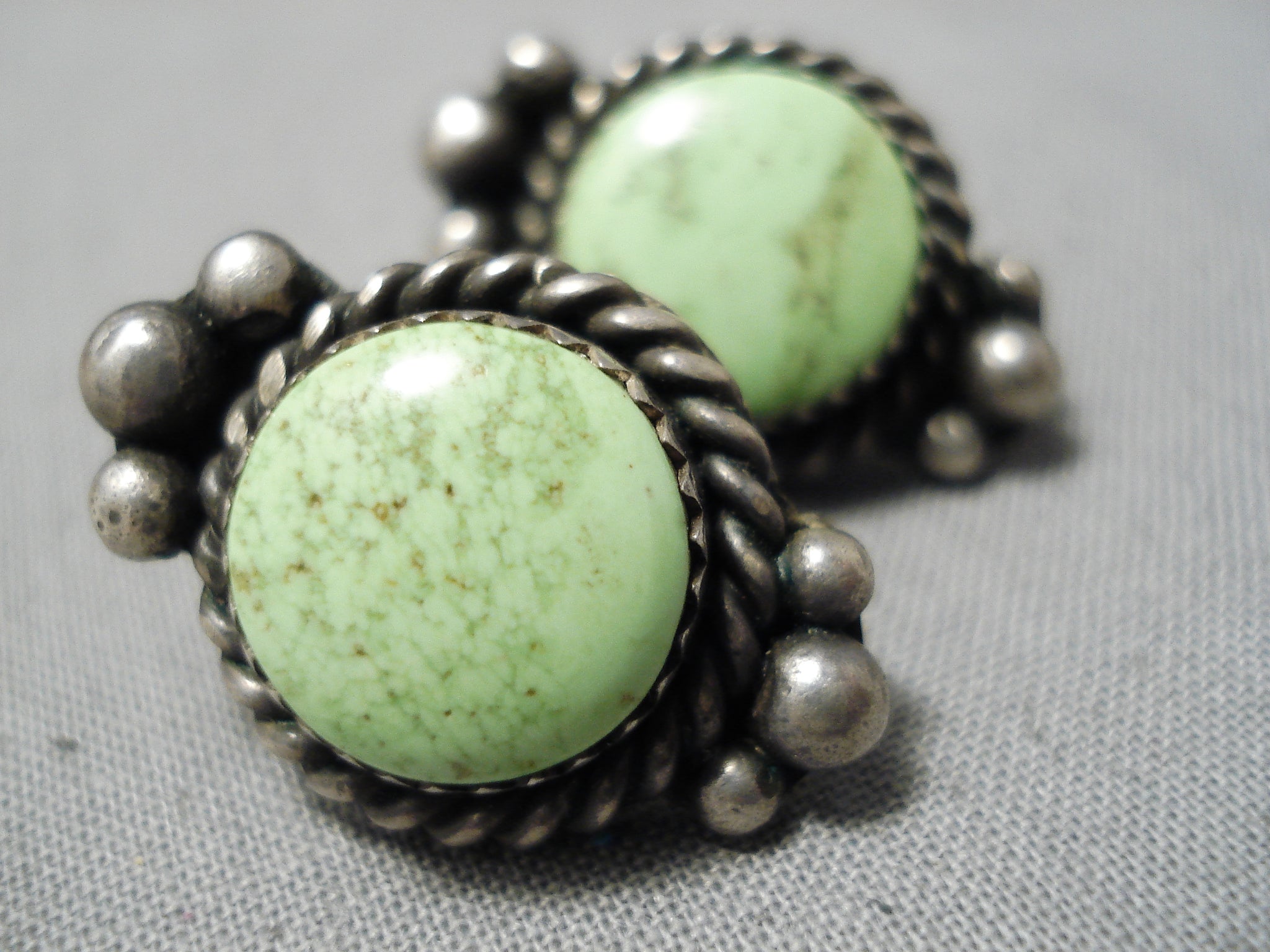 Amazing Vintage Navajo Gaspeite Sterling Silver Native American Earrings Old