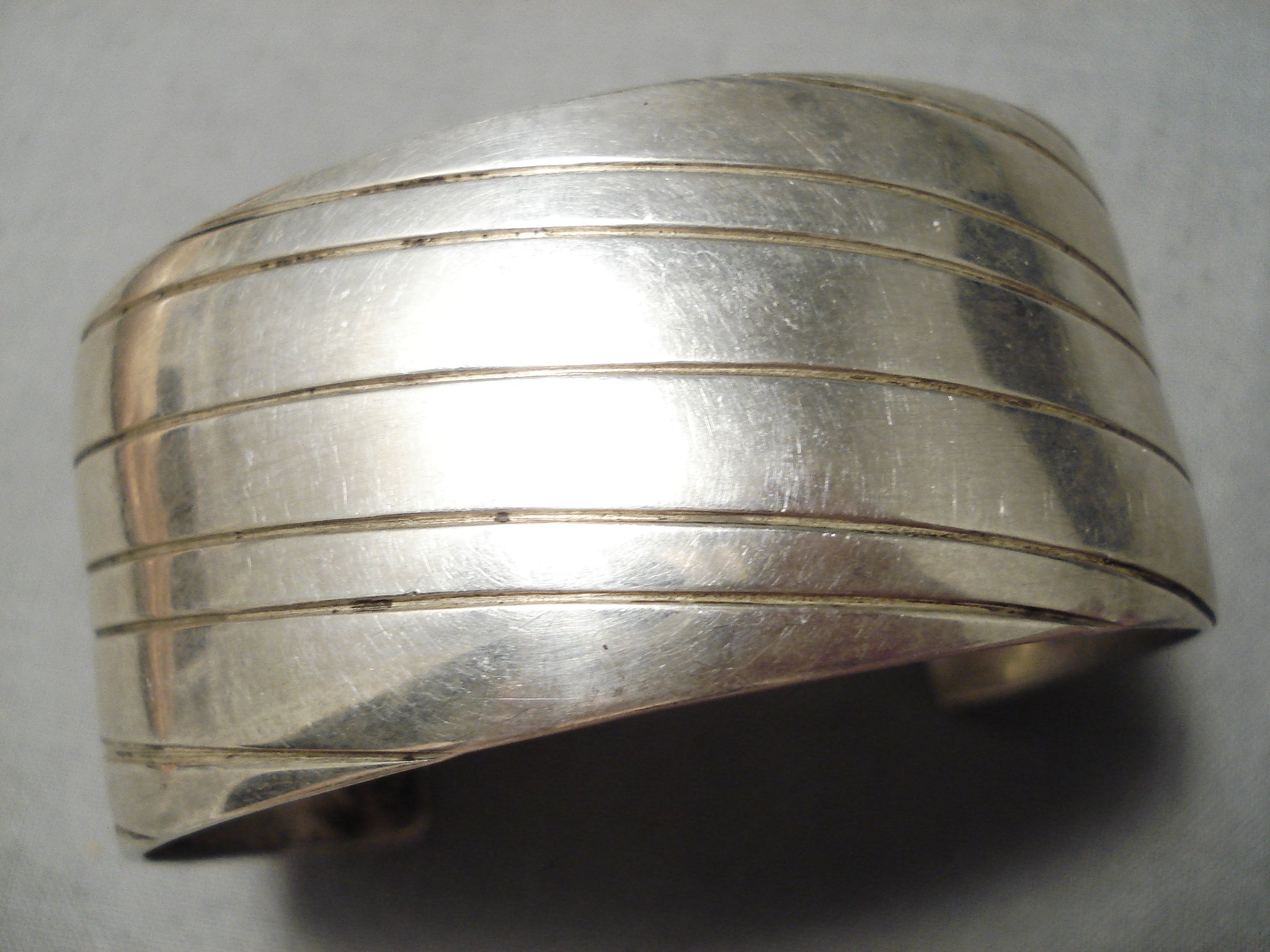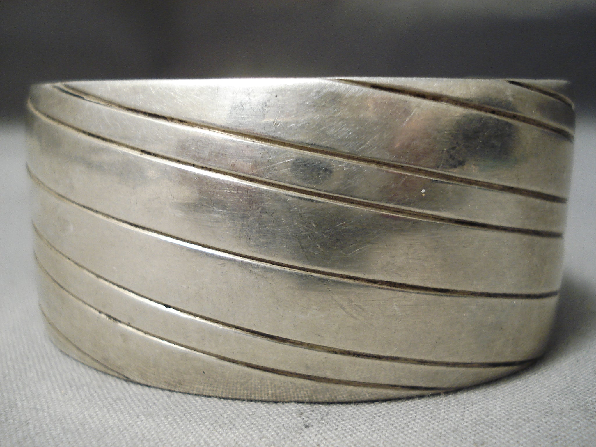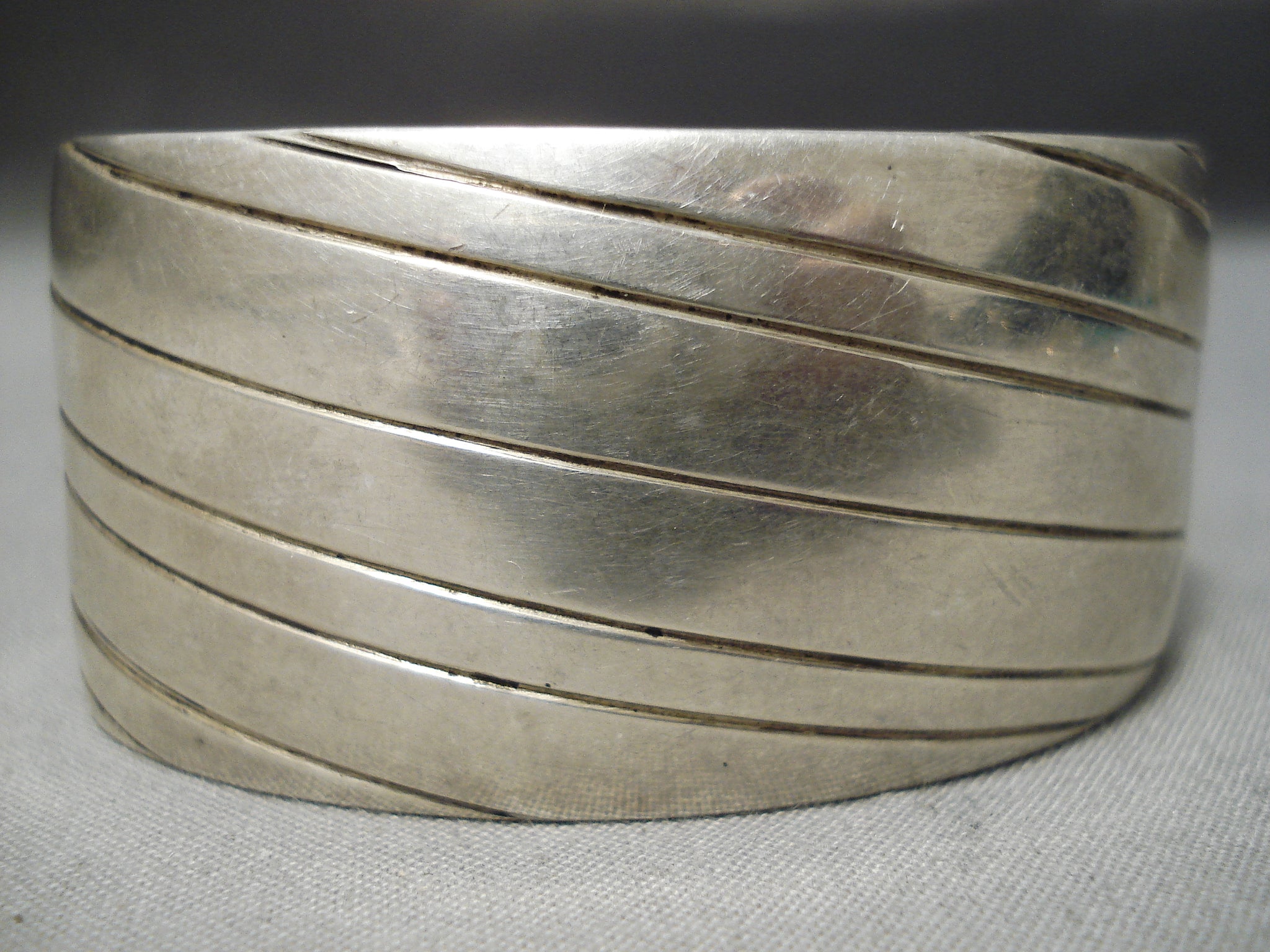 Amazing Vintage Navajo Slanted Channel Sterling Silver Native American Bracelet
