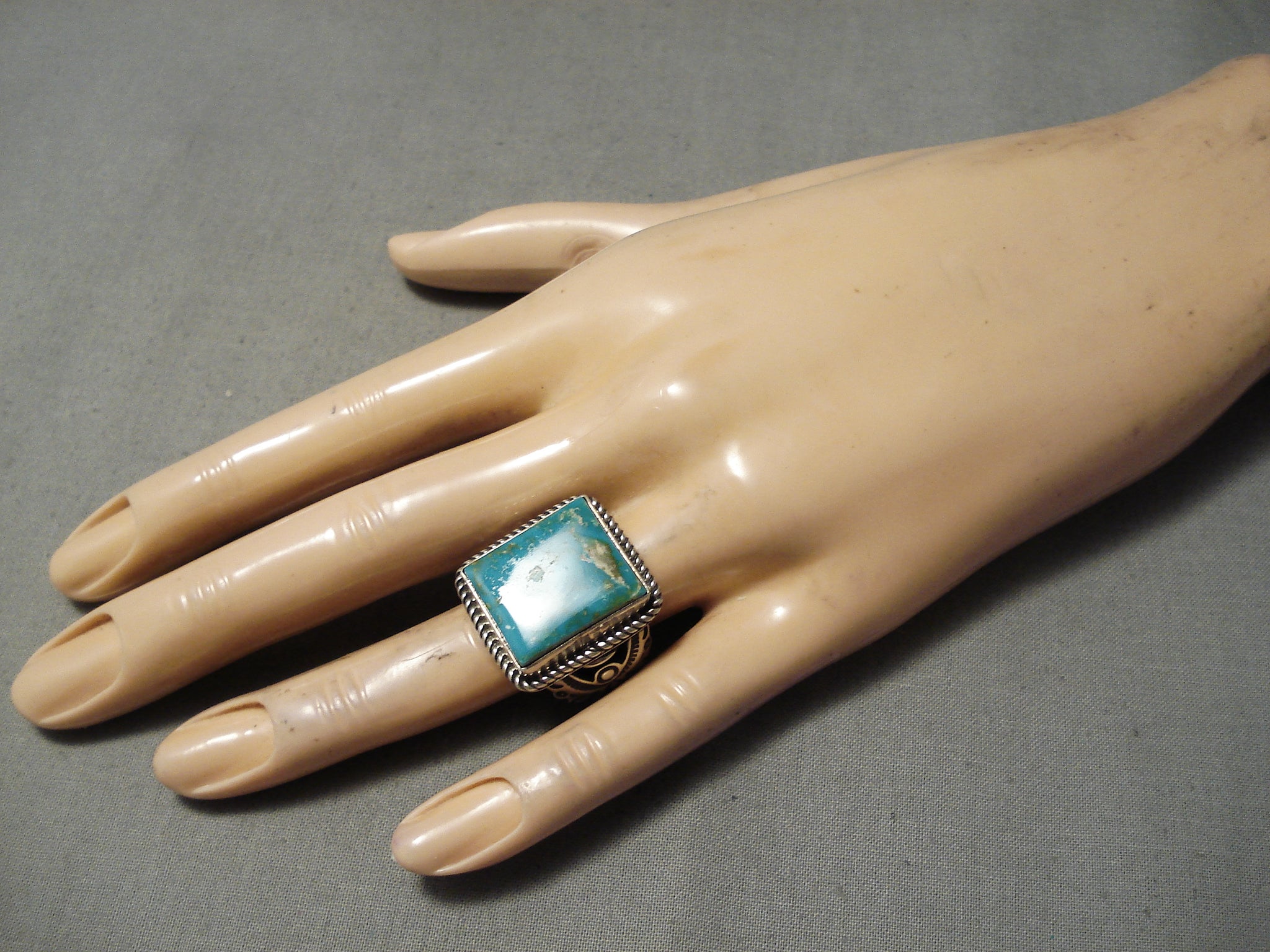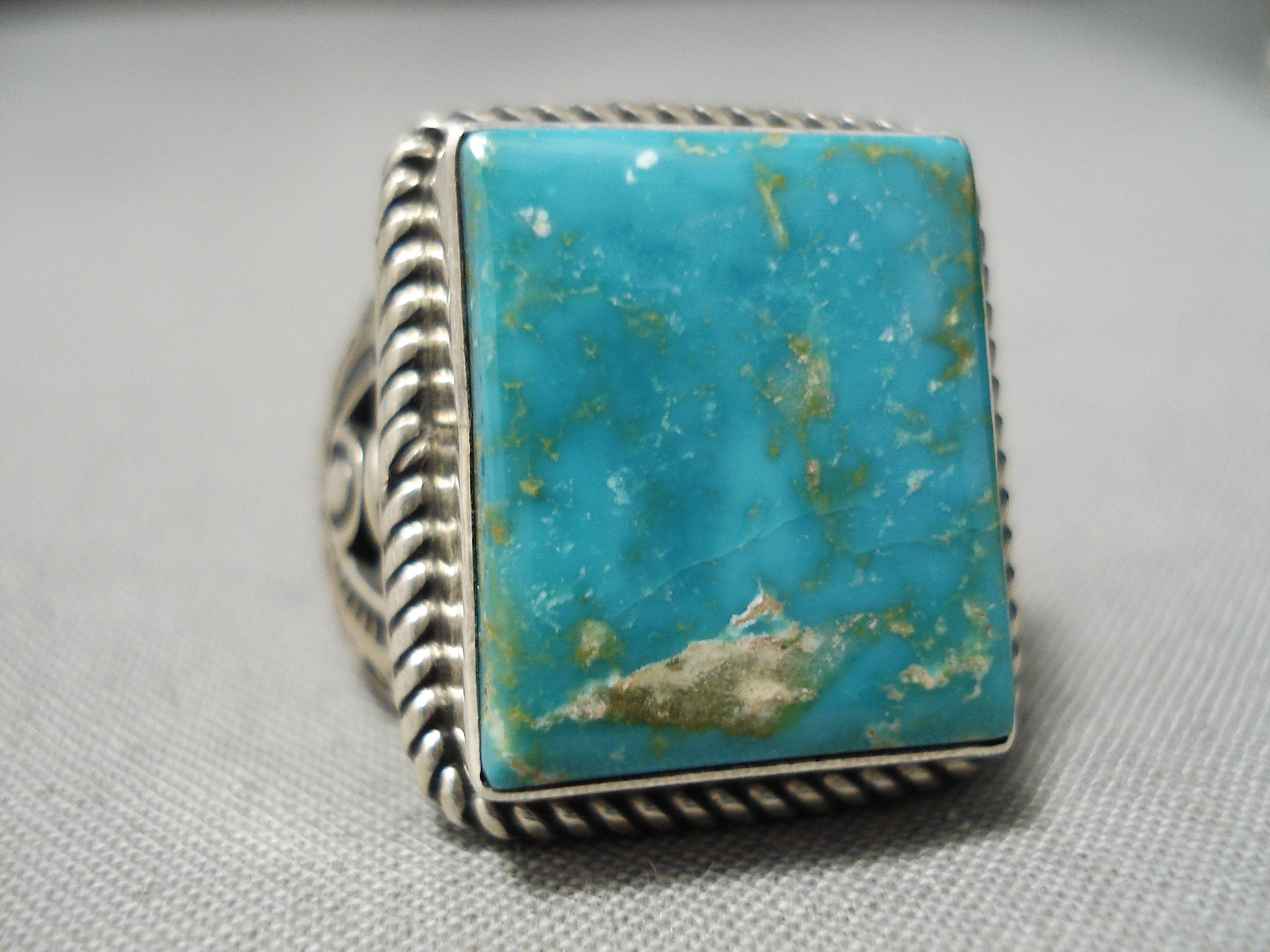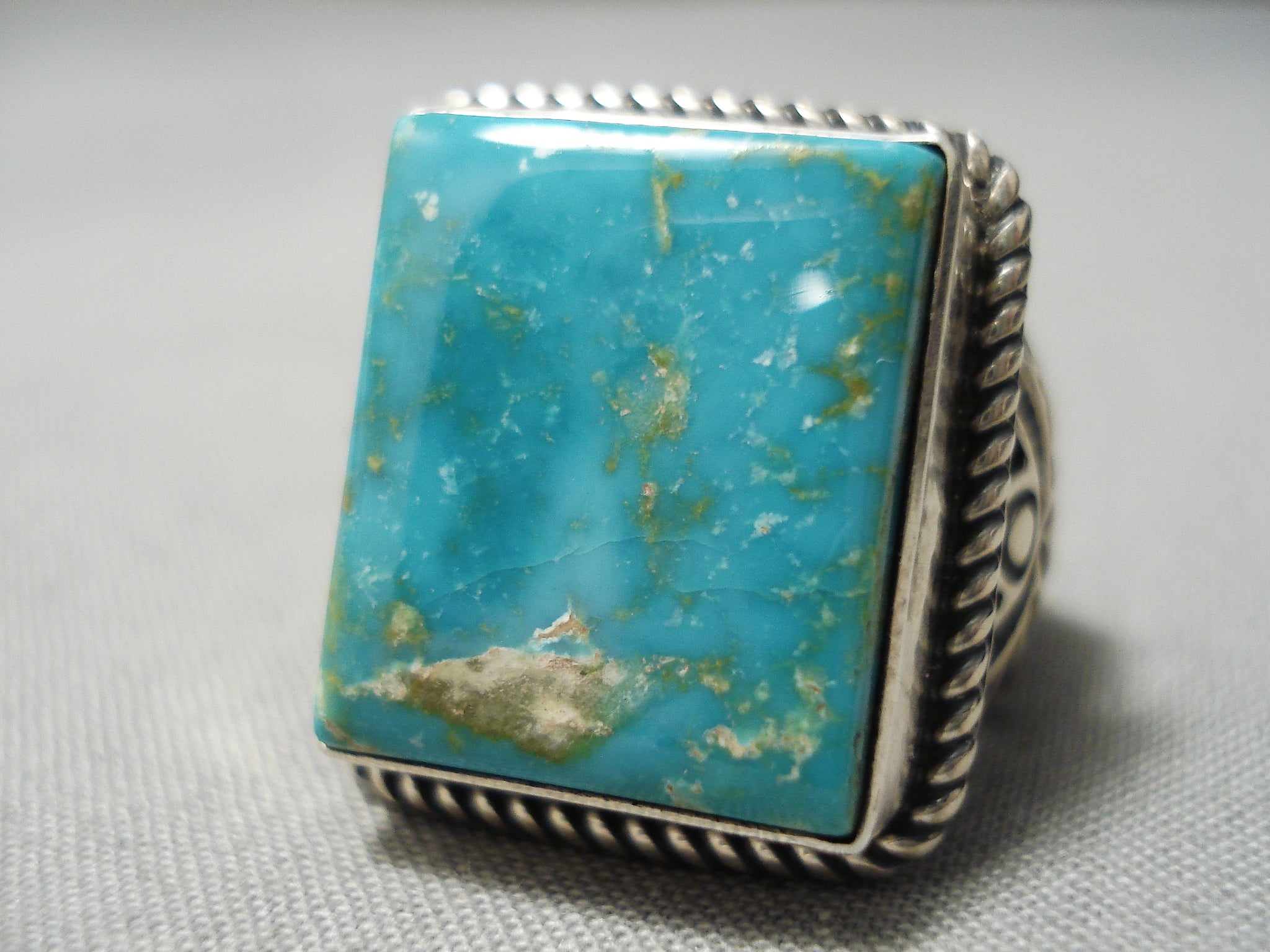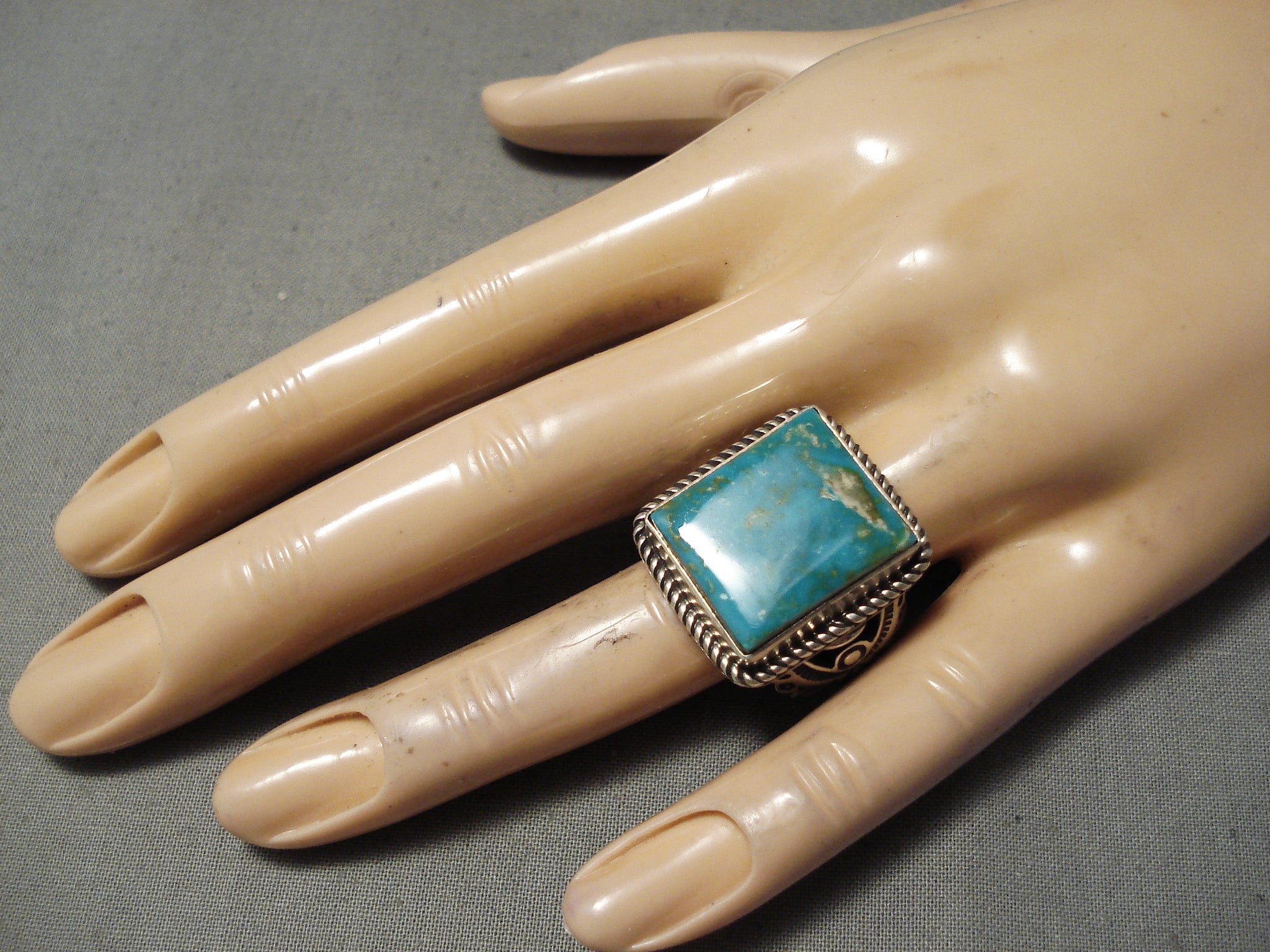Amazing Vintage Navajo Squared Turquoise Sterling Silver Native American Ring