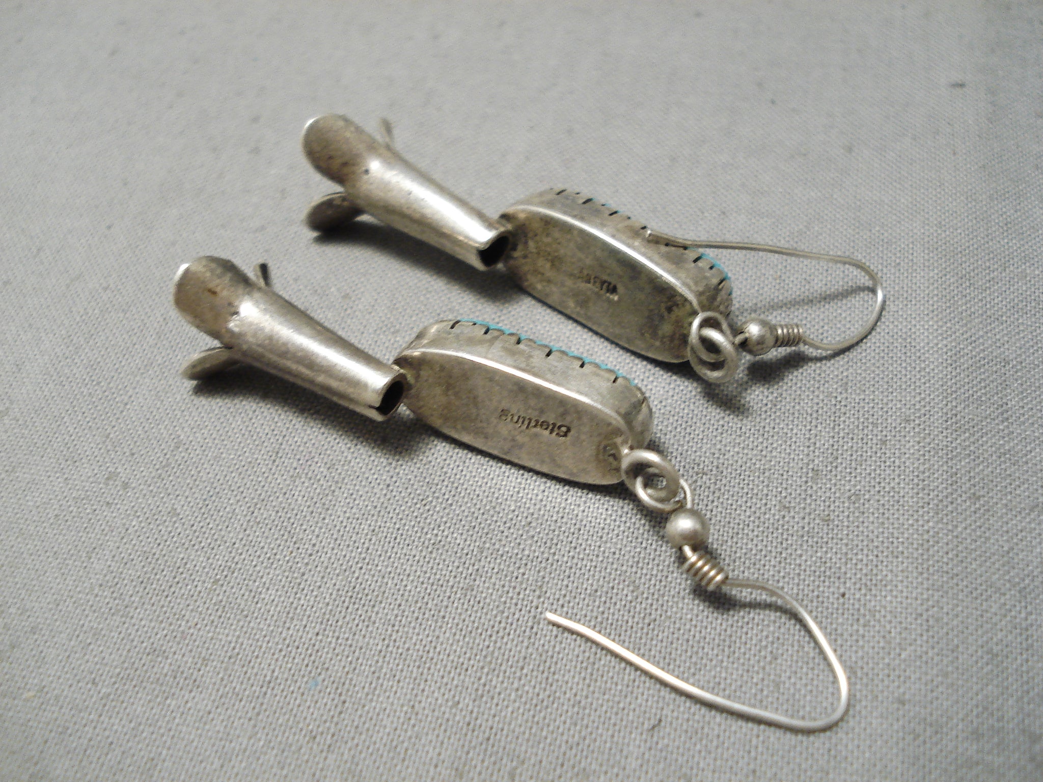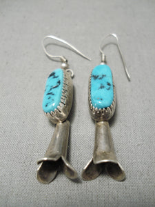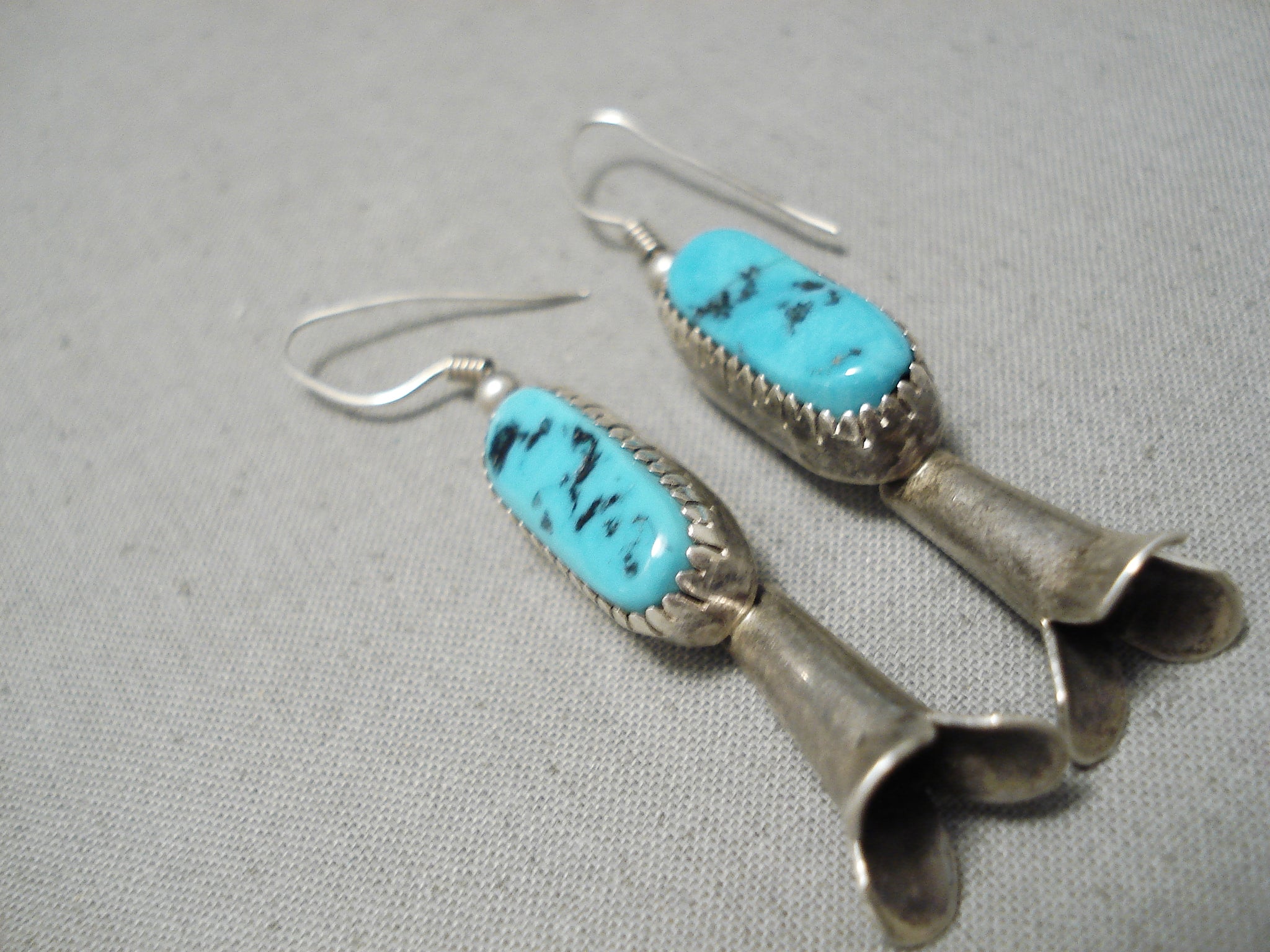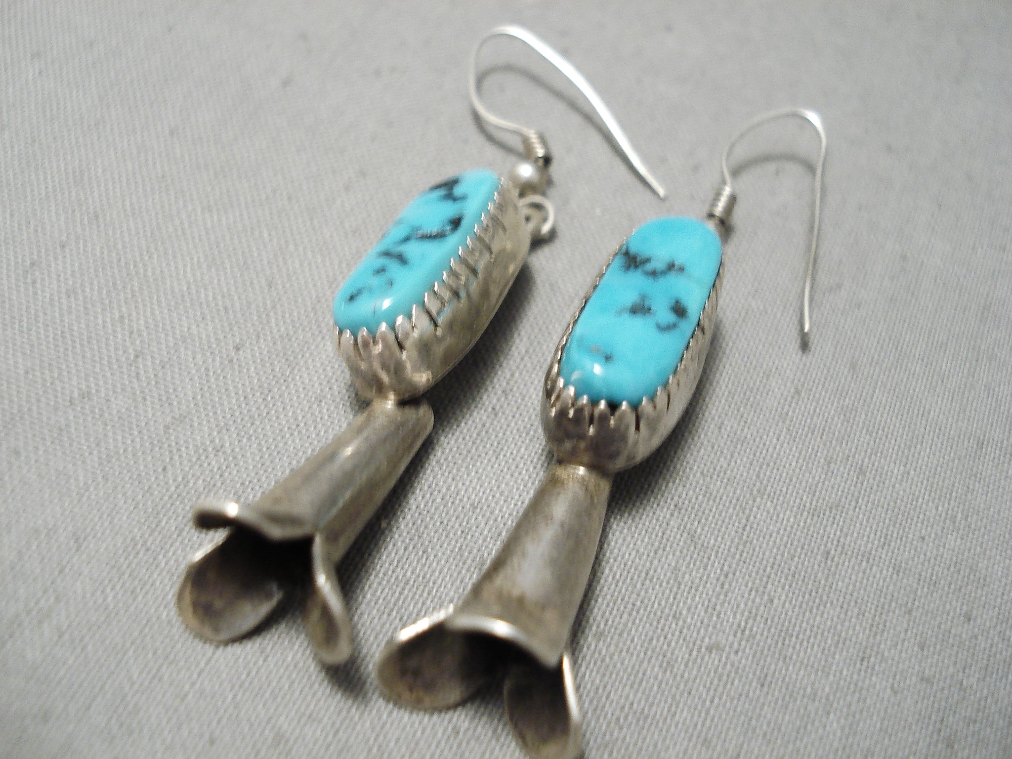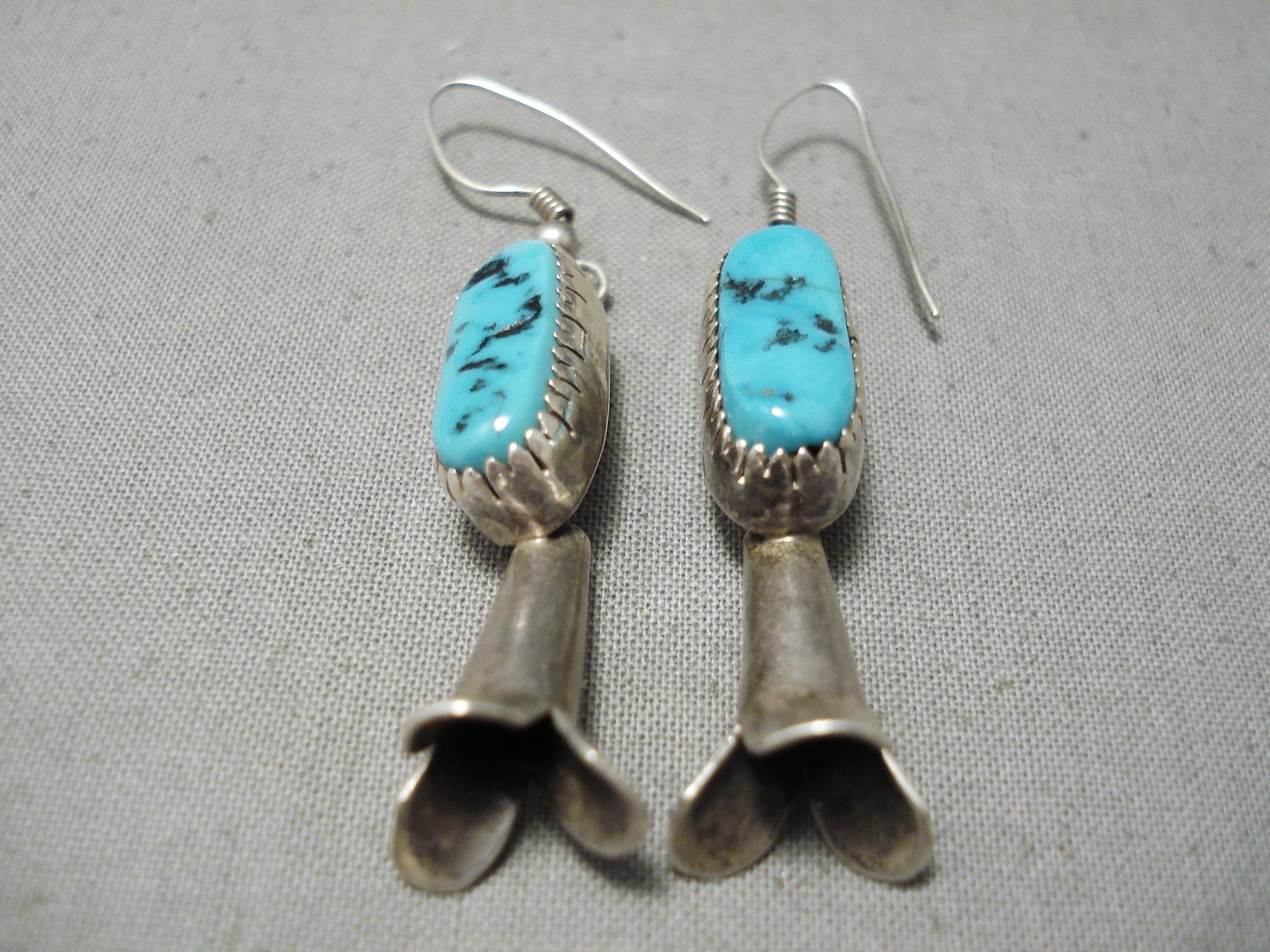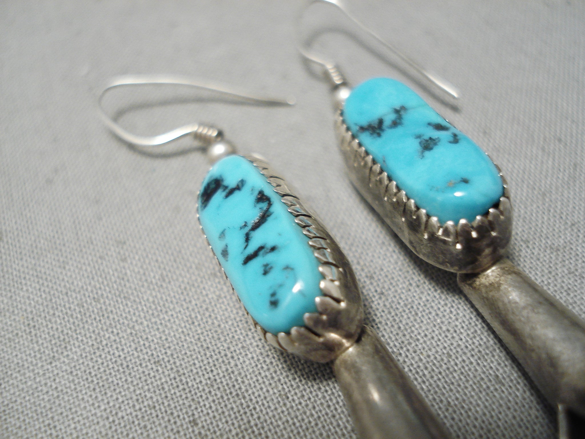 Amazing Vintage Navajo Sterling Silver Long Turquoise Native American Earrings