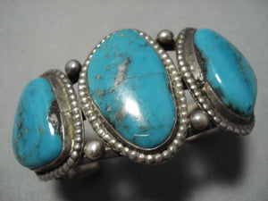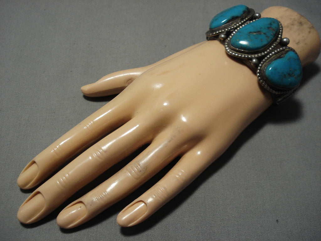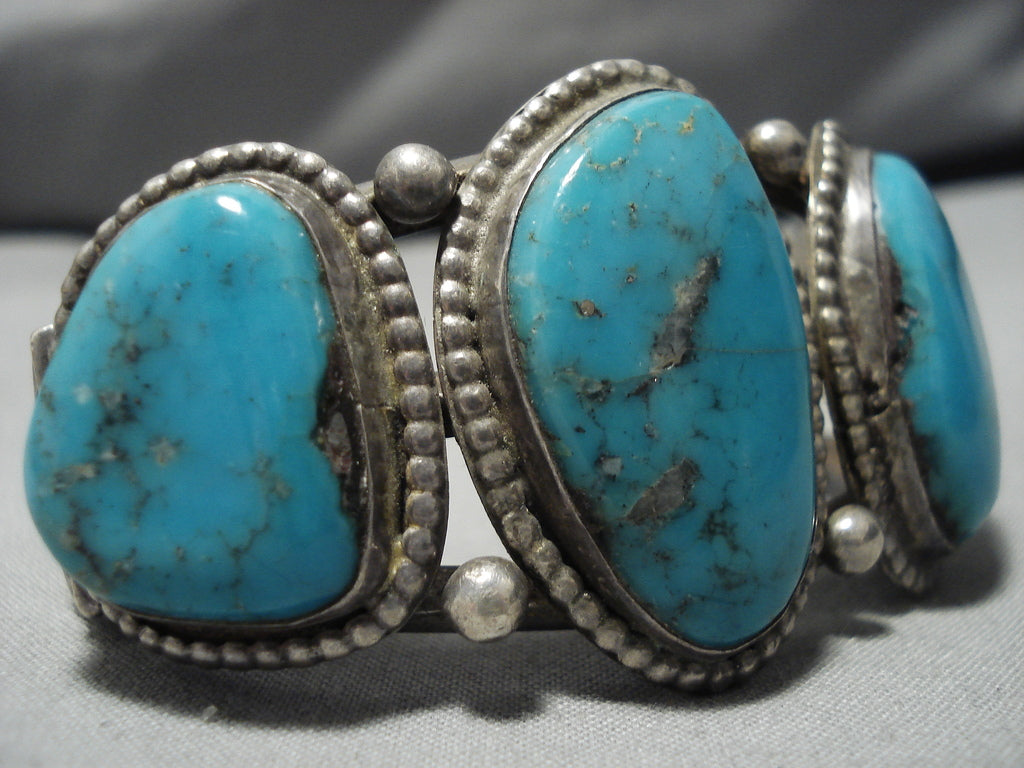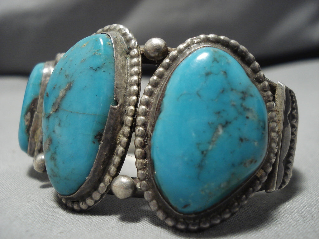 Amazing Vintage Navajo Turquoise Native American Sterling Silver Bracelet Old