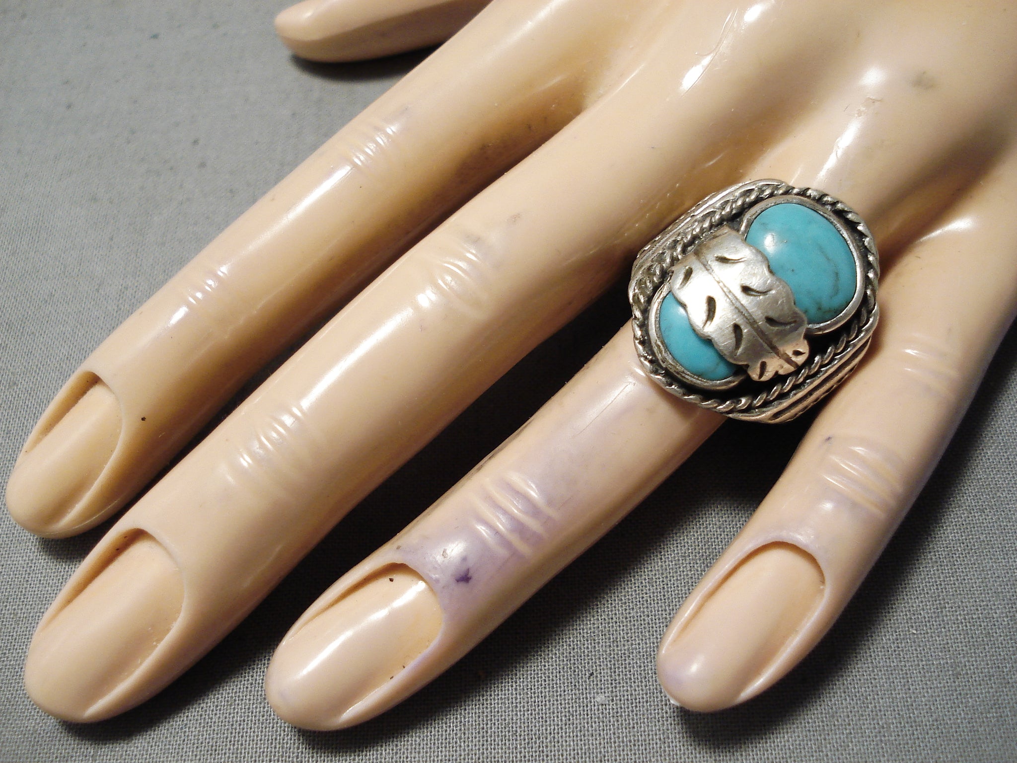 Amazing Vintage Navajo Turquoise Sterling Silver Ring Native American Old