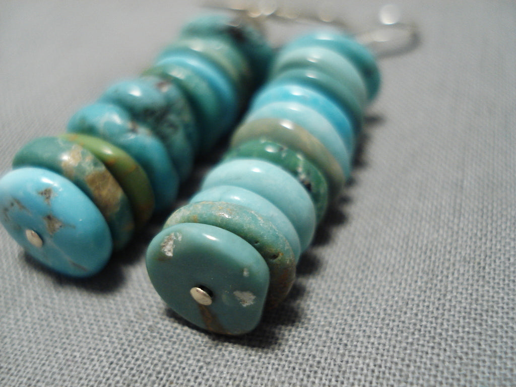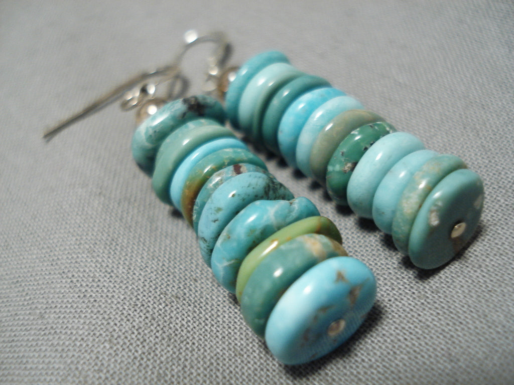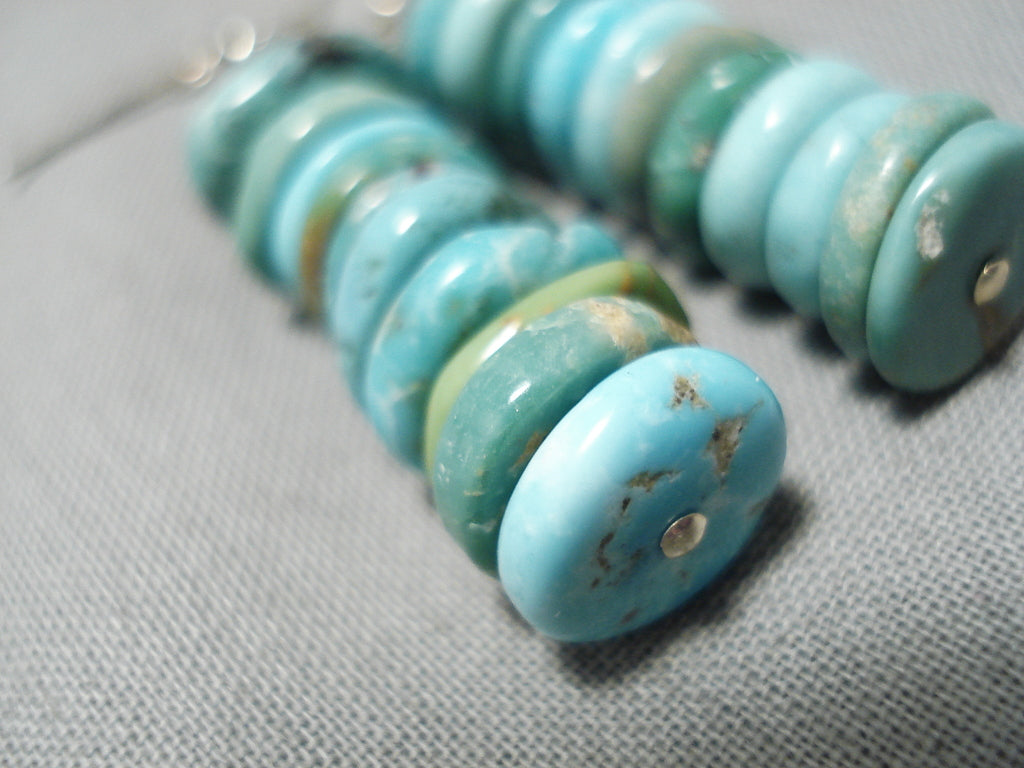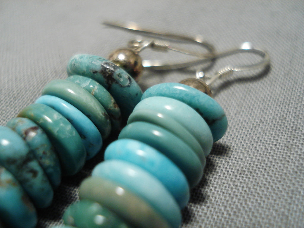 Amazing Vintage Santo Domingo Native American Navajo Turquoise Disc Sterling Silver Earrings