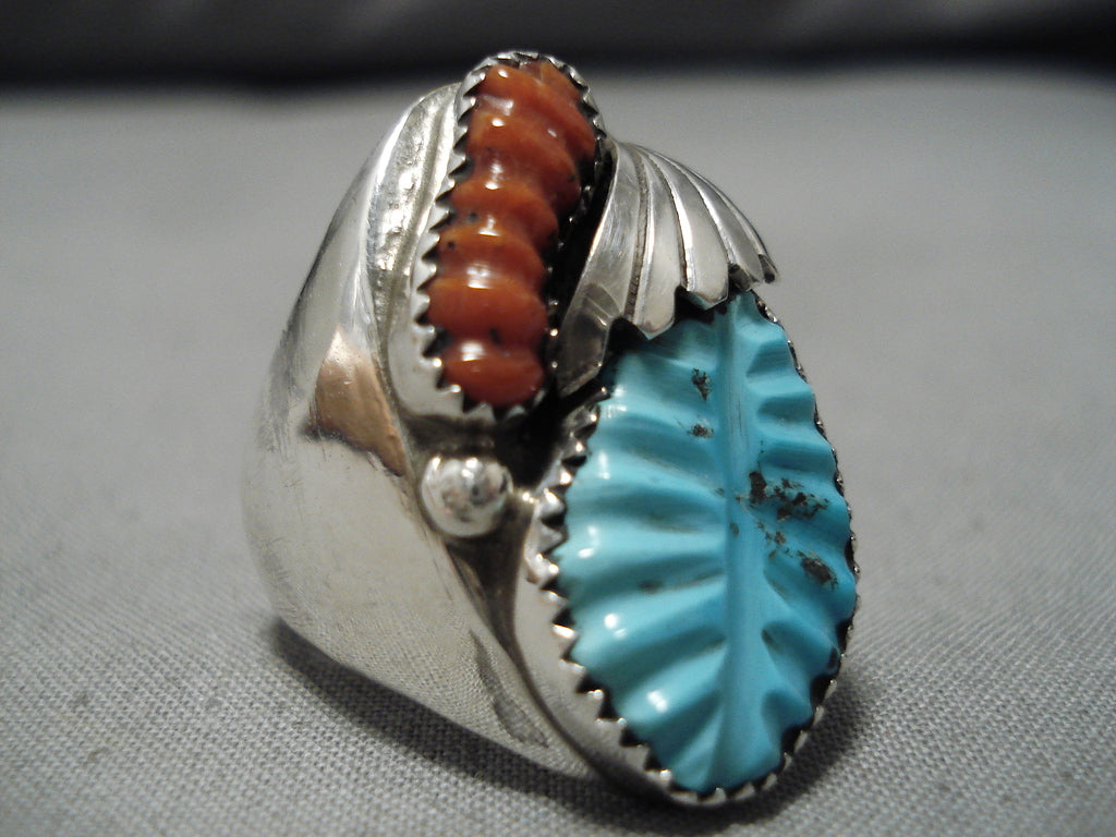 Amazing Vintage Zuni Native American Large Carved Turquoise Sterling Silver Ring