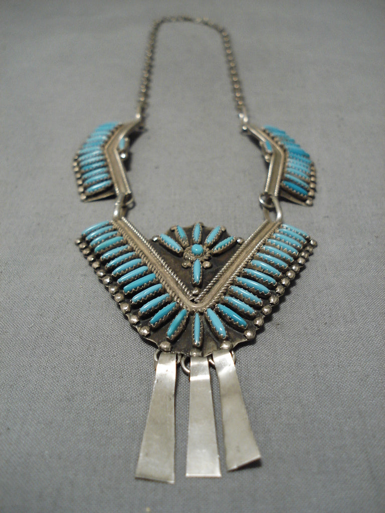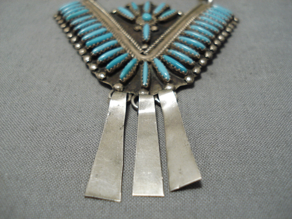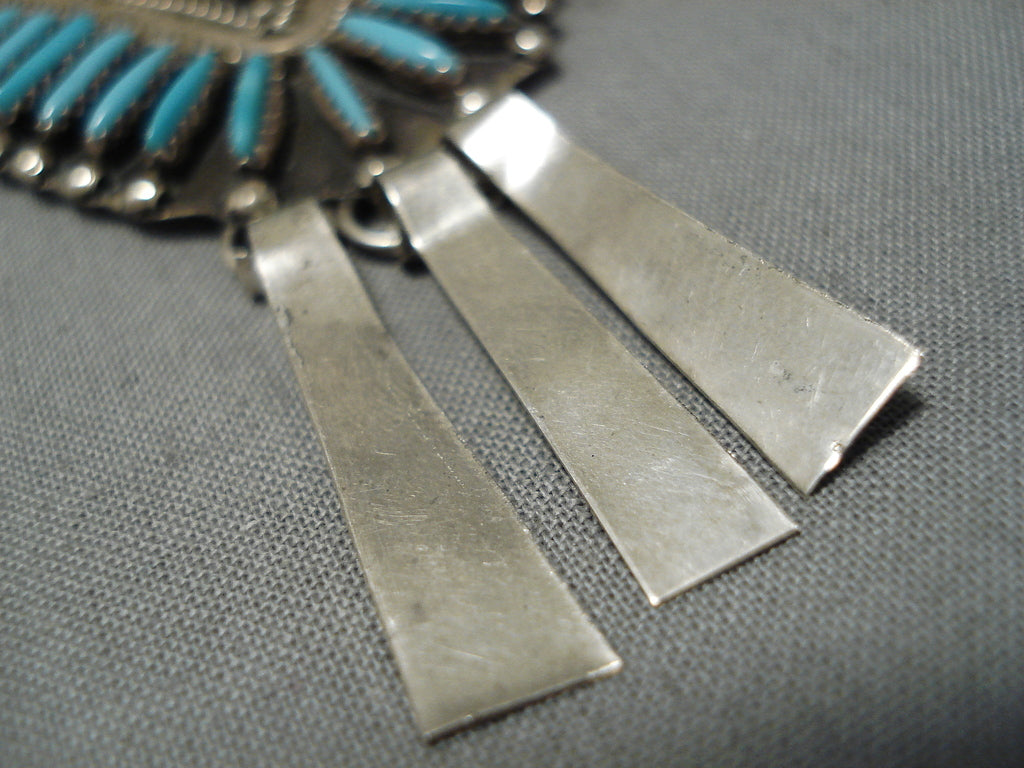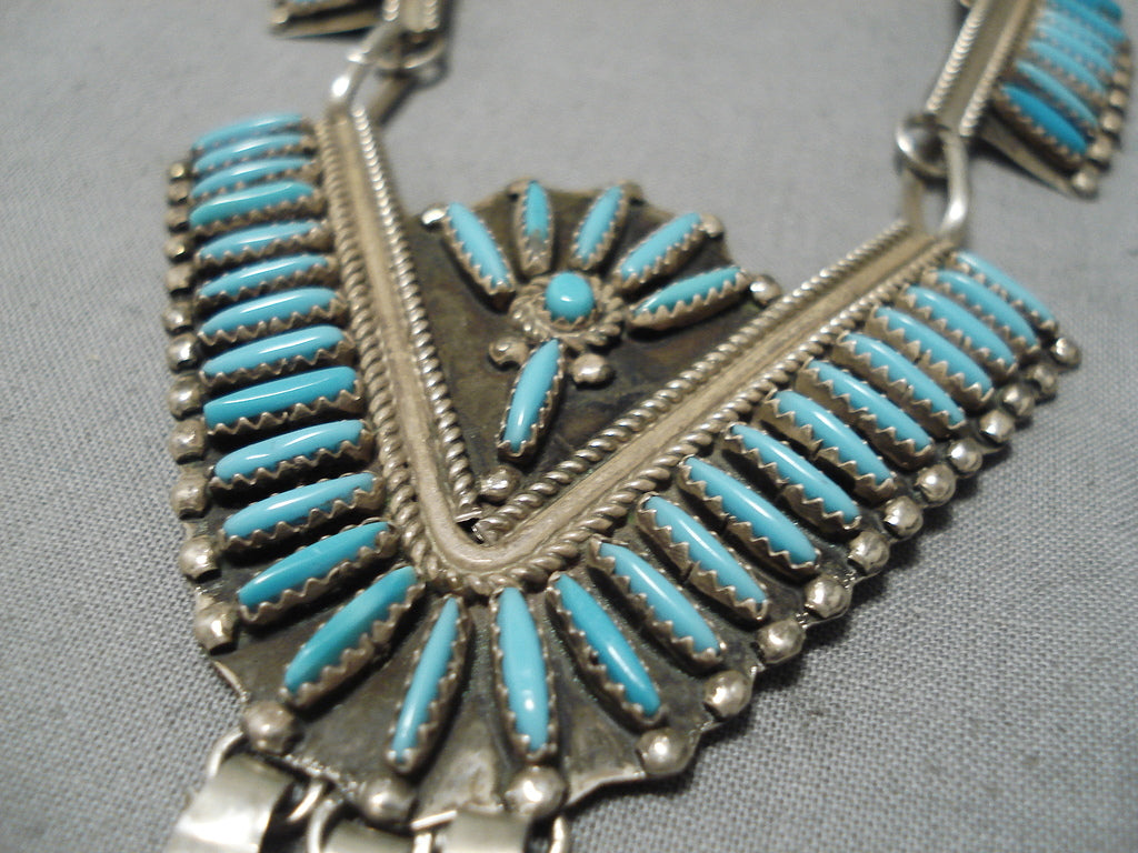 Amazing Vintage Zuni Native American Turquoise Sterling Silver Necklace