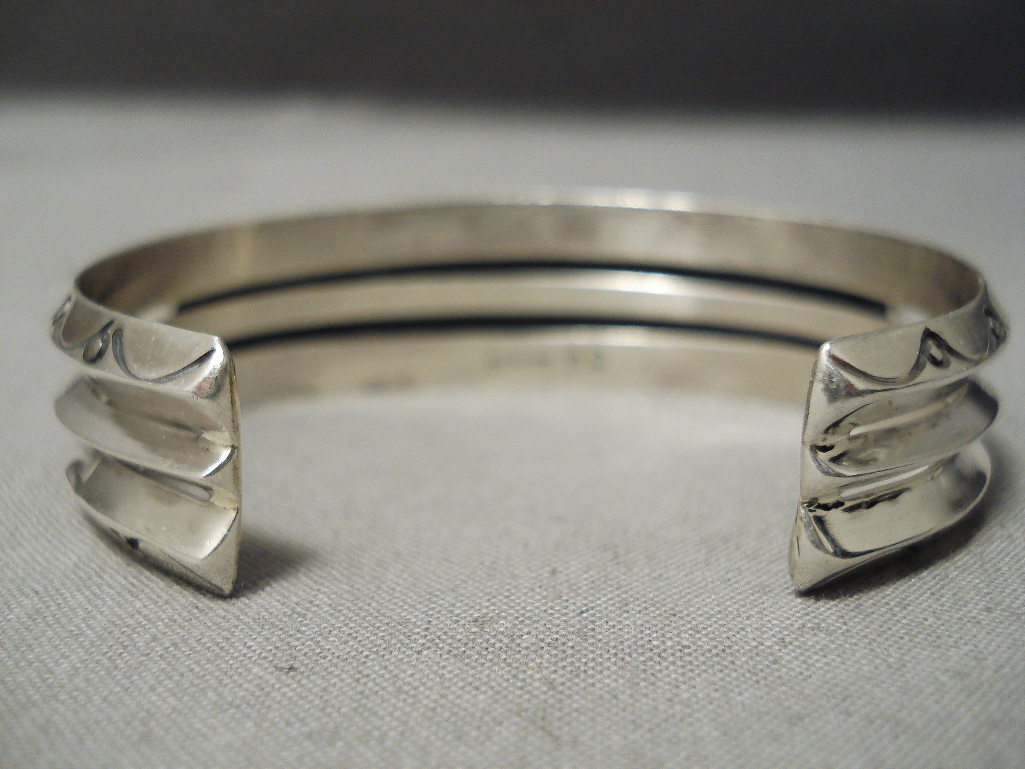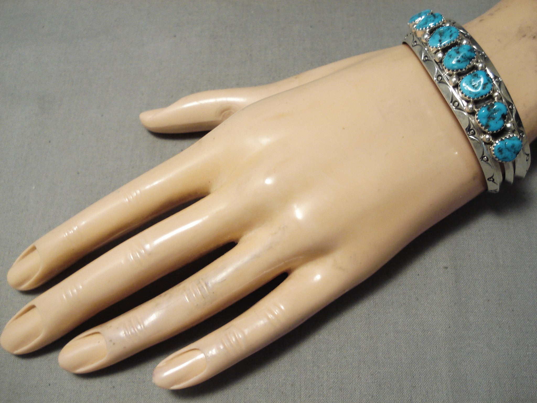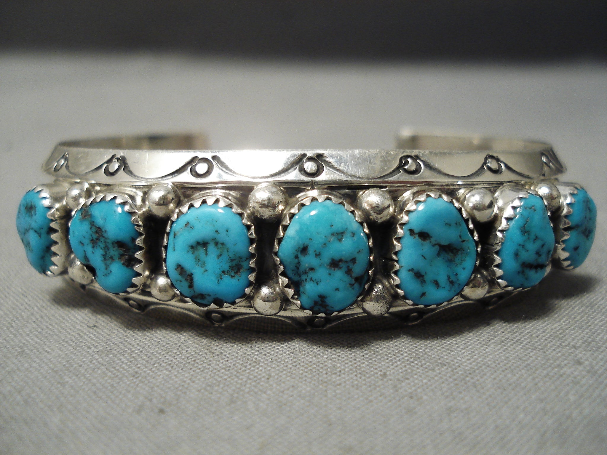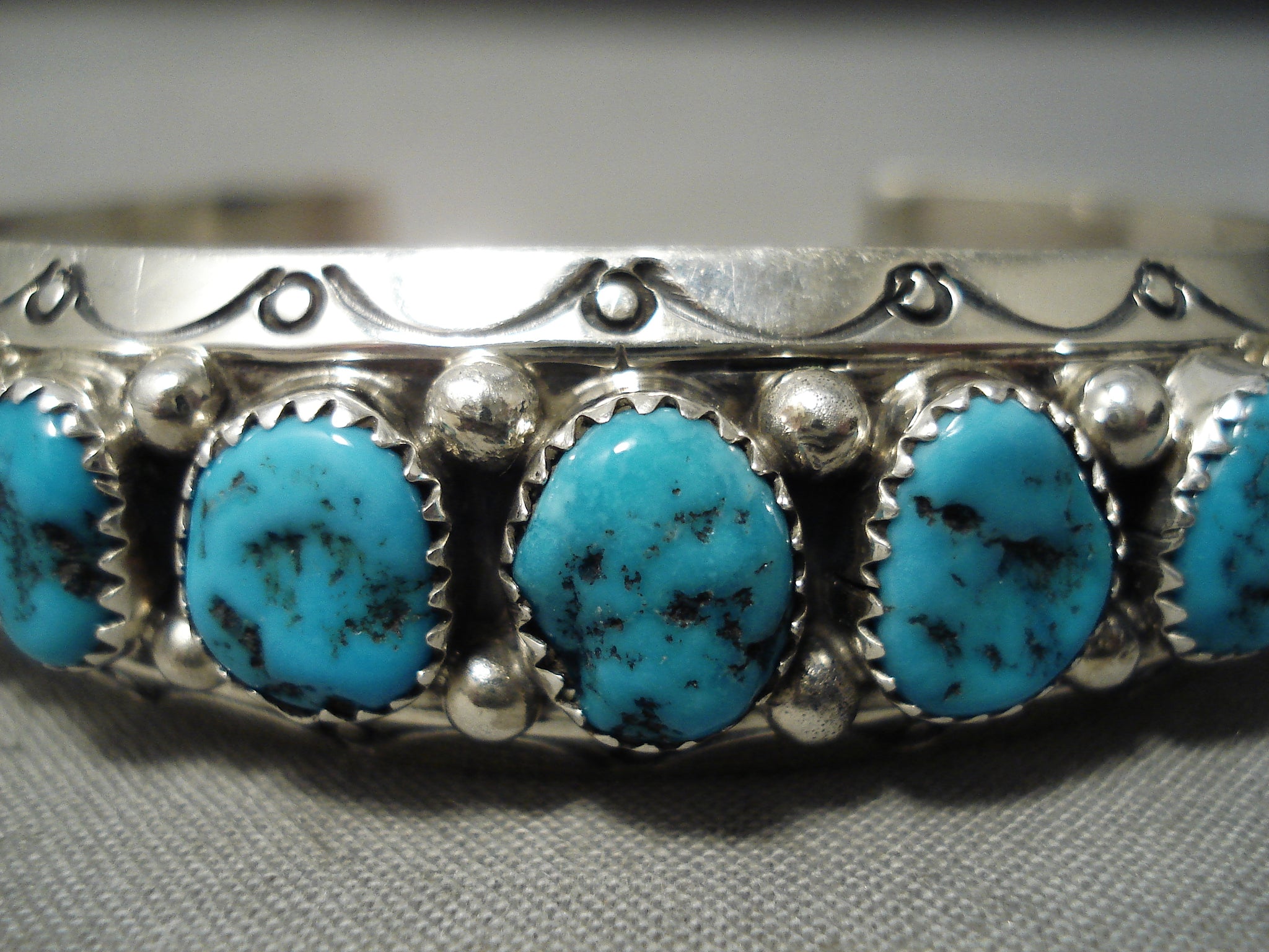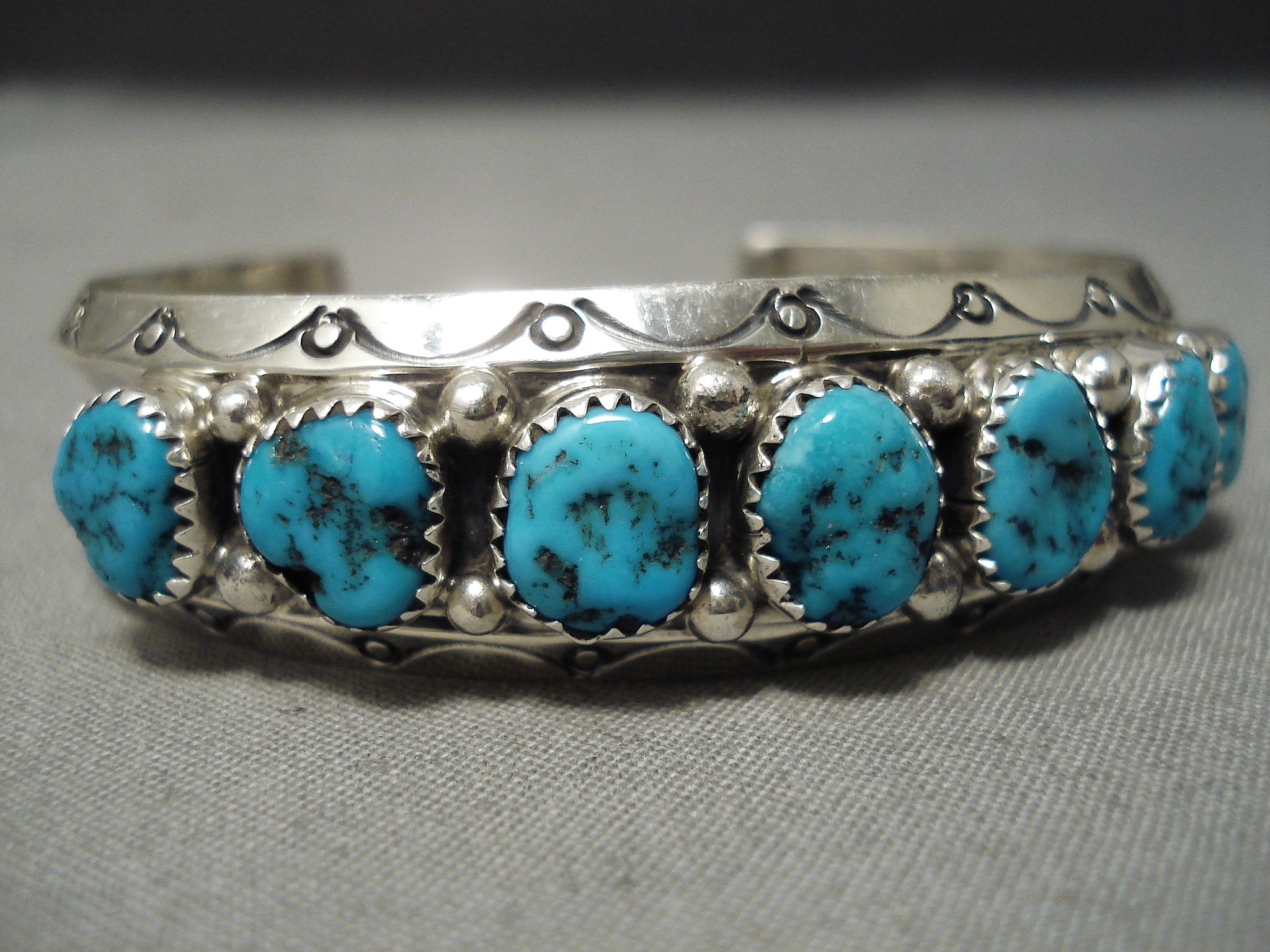 Amazing Vintage Zuni Native American Turquoise Sterling Silver Wave Bracelet