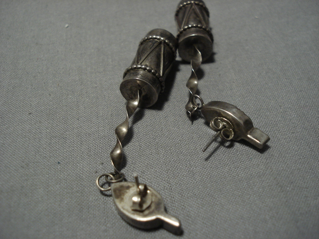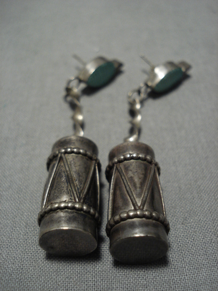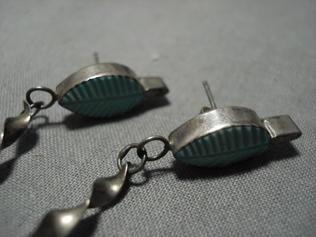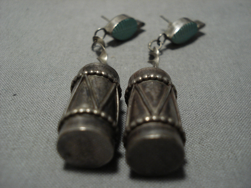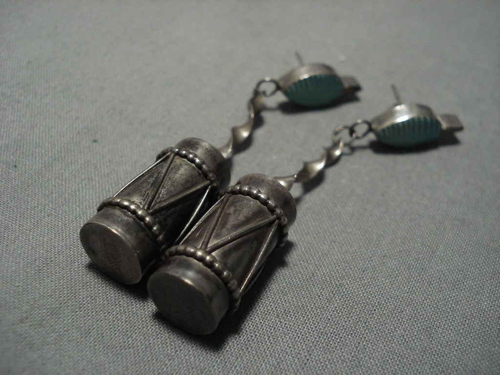 Amazing Vintage Zuni Sterling Silver Native American Turquoise Earrings