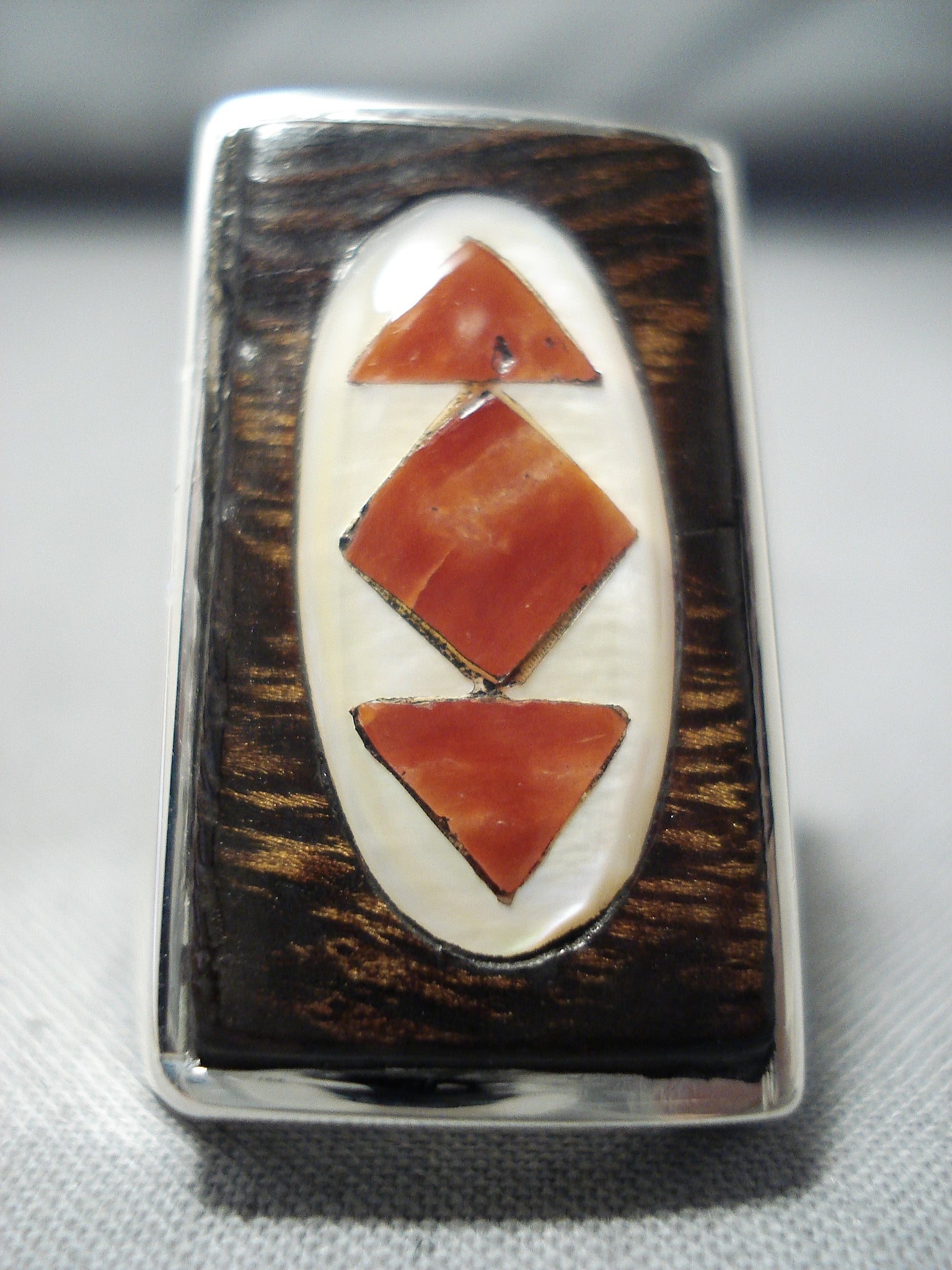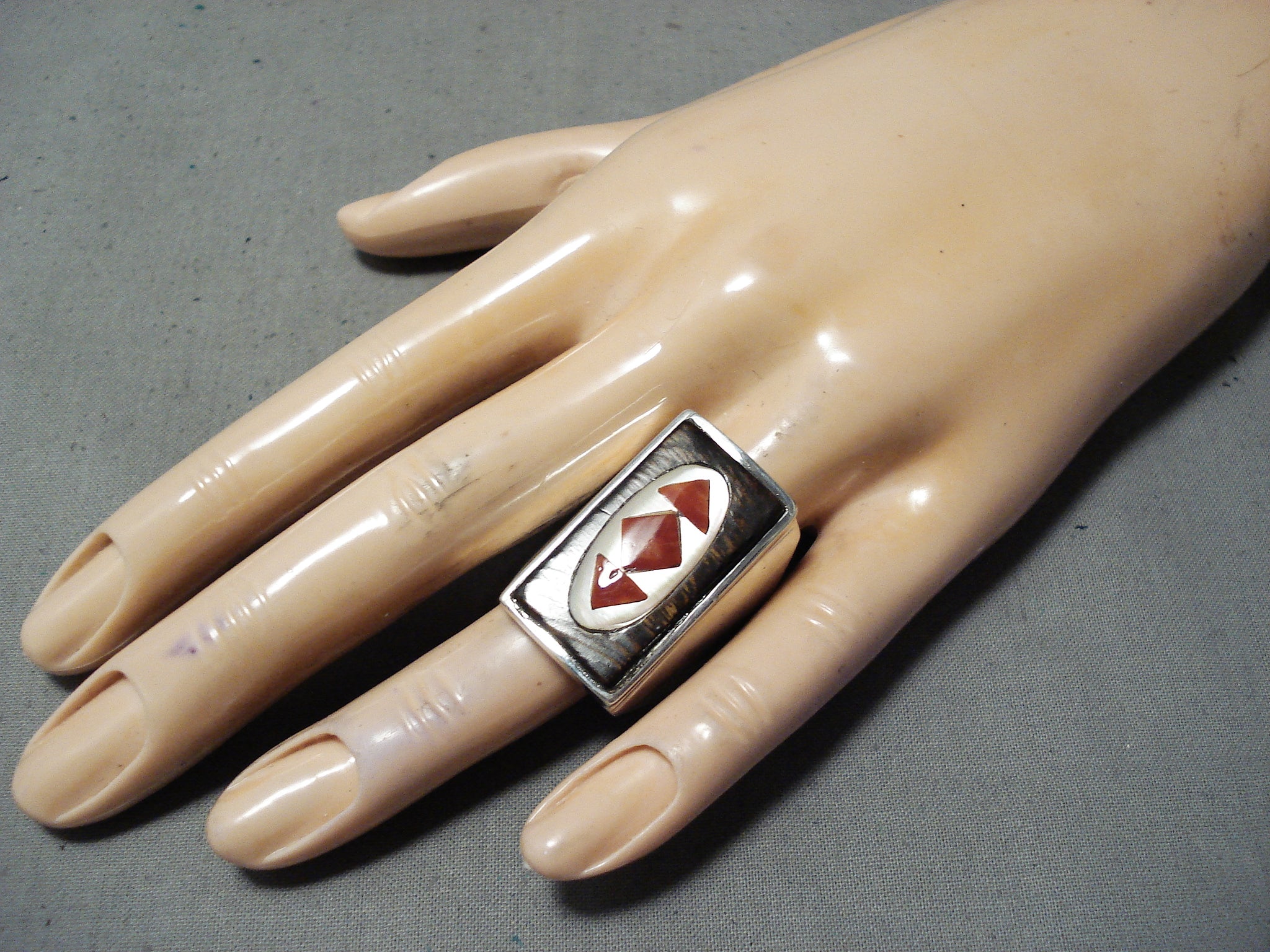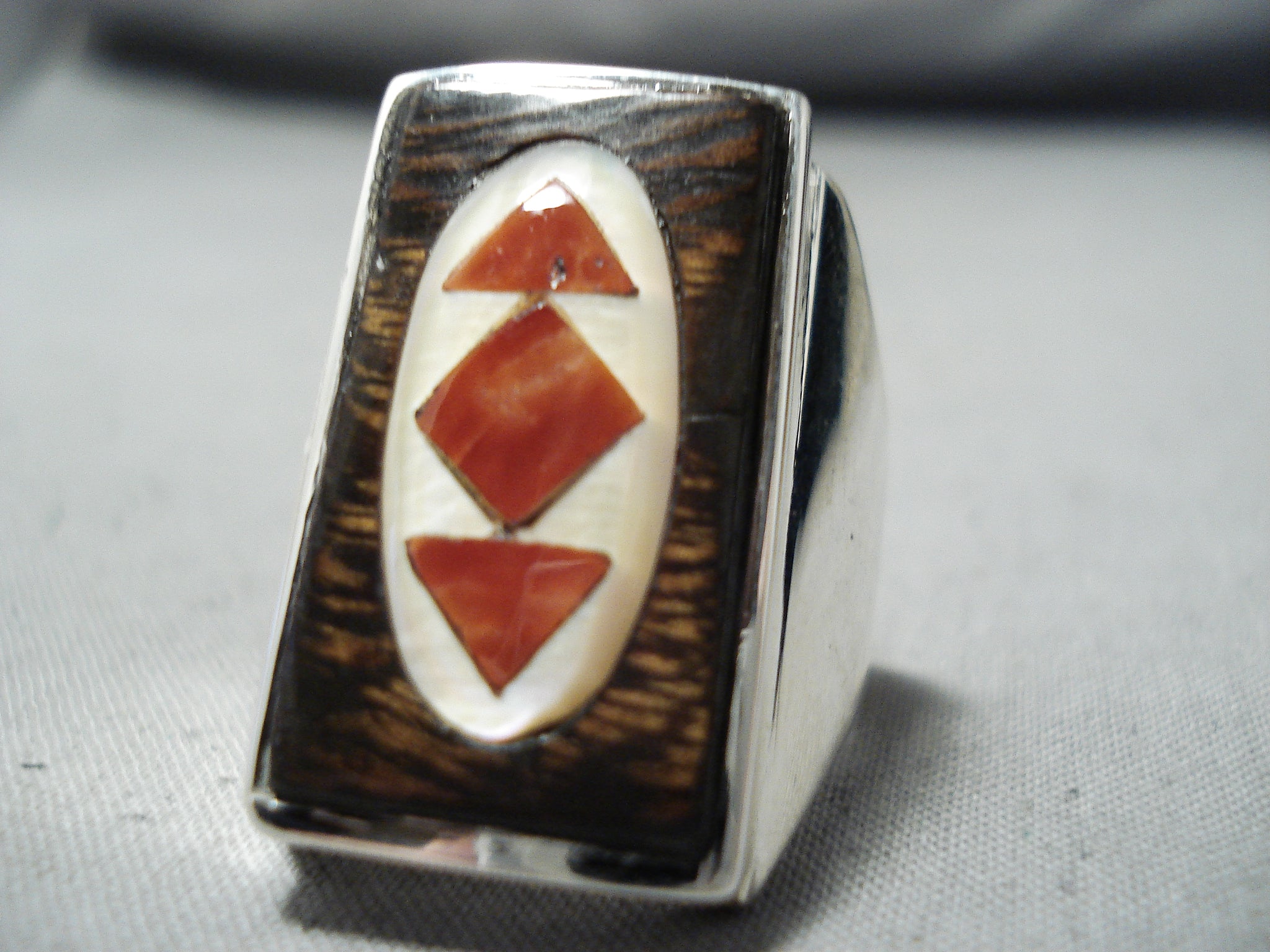 Amazing Zuni Native American Coral Ironwood Sterling Silver Ring