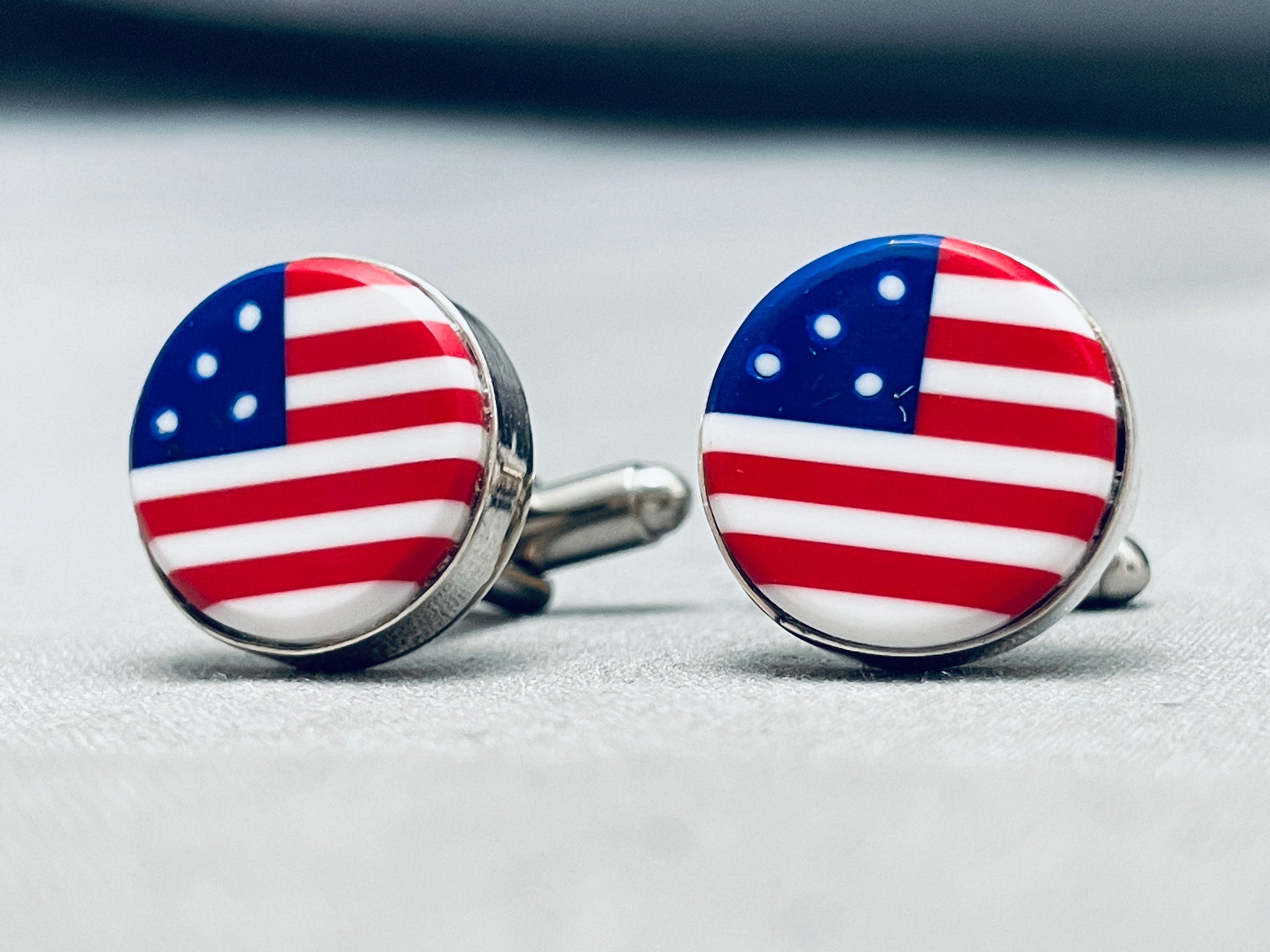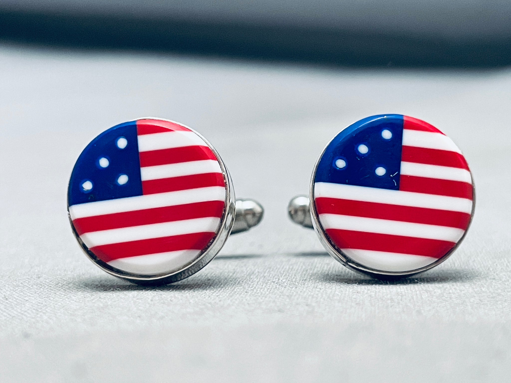 American Flag Rare Cal Desson Vintage Native American Navajo Sterling Silver Cufflinks