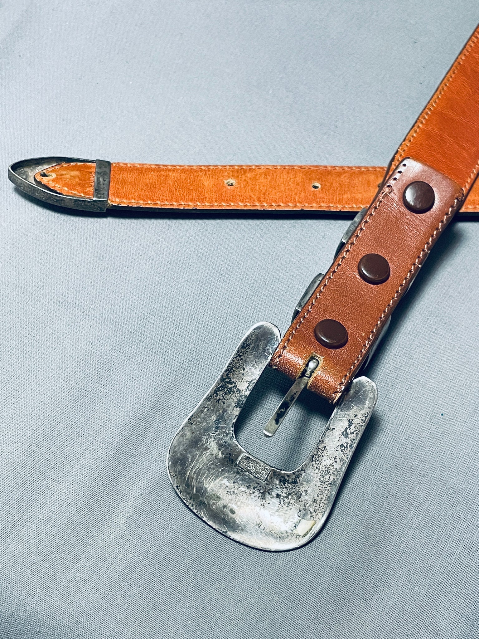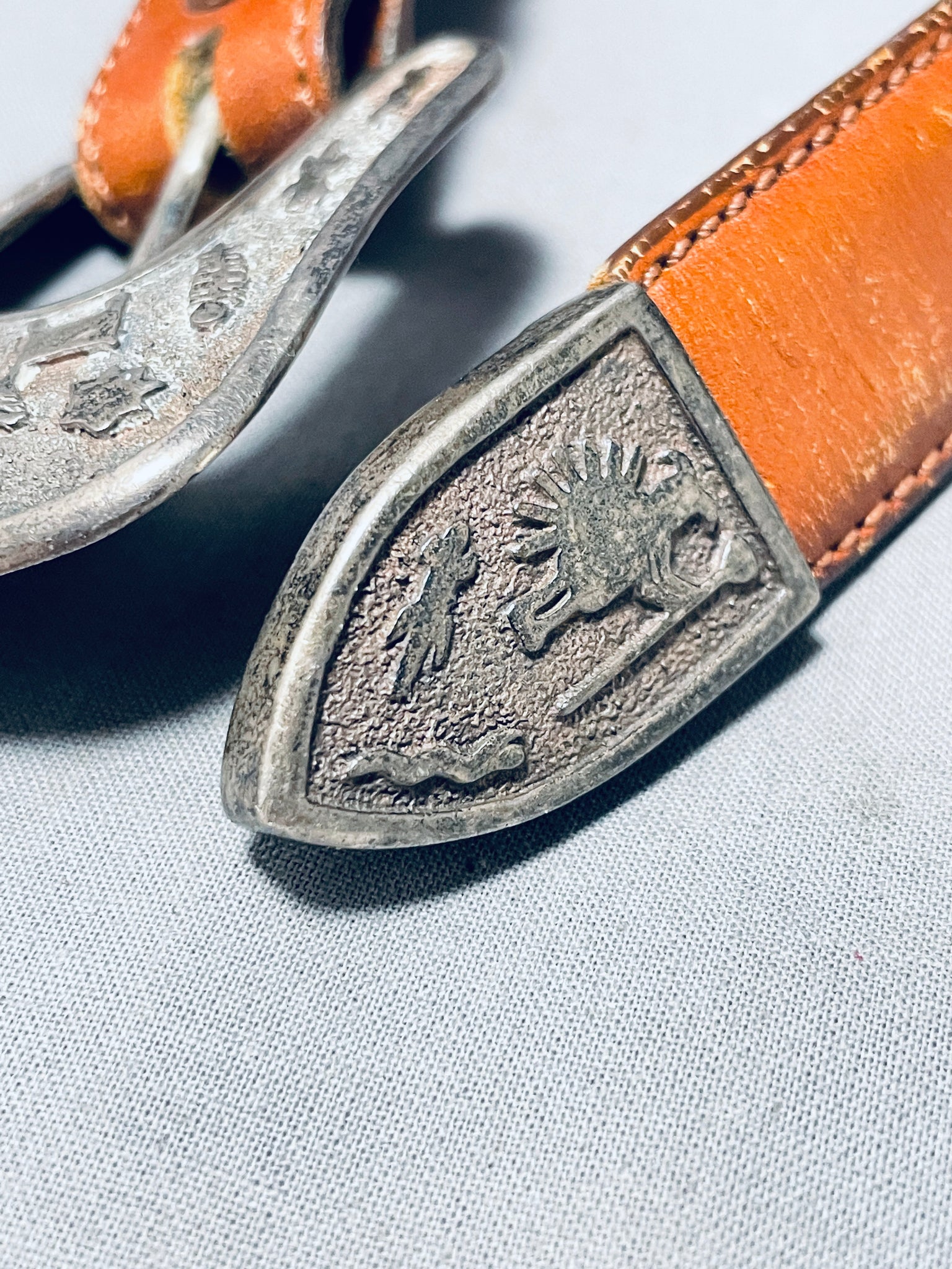 Ancient Petroglyph Vintage Native American Navajo Sterling Silver Ranger Buckle Set