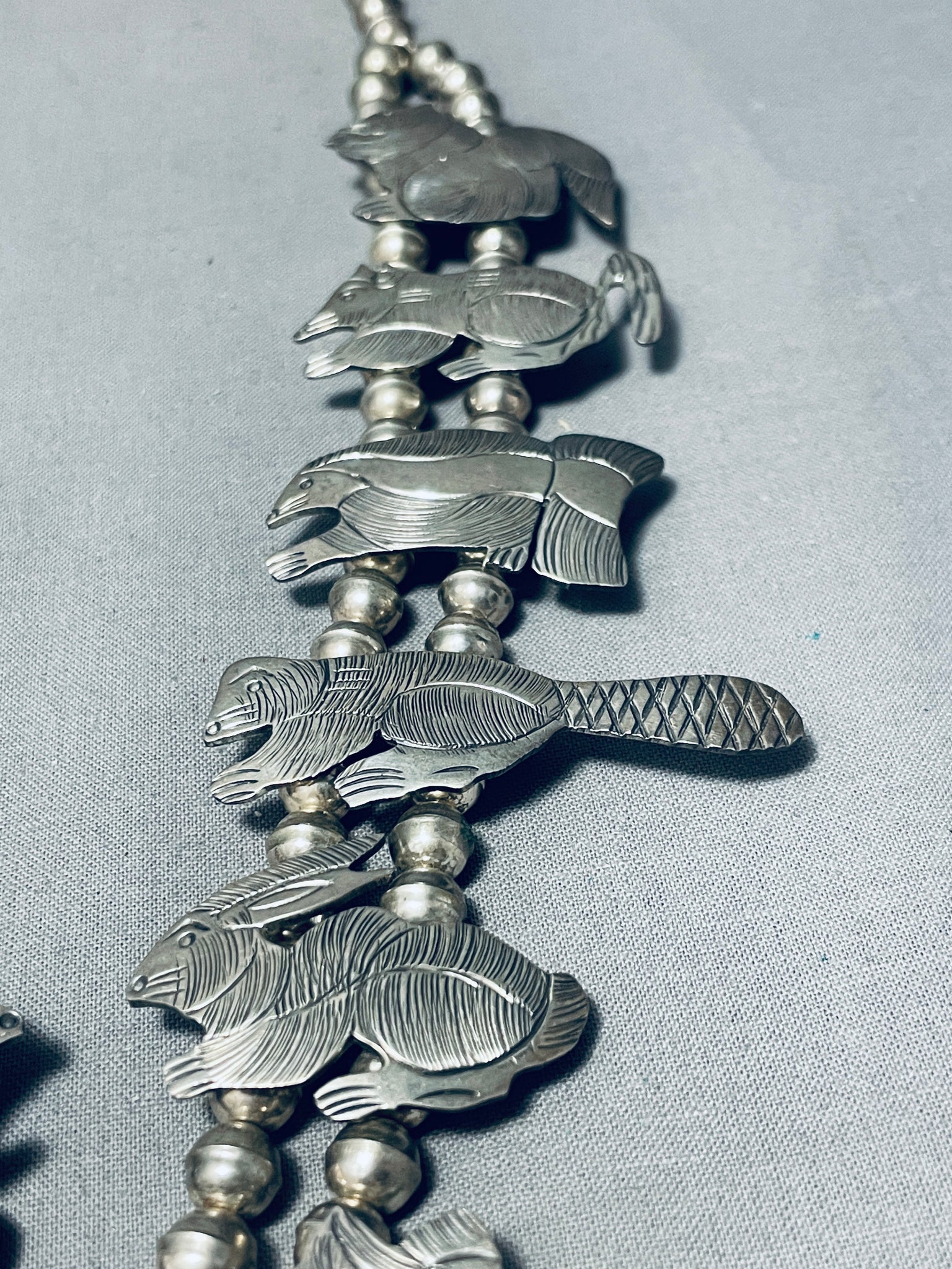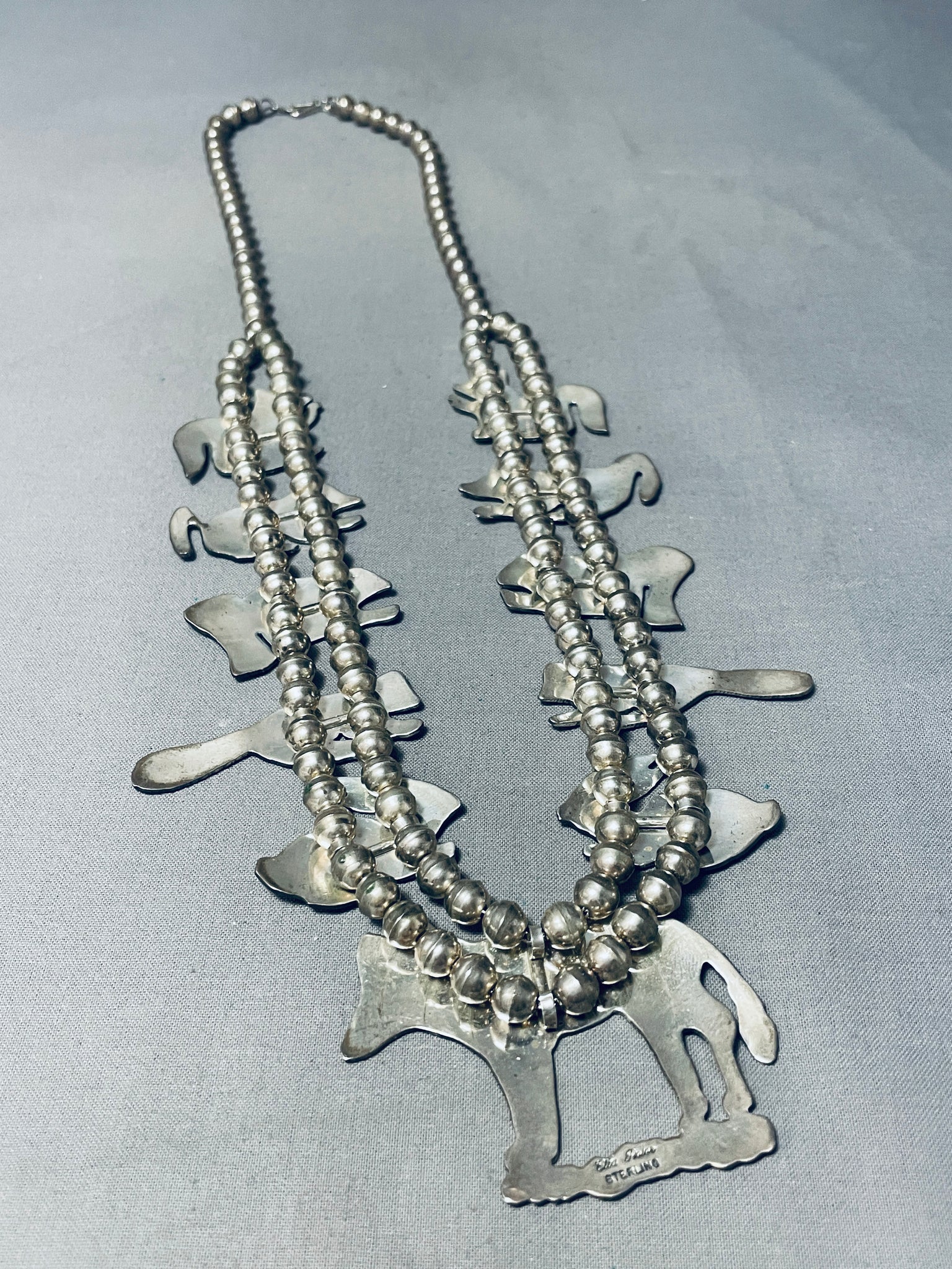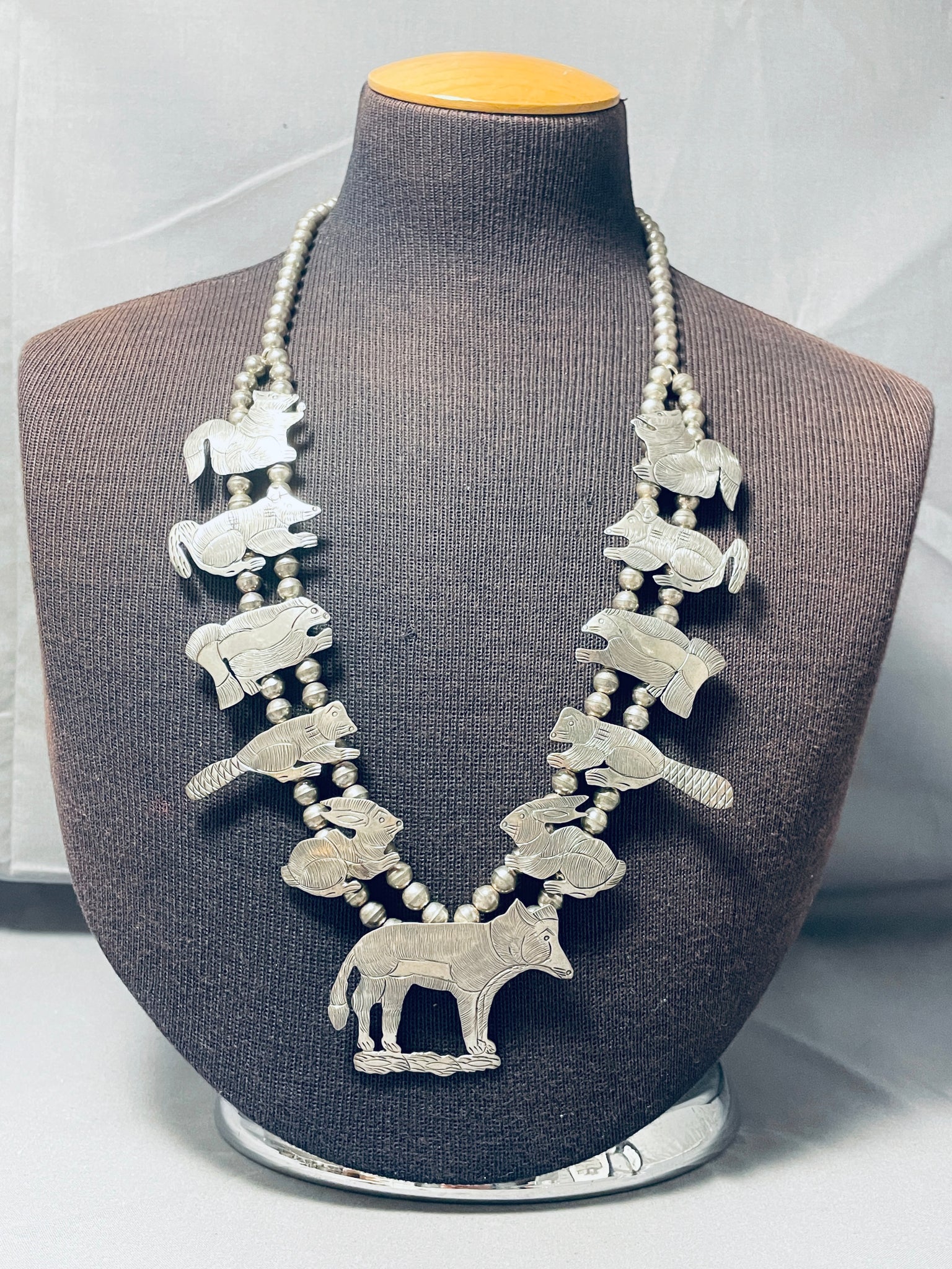 Animal Love Vintage Native American Navajo Sterling Silver Squash Blossom Necklace