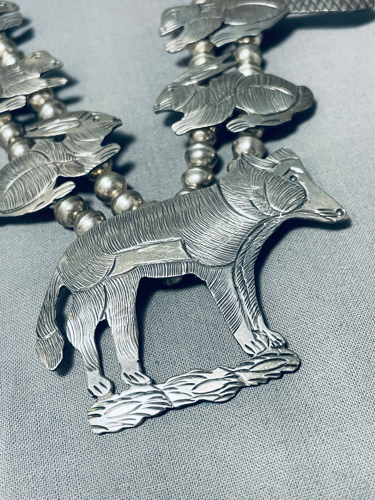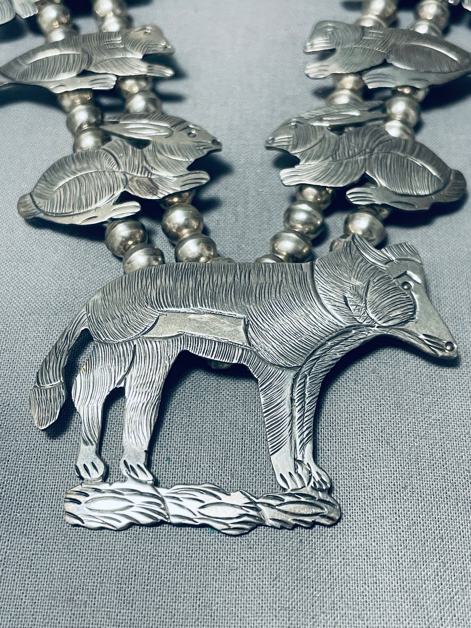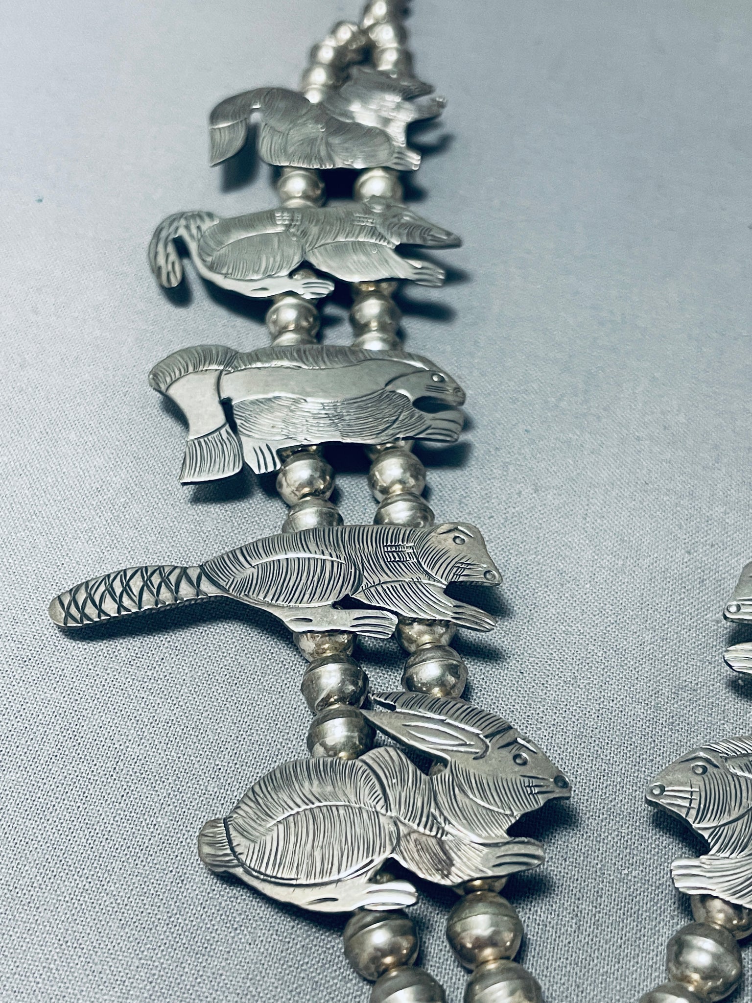 Animal Love Vintage Native American Navajo Sterling Silver Squash Blossom Necklace