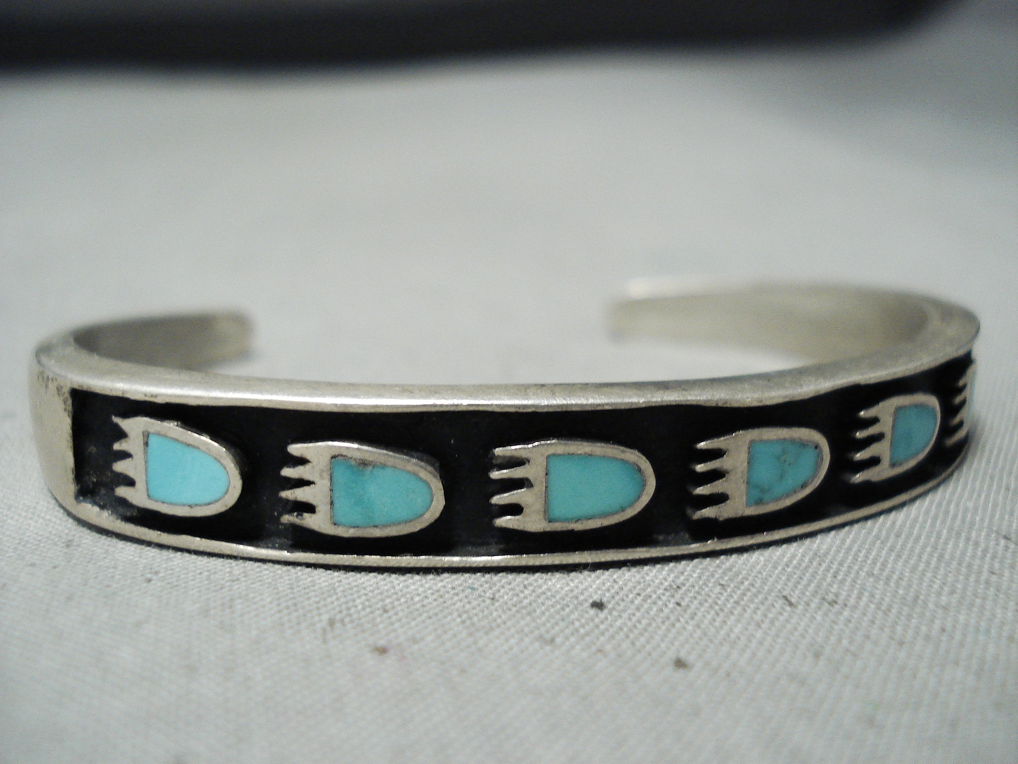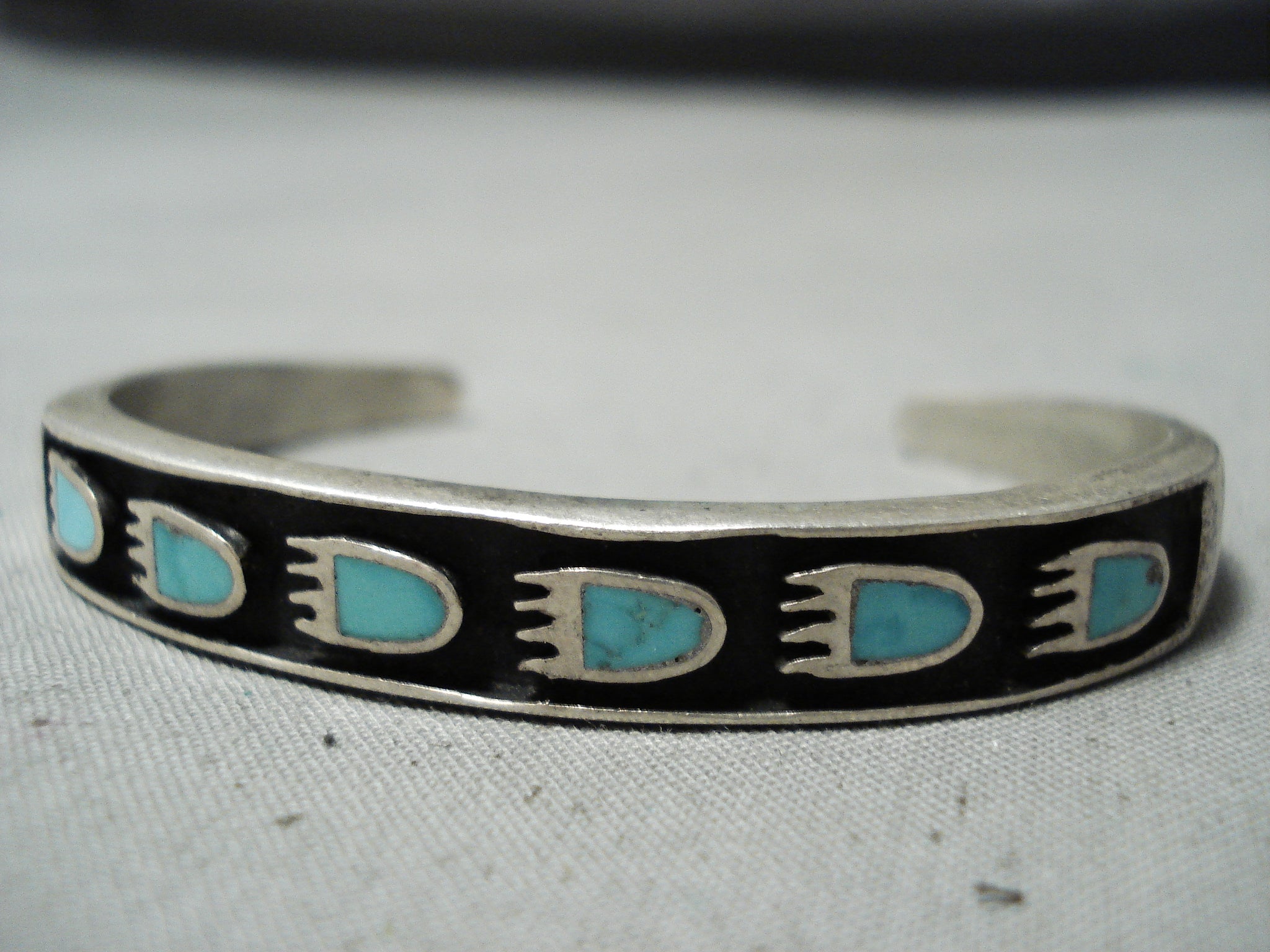 Animal Tracks Vintage Zuni Native American Navajo Turquoise Sterling Silver Bracelet