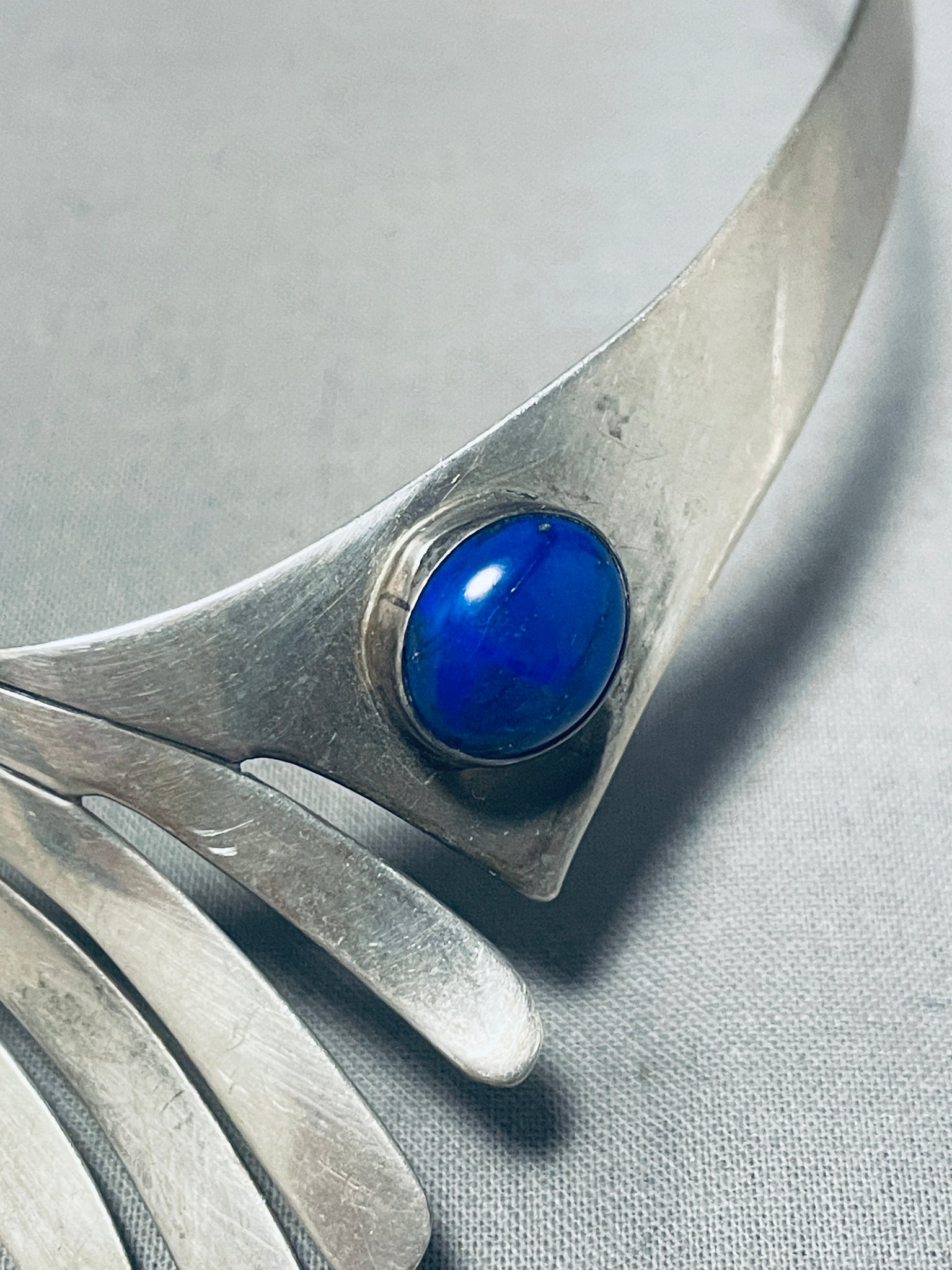 Anna Peterson Vintage Native American Navajo Lapis Sterling Silver Necklace