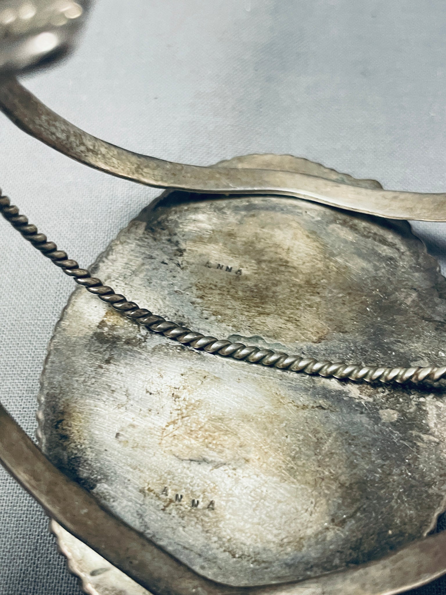 Anna Signed Vintage Native American Navajo Spiderweb Turquoise Sterling Silver Bracelet