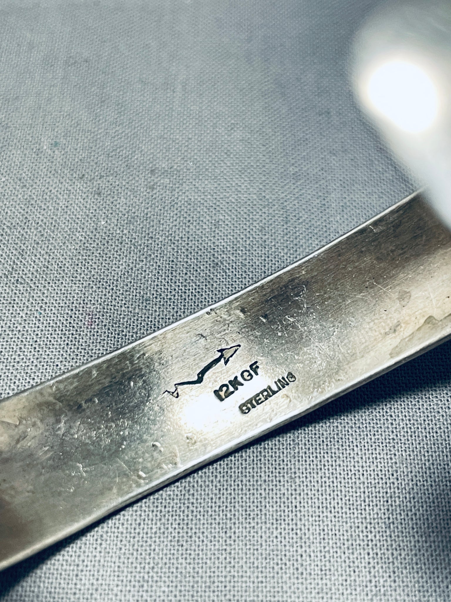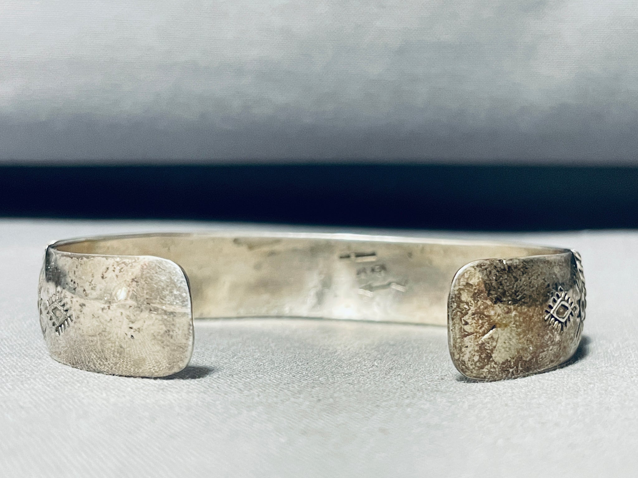 Art In The Details!! Vintage Native American Navajo Turquoise Inlay Sterling Silver Bracelet