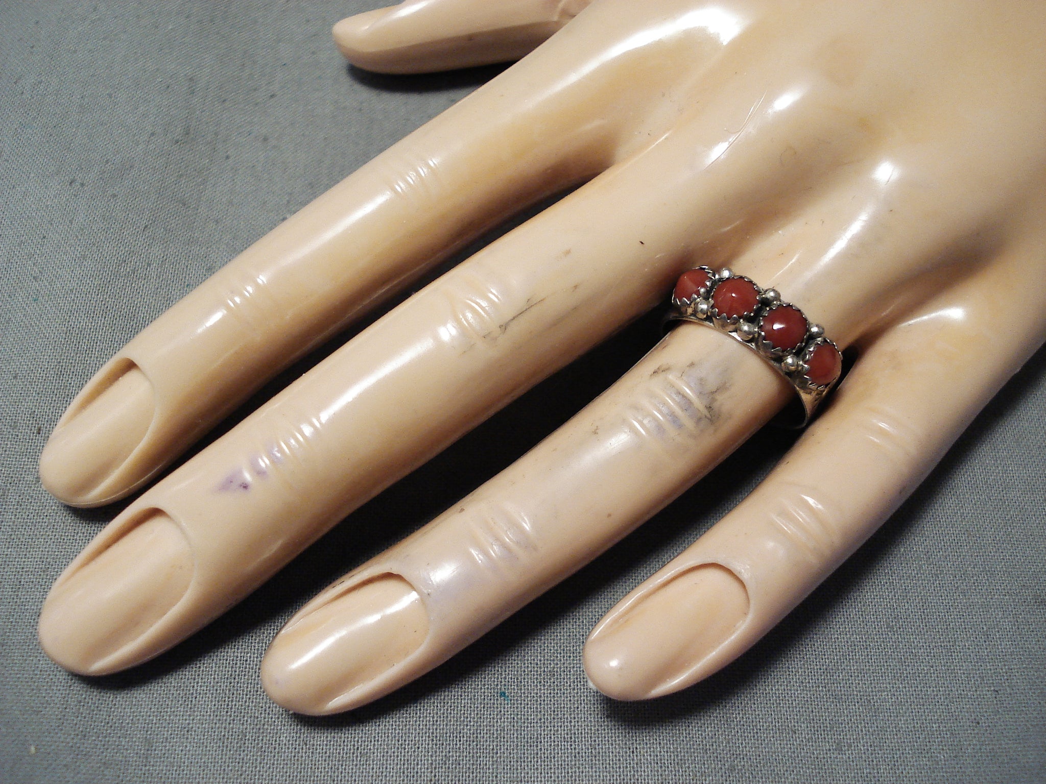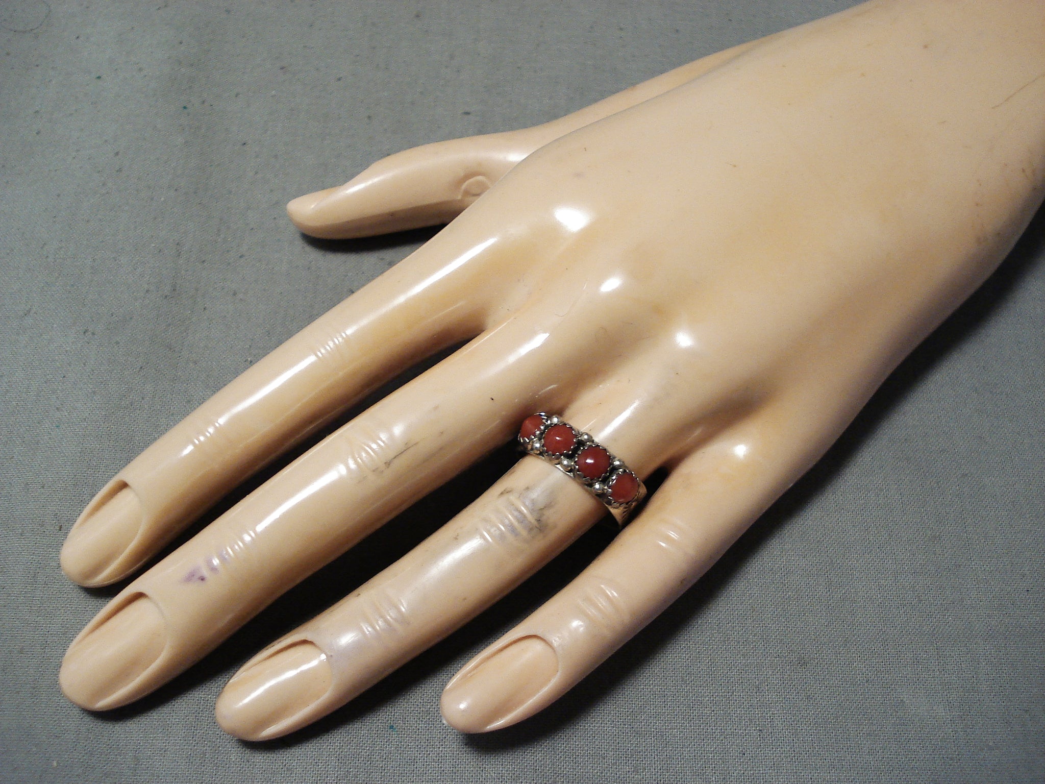 Ashley Signed Navajo Coral Sterling Silver Band Ring Native American